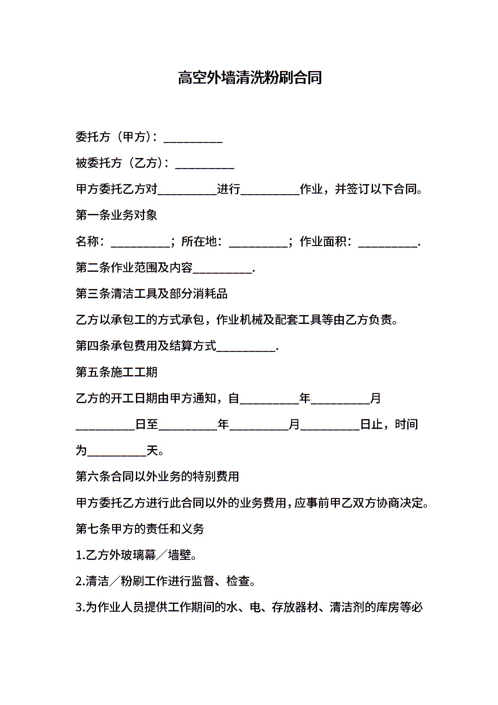 高空外墙清洗粉刷合同