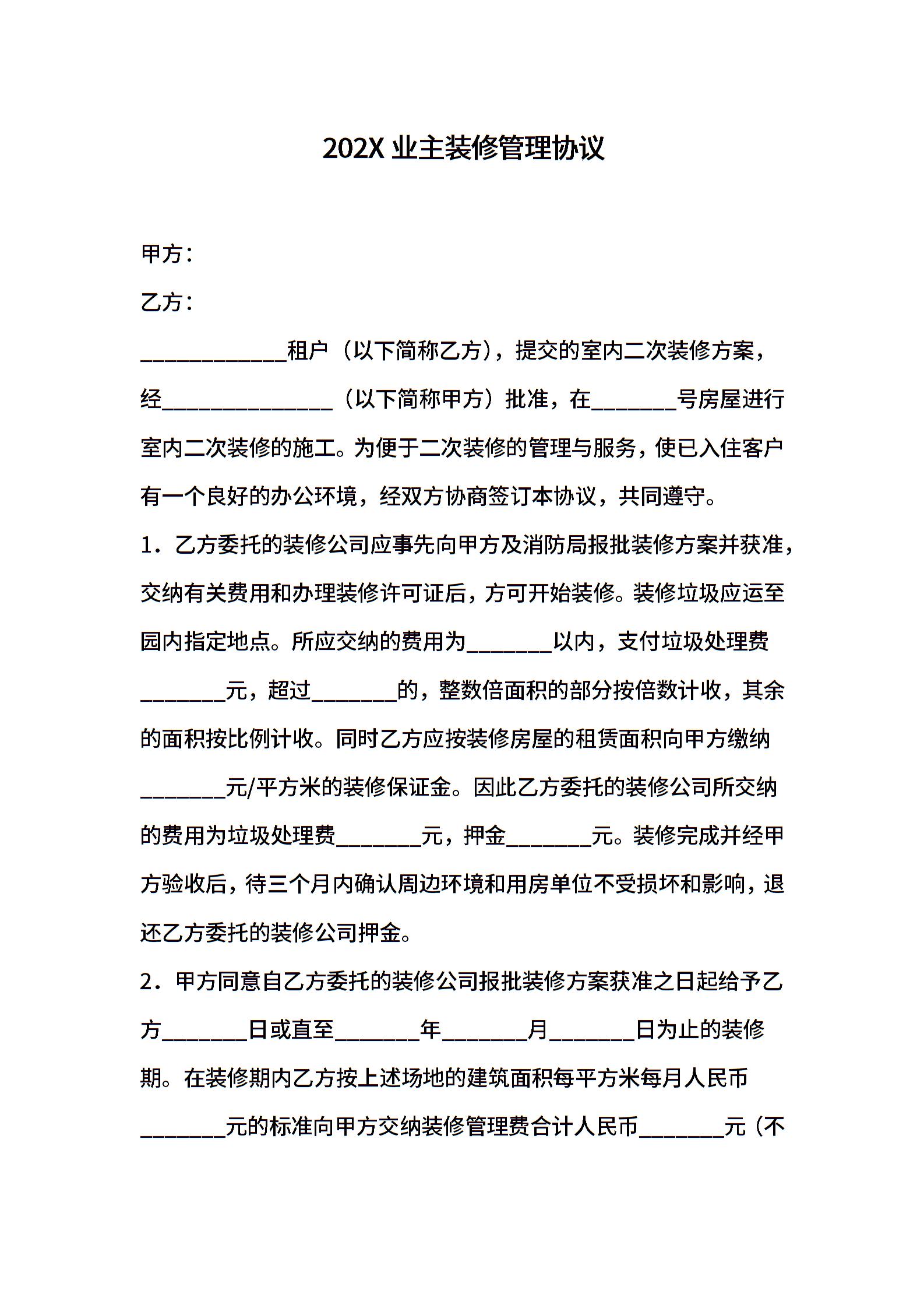 202X业主装修管理协议