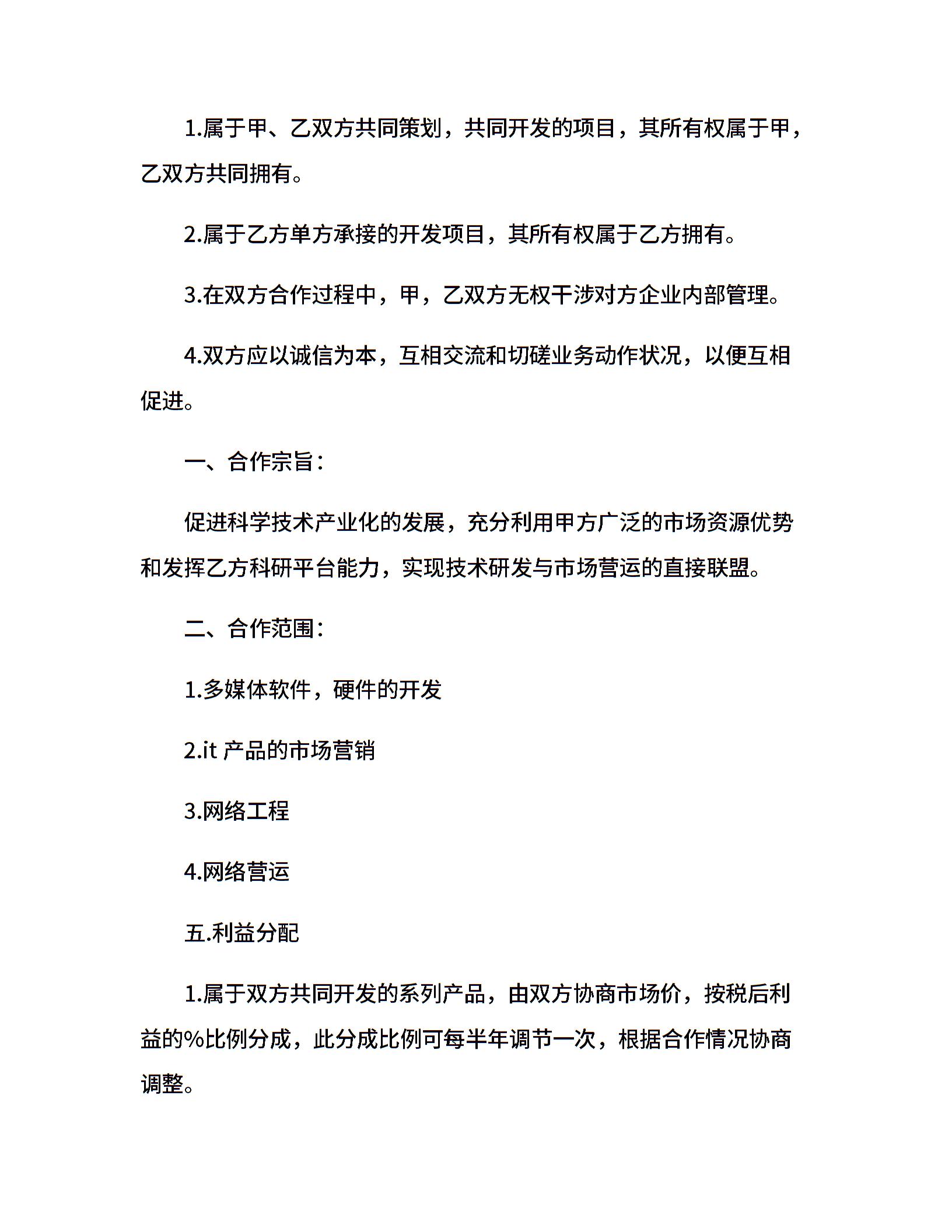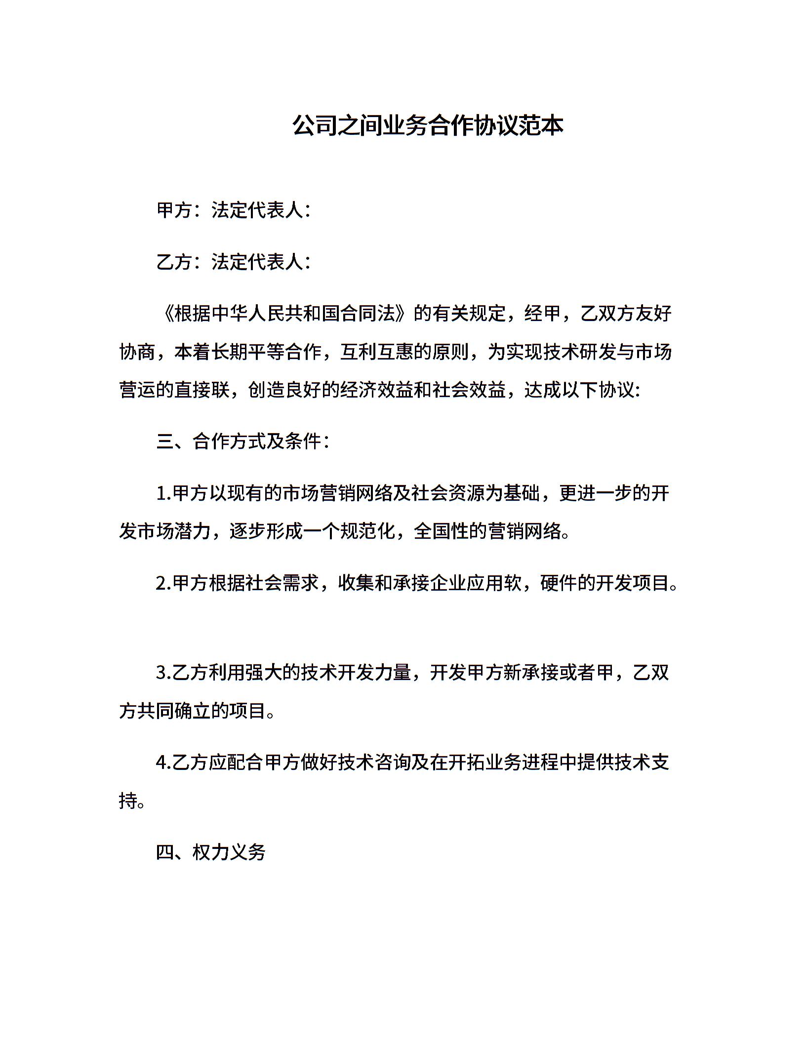 公司之间业务合作协议范本