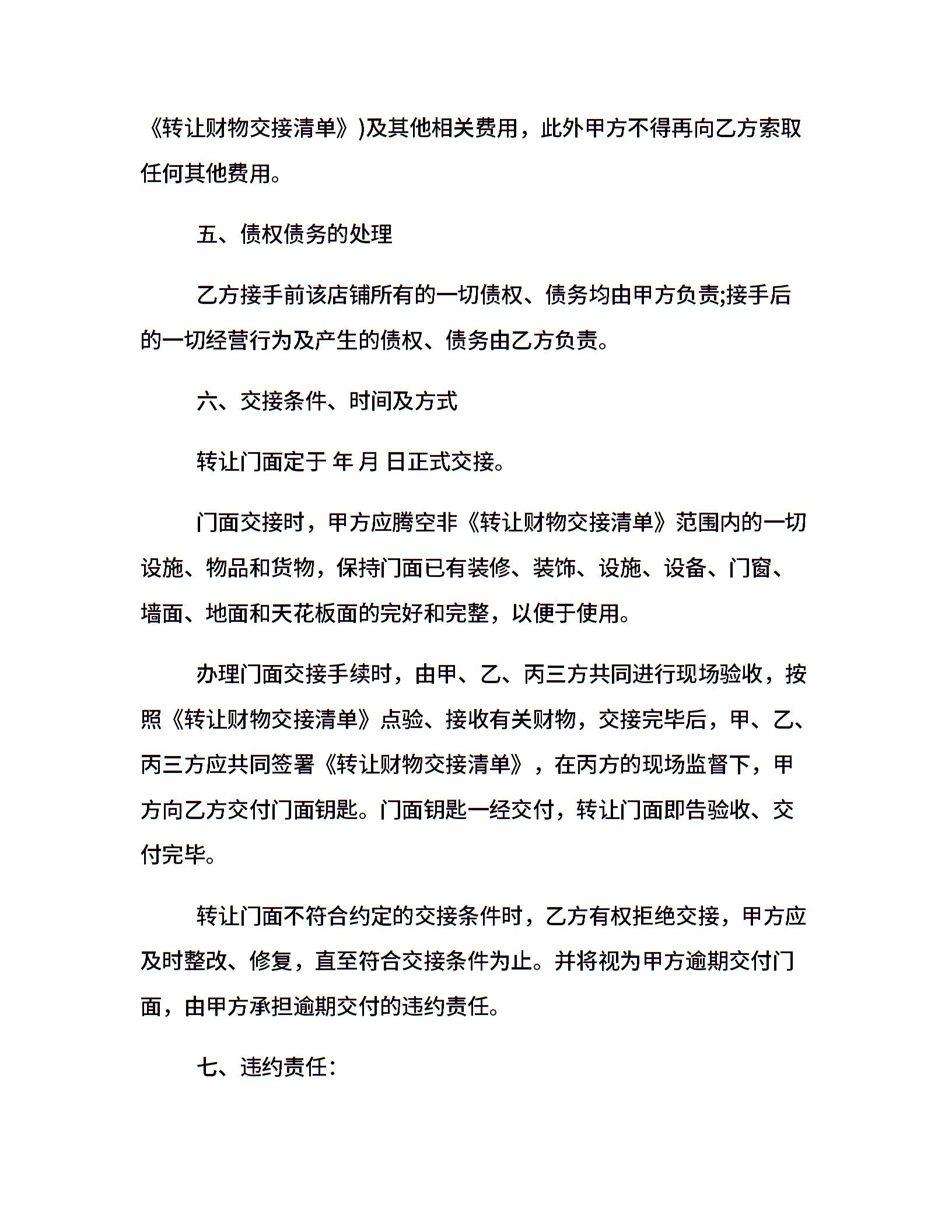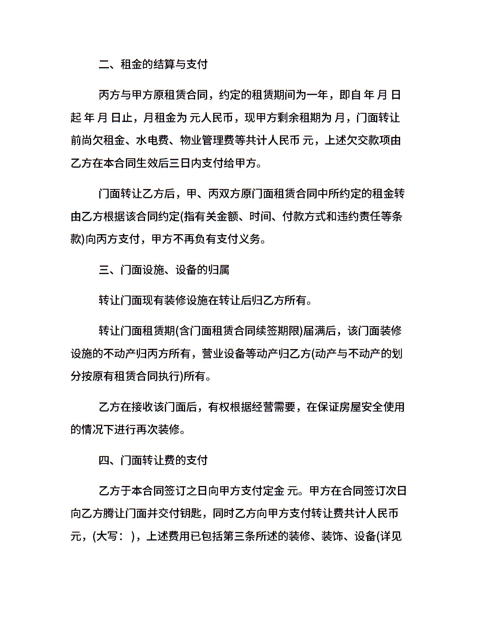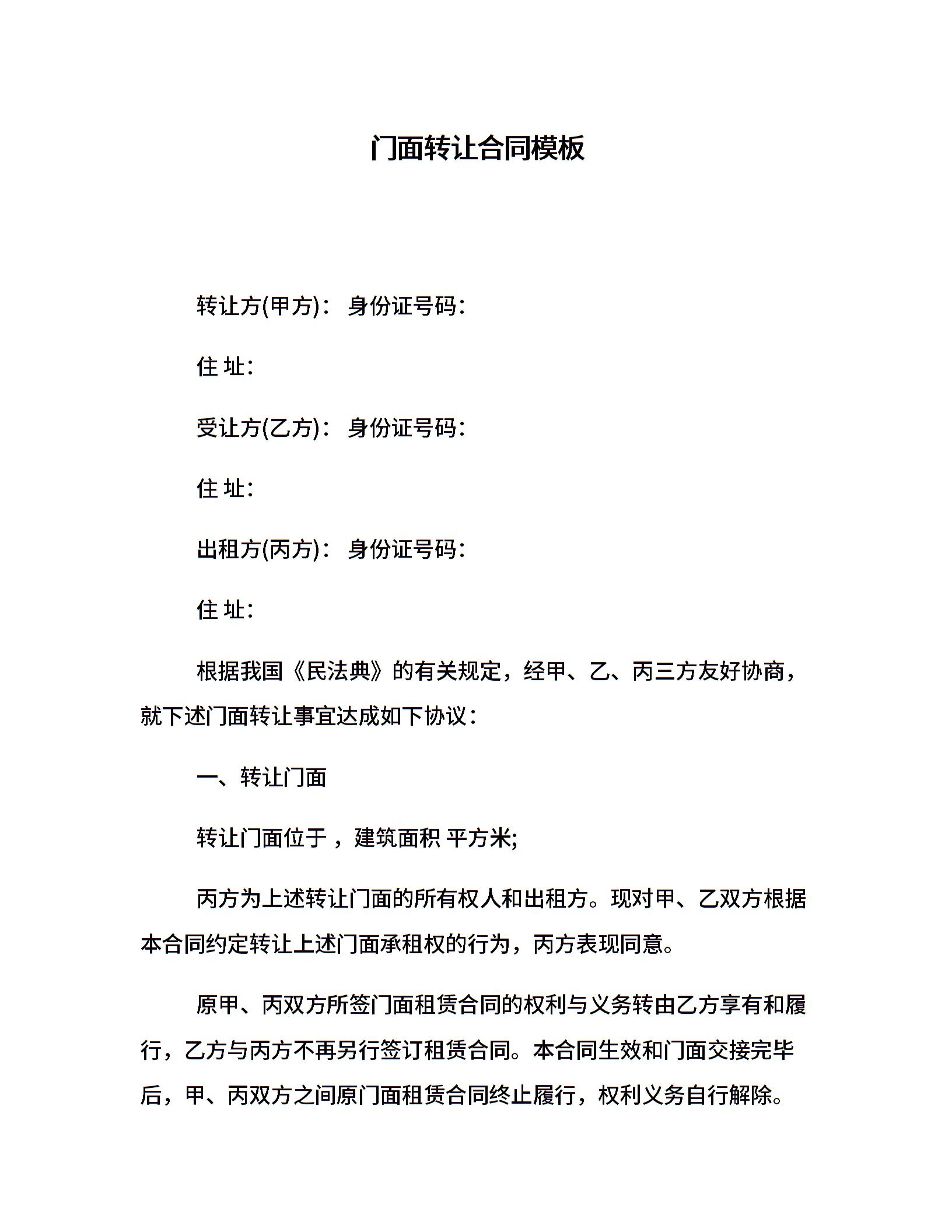 门面转让合同模板
