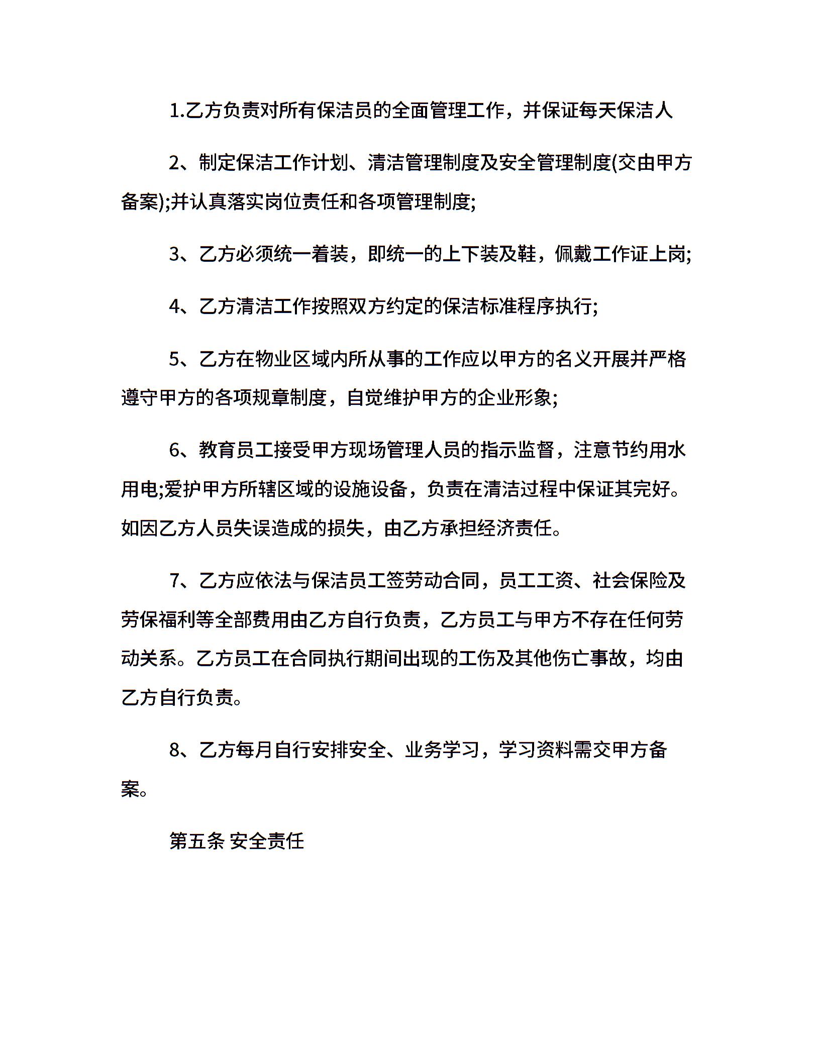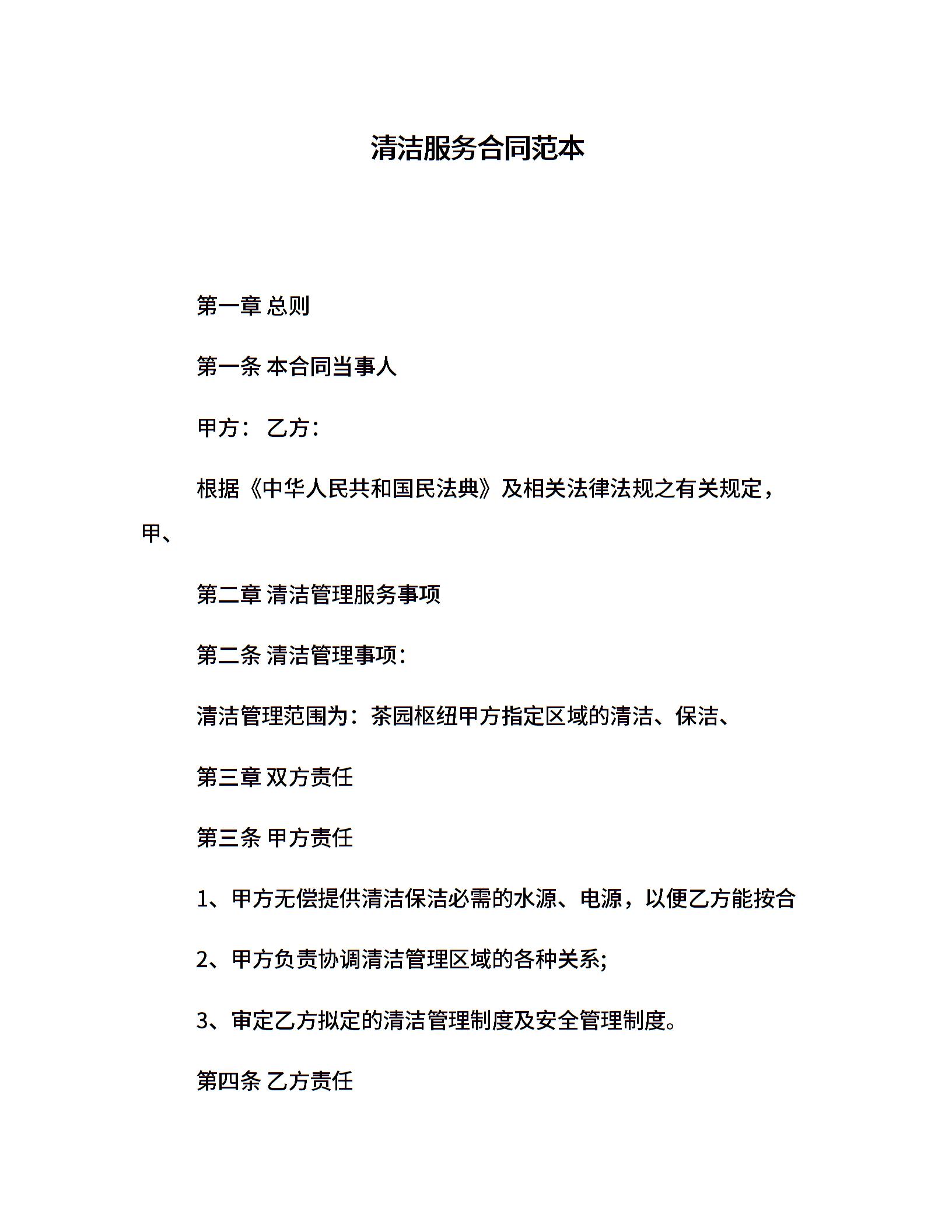 清洁服务合同范本