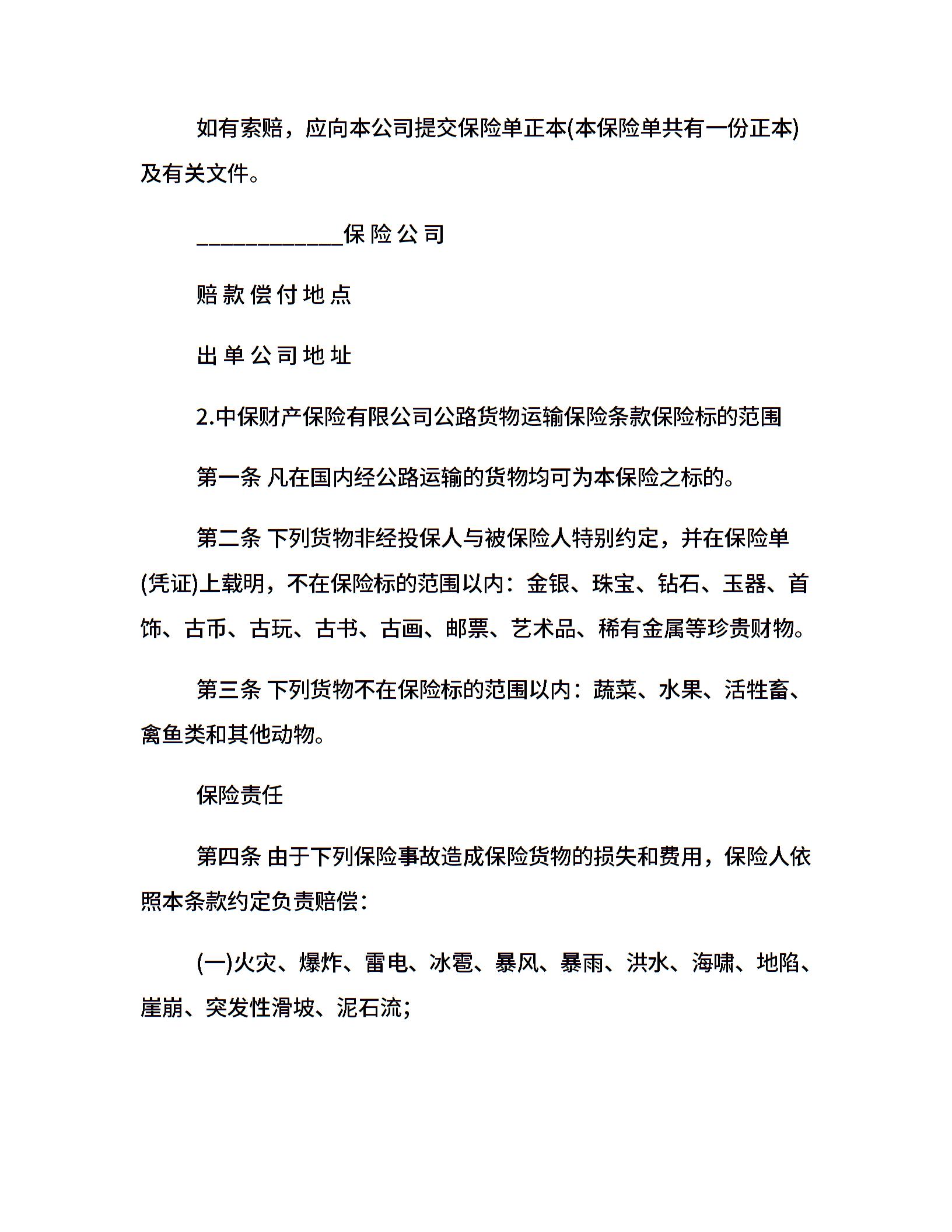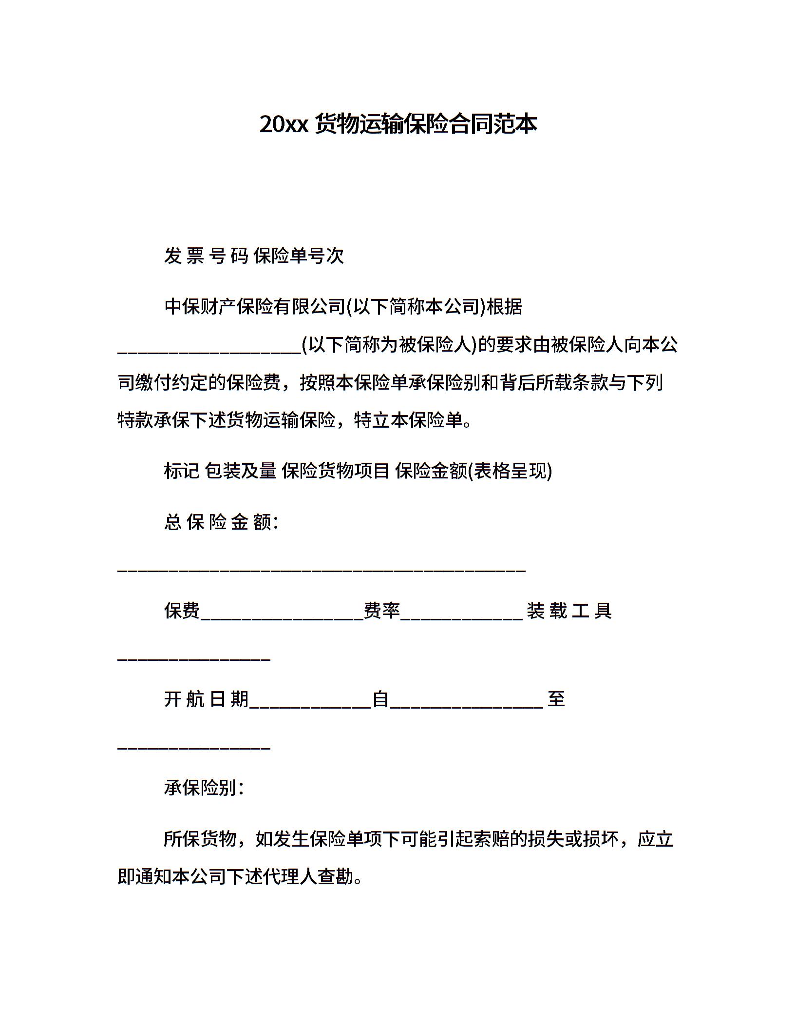 20xx货物运输保险合同范本