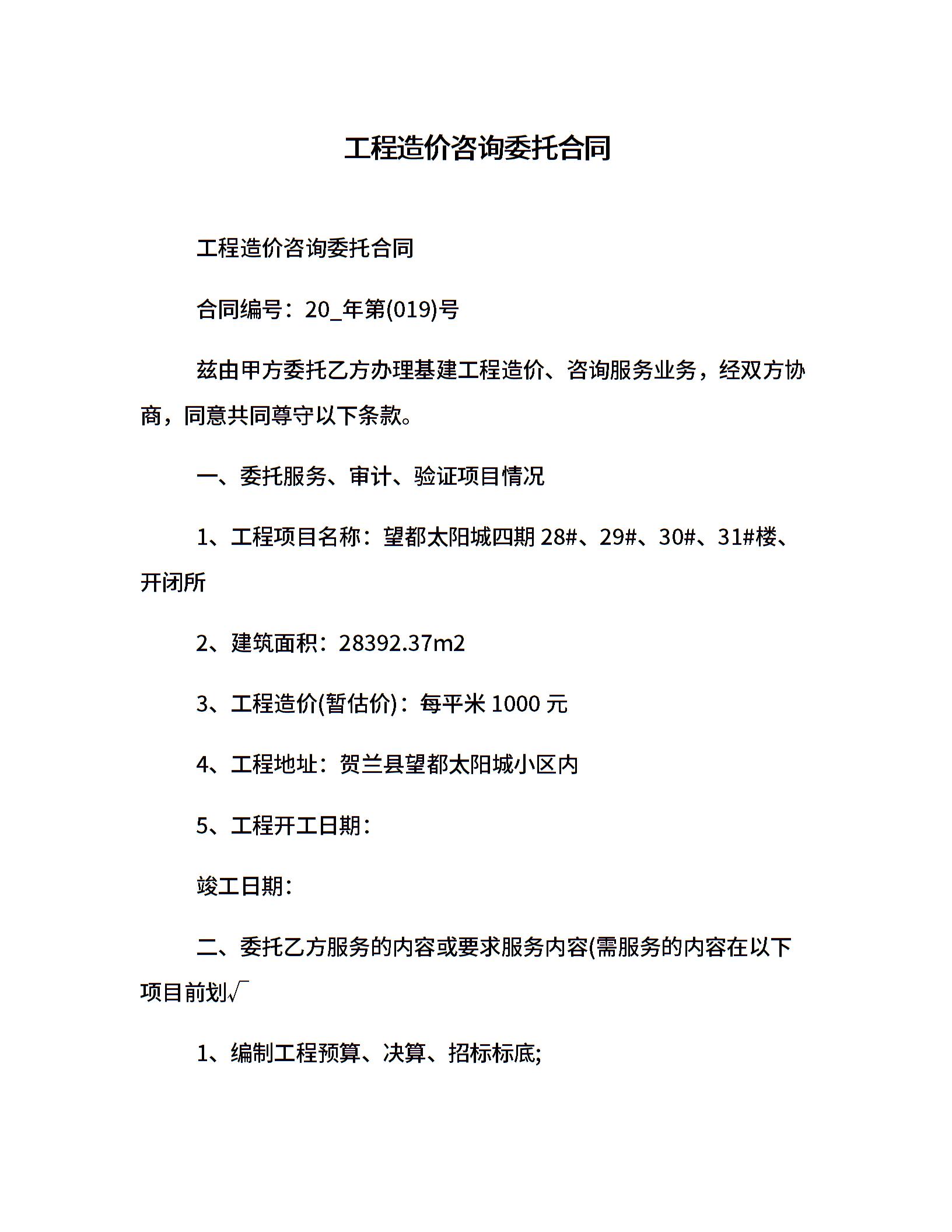 工程造价咨询委托合同