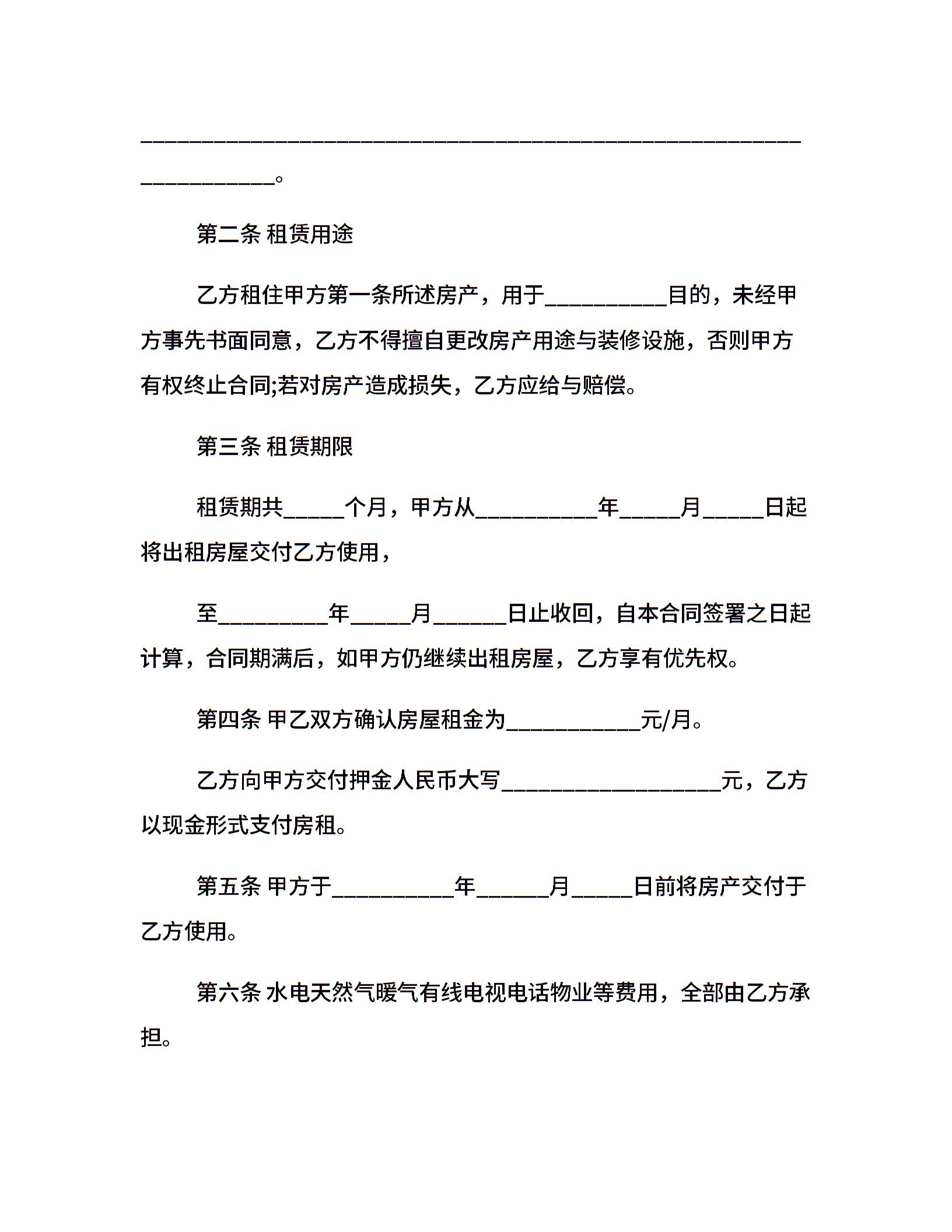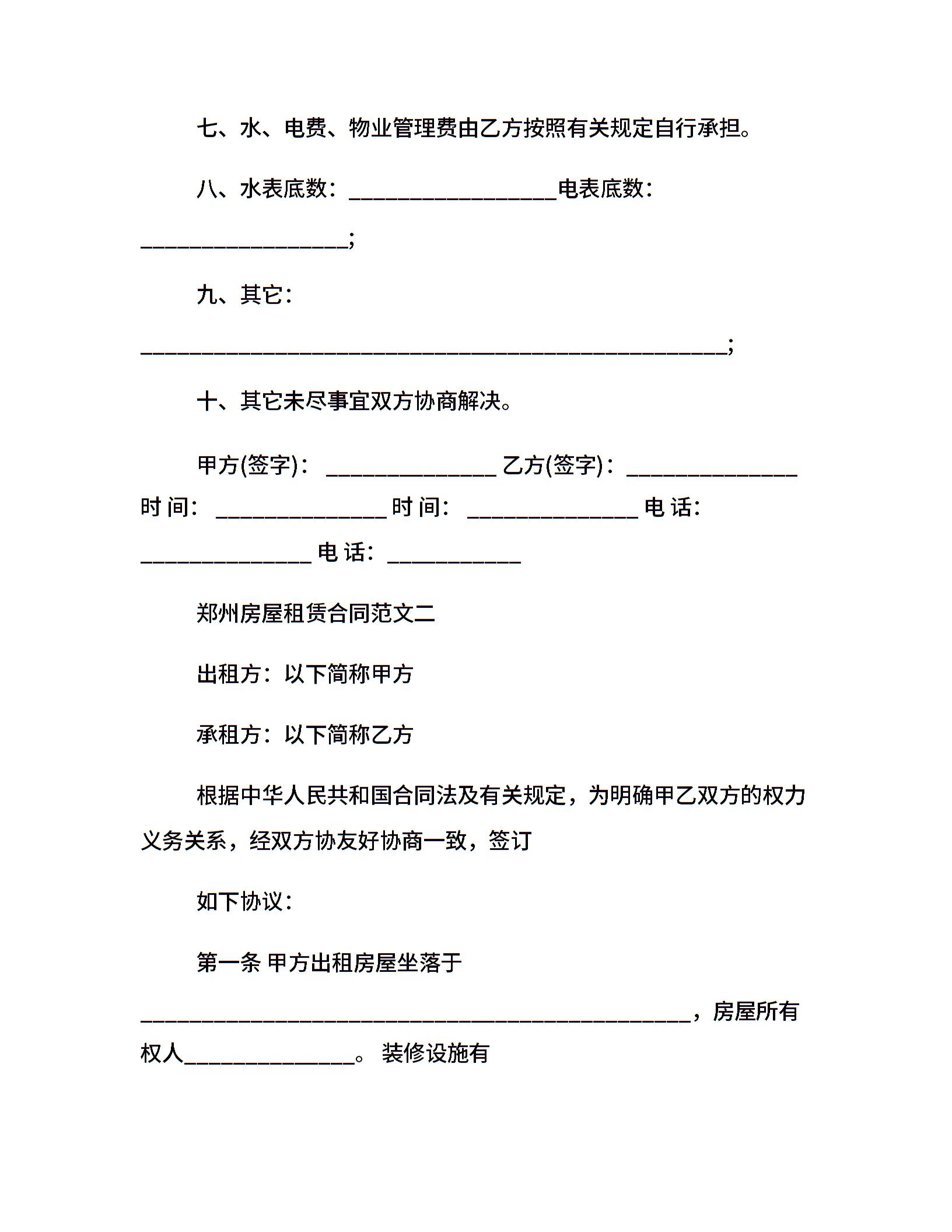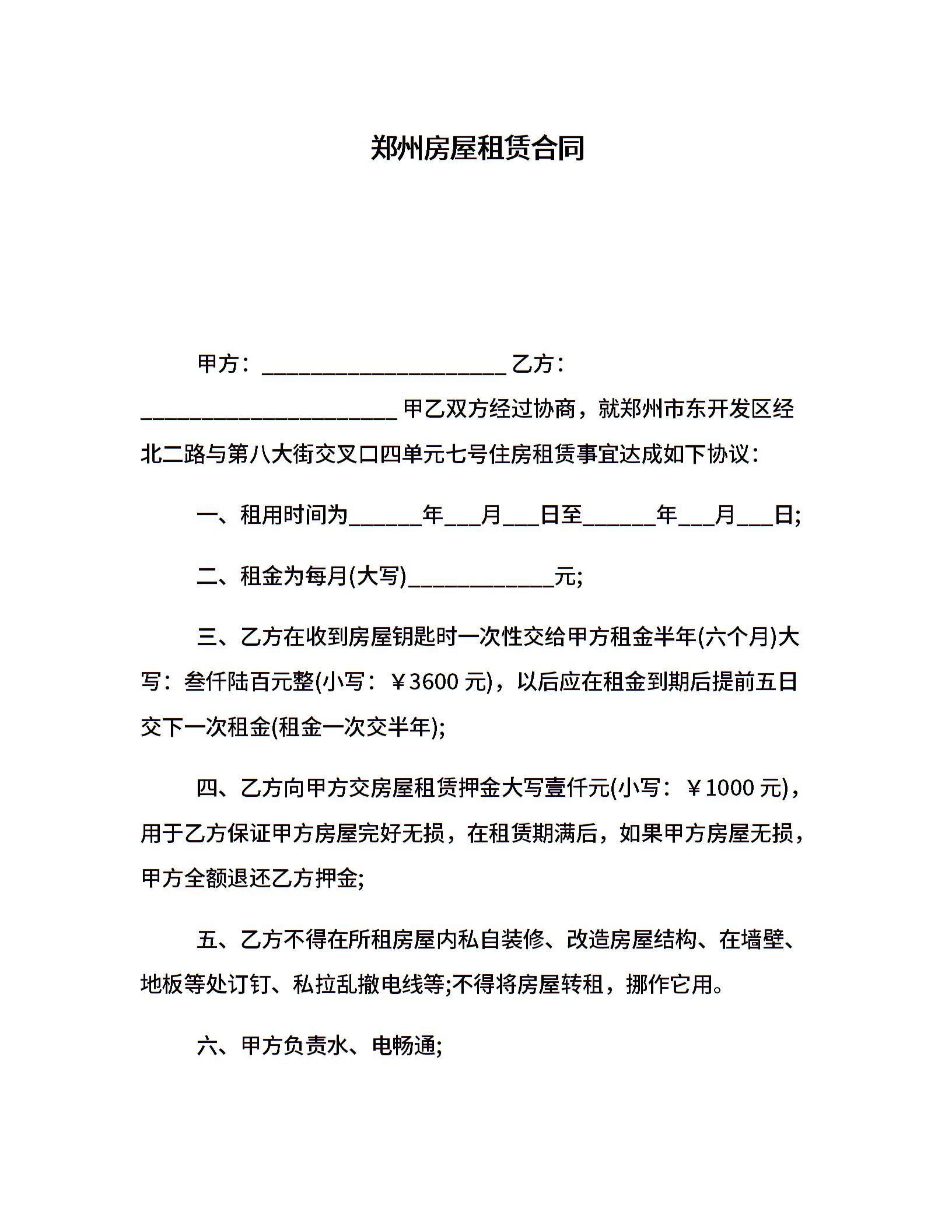 郑州房屋租赁合同