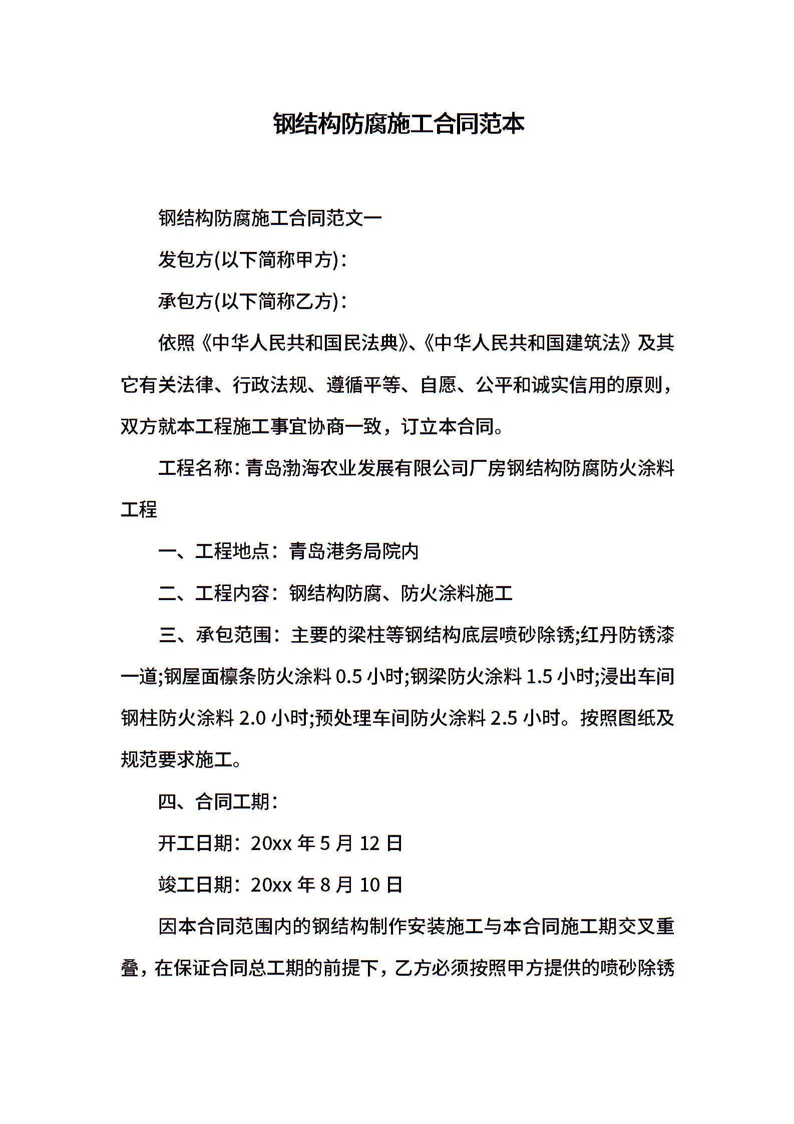 钢结构防腐施工合同范本