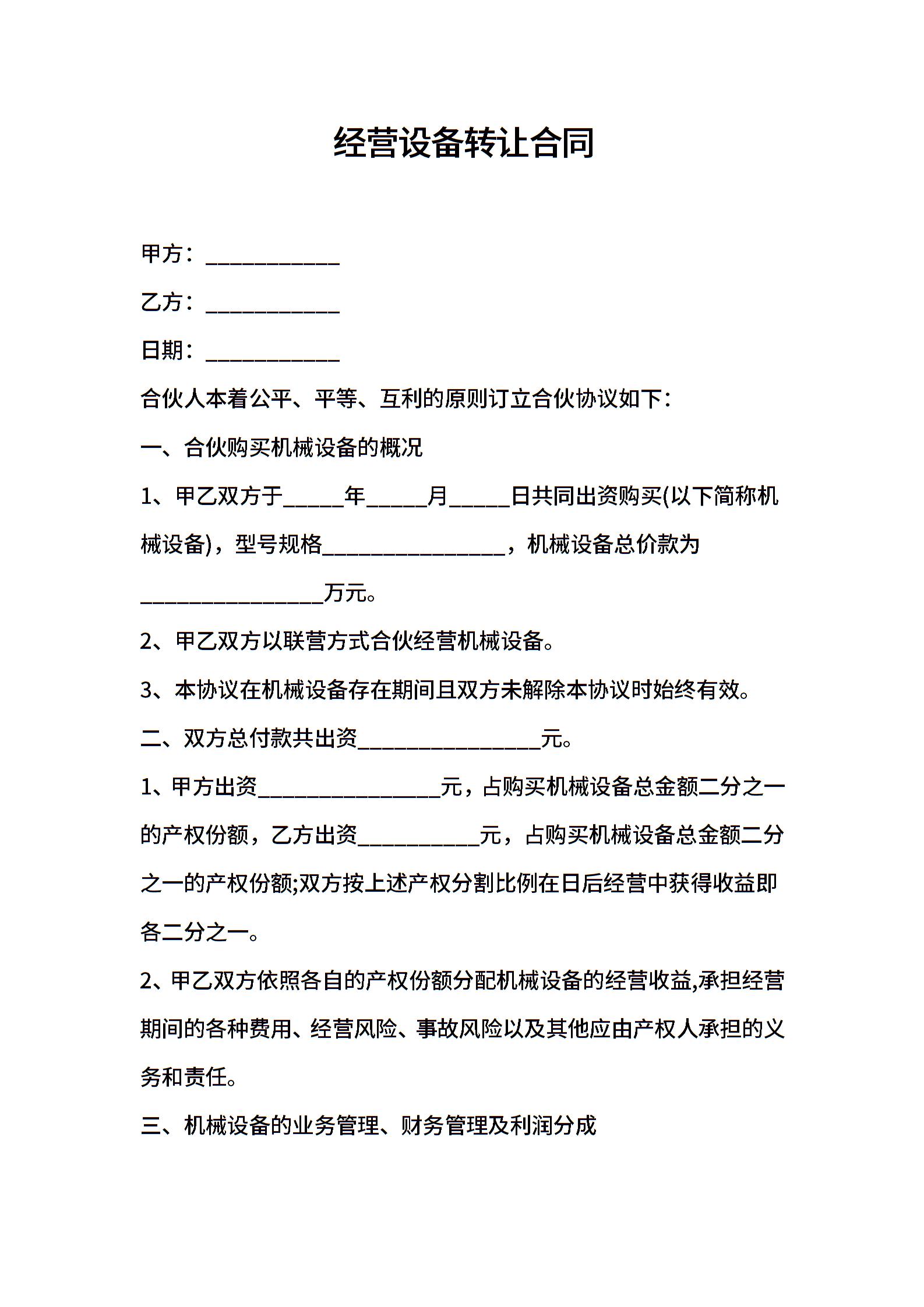 经营设备转让合同