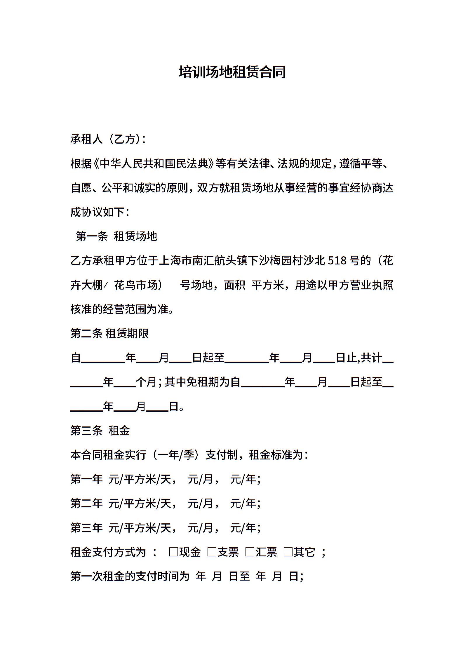 培训场地租赁合同