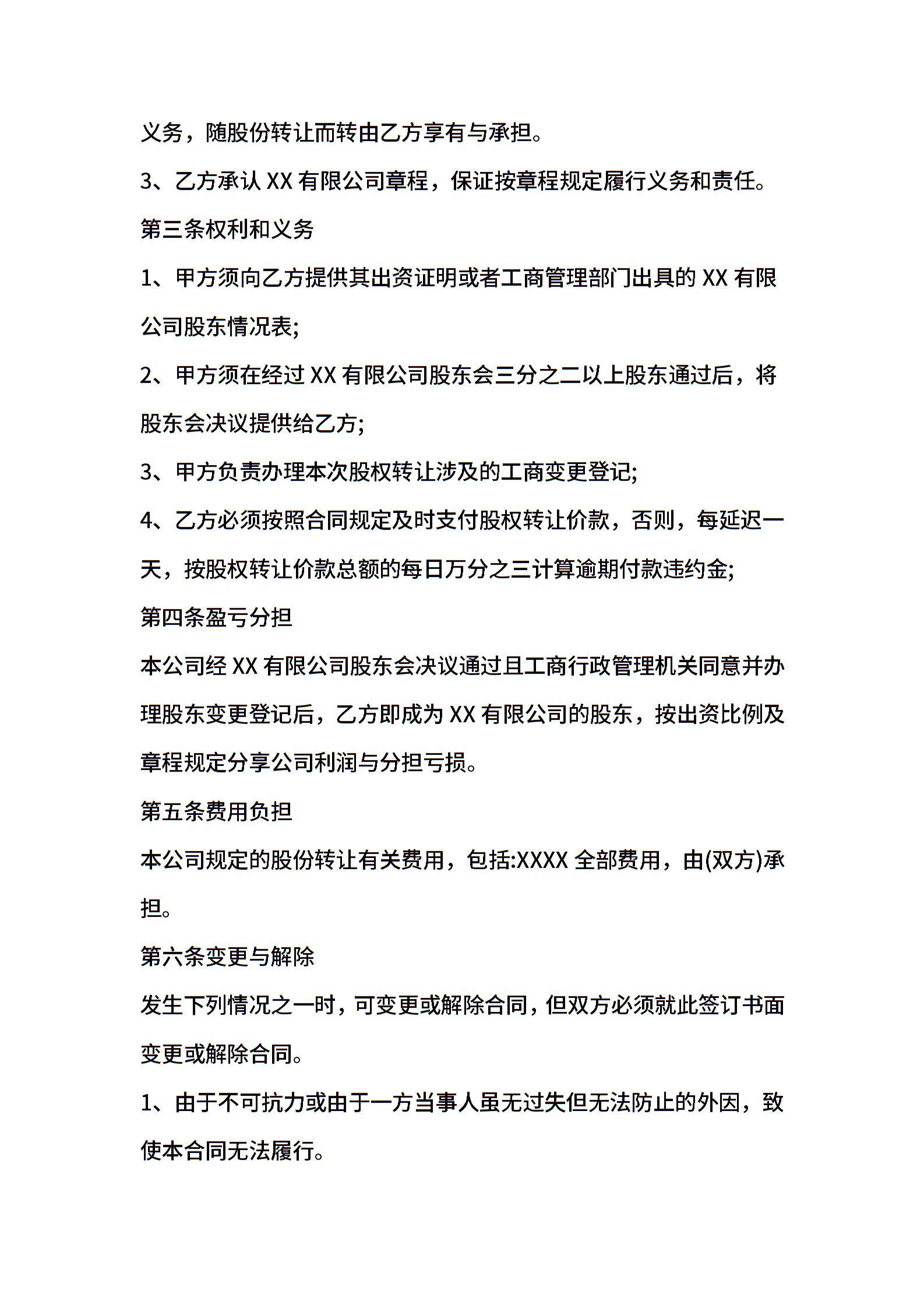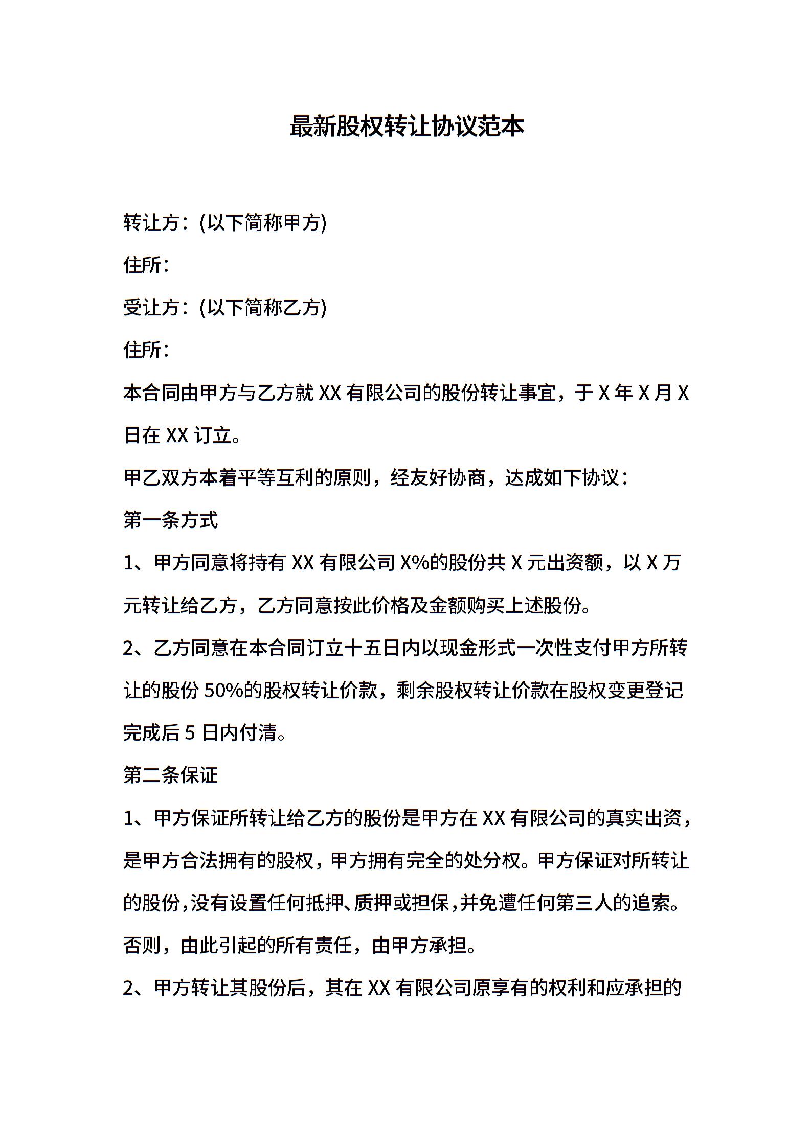 最新股权转让协议范本
