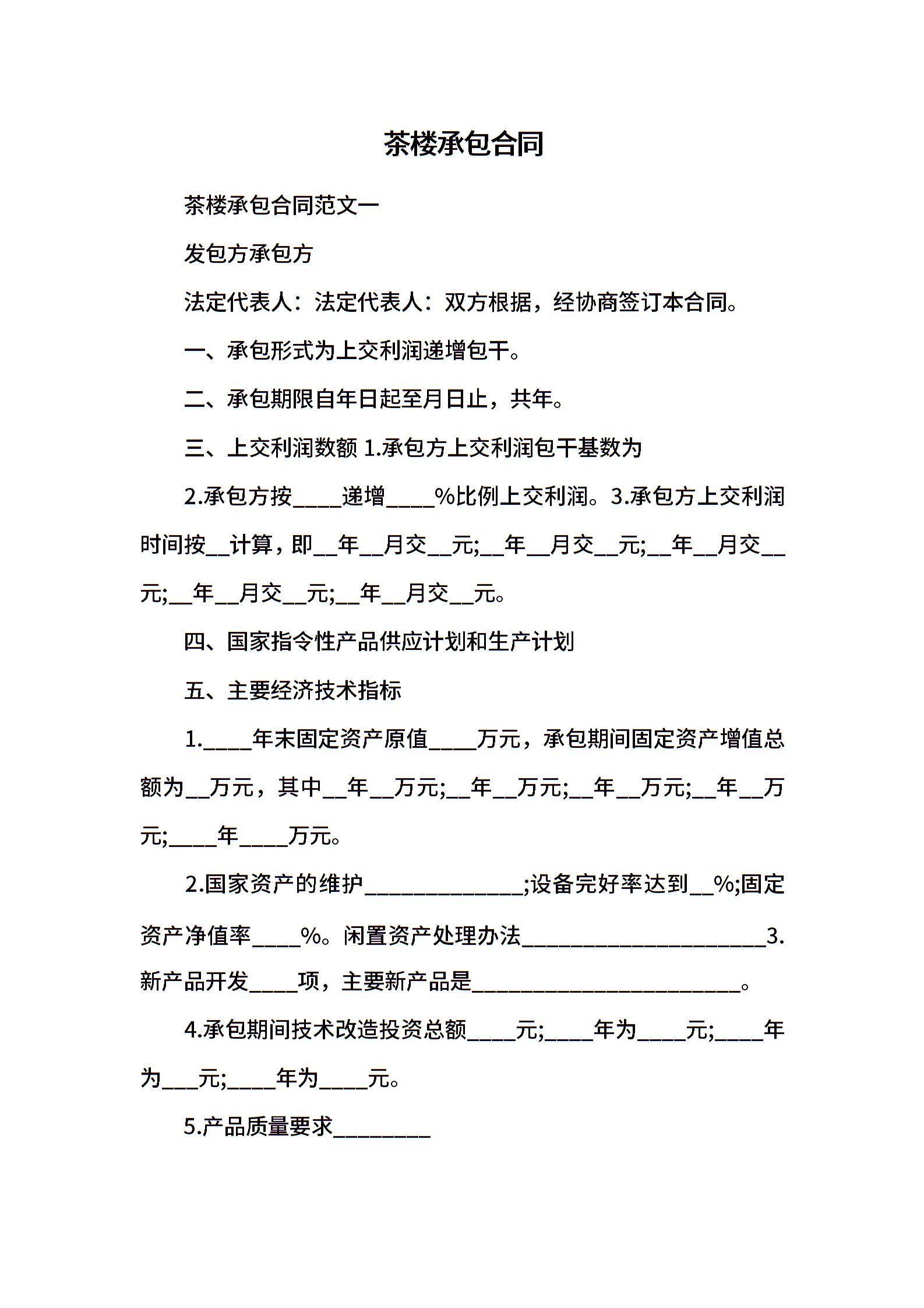 茶楼承包合同