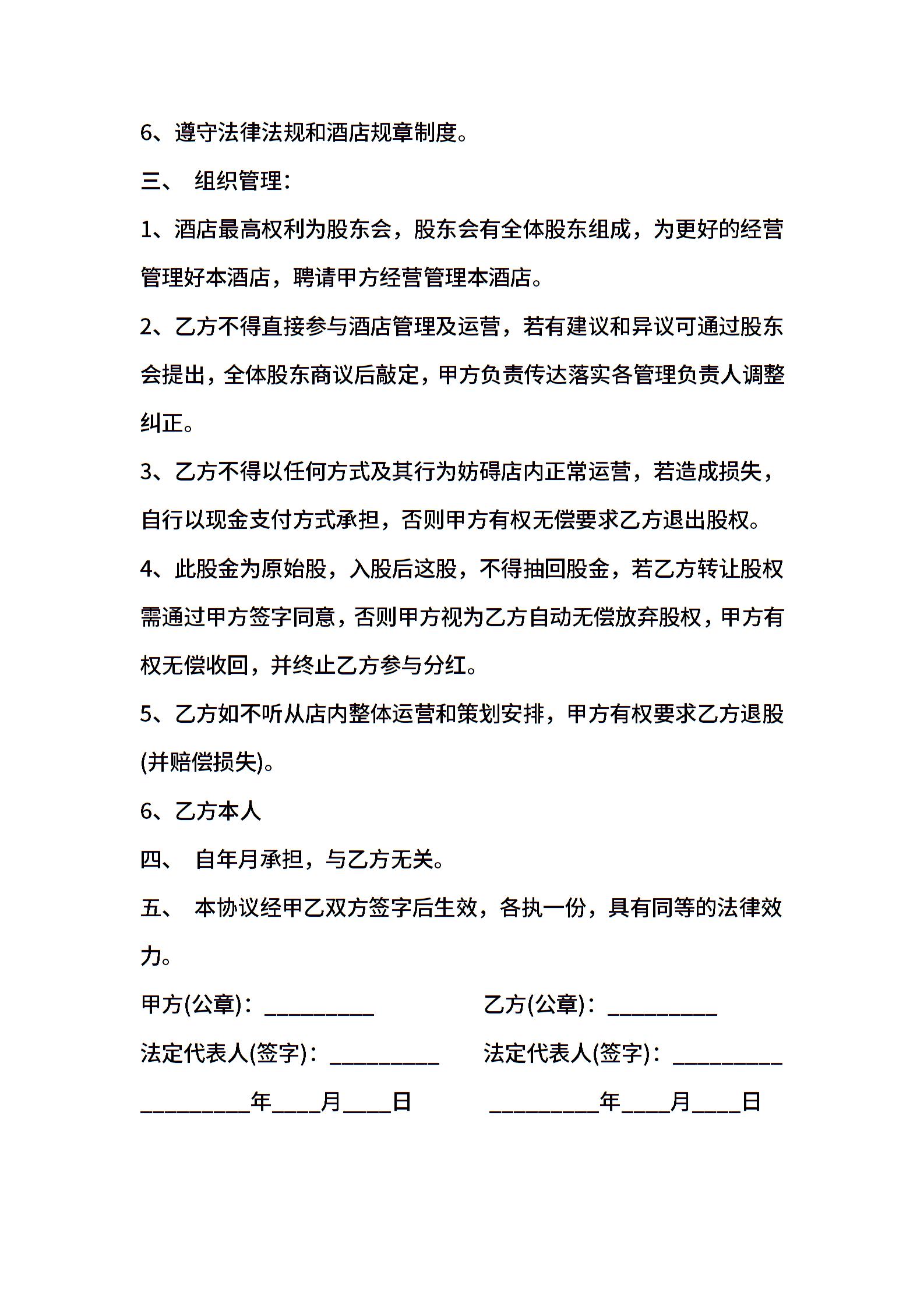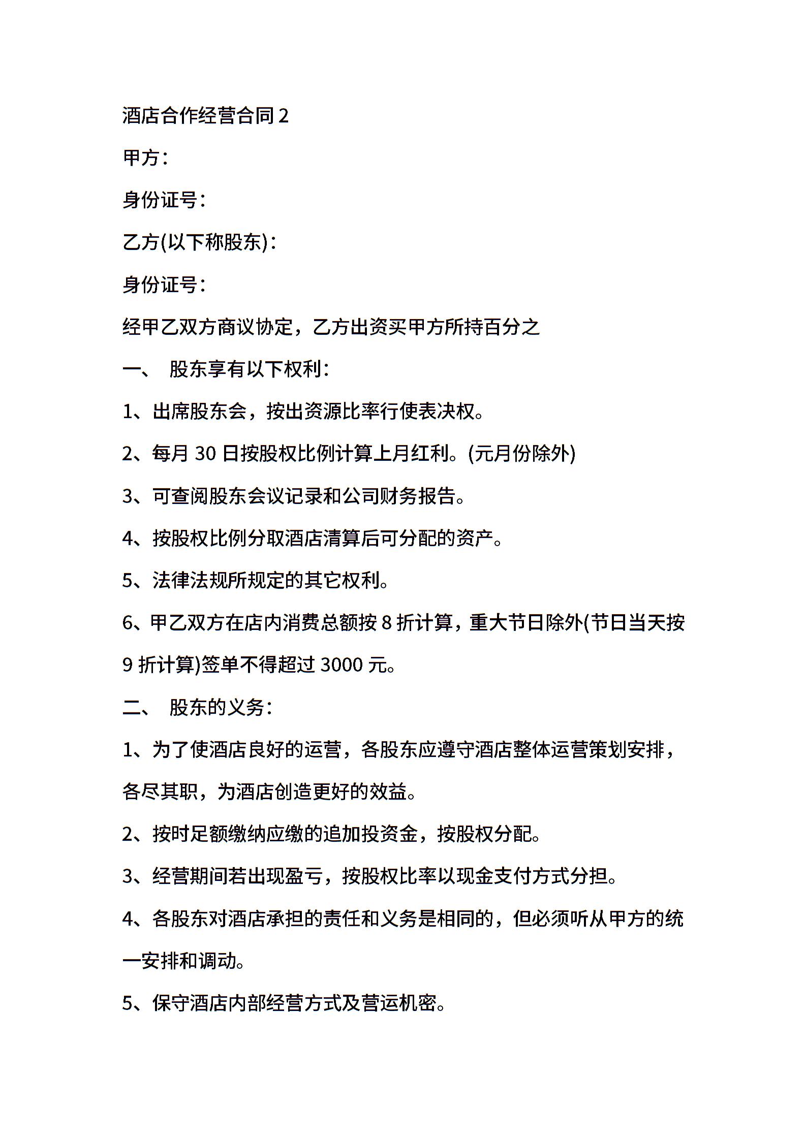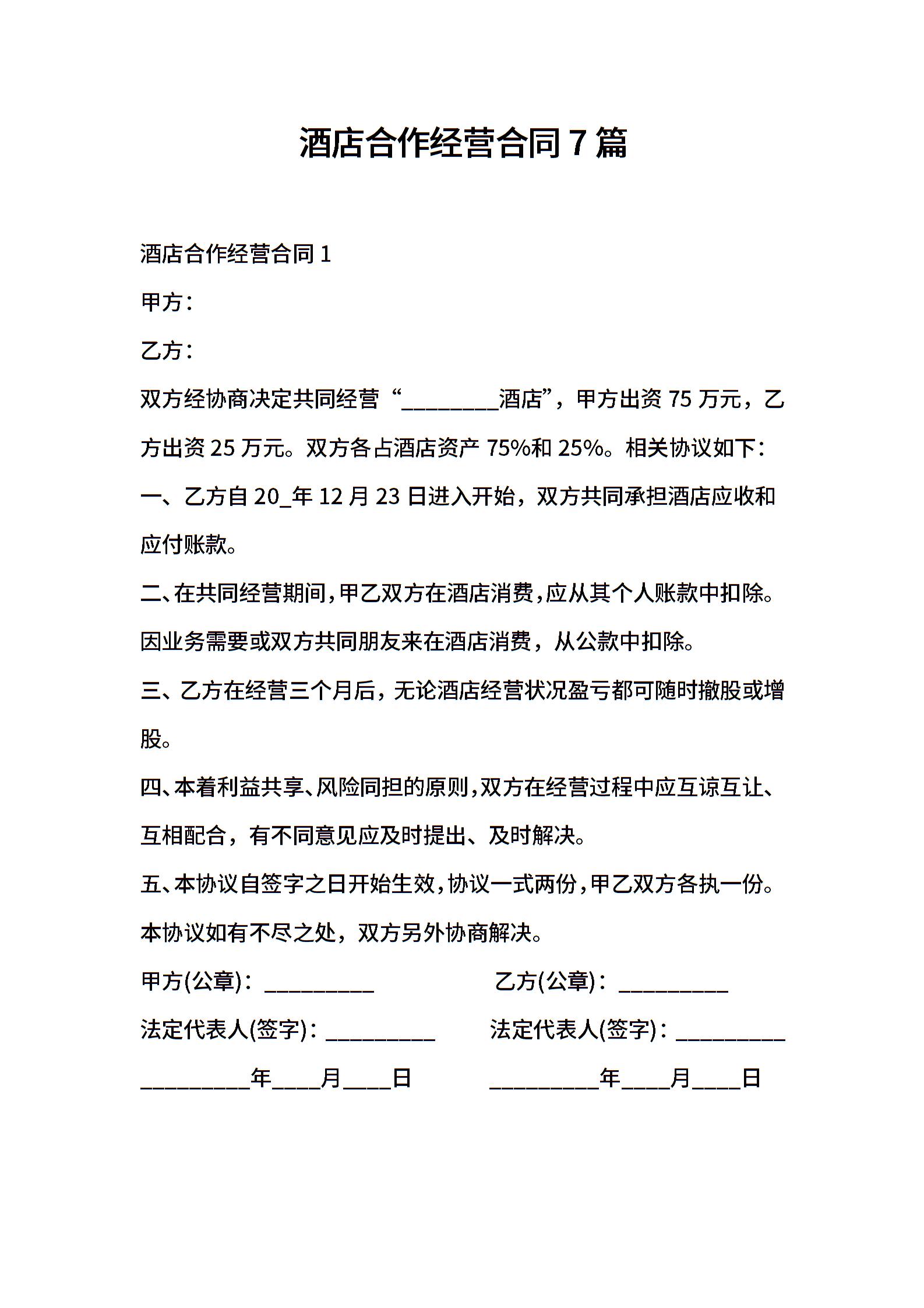 酒店合作经营合同7篇