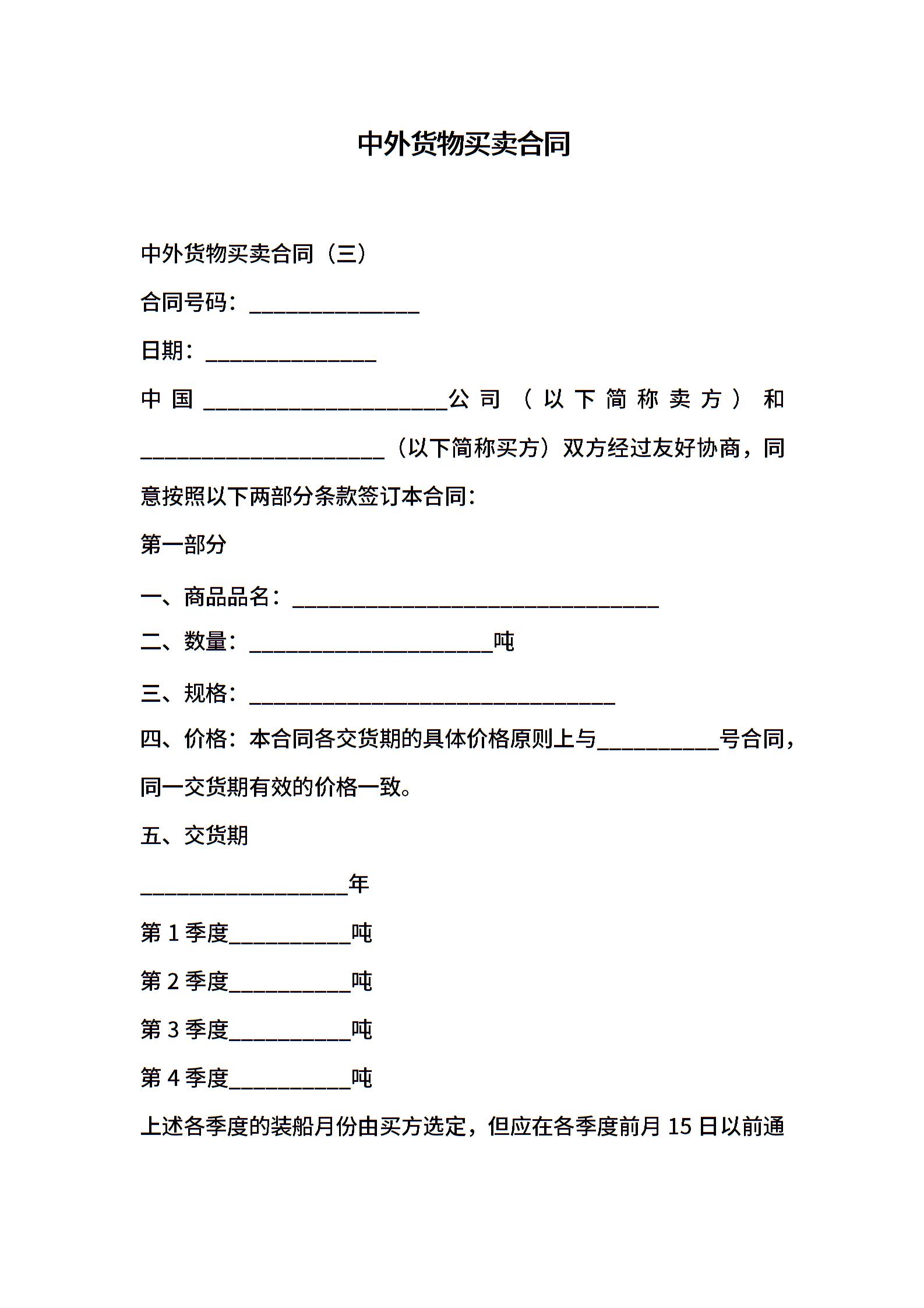 中外货物买卖合同