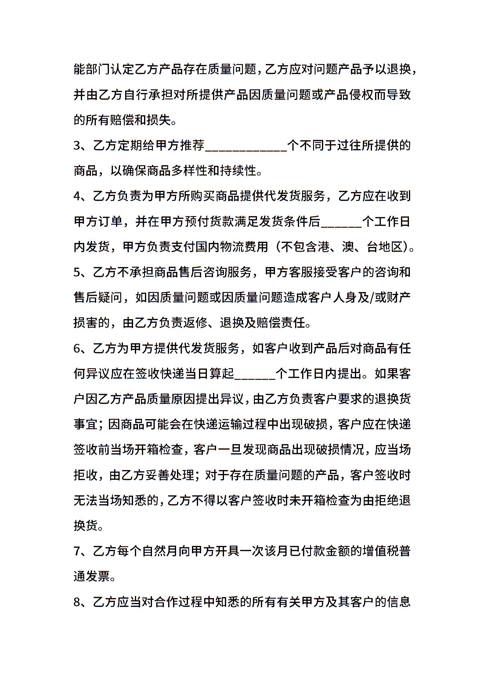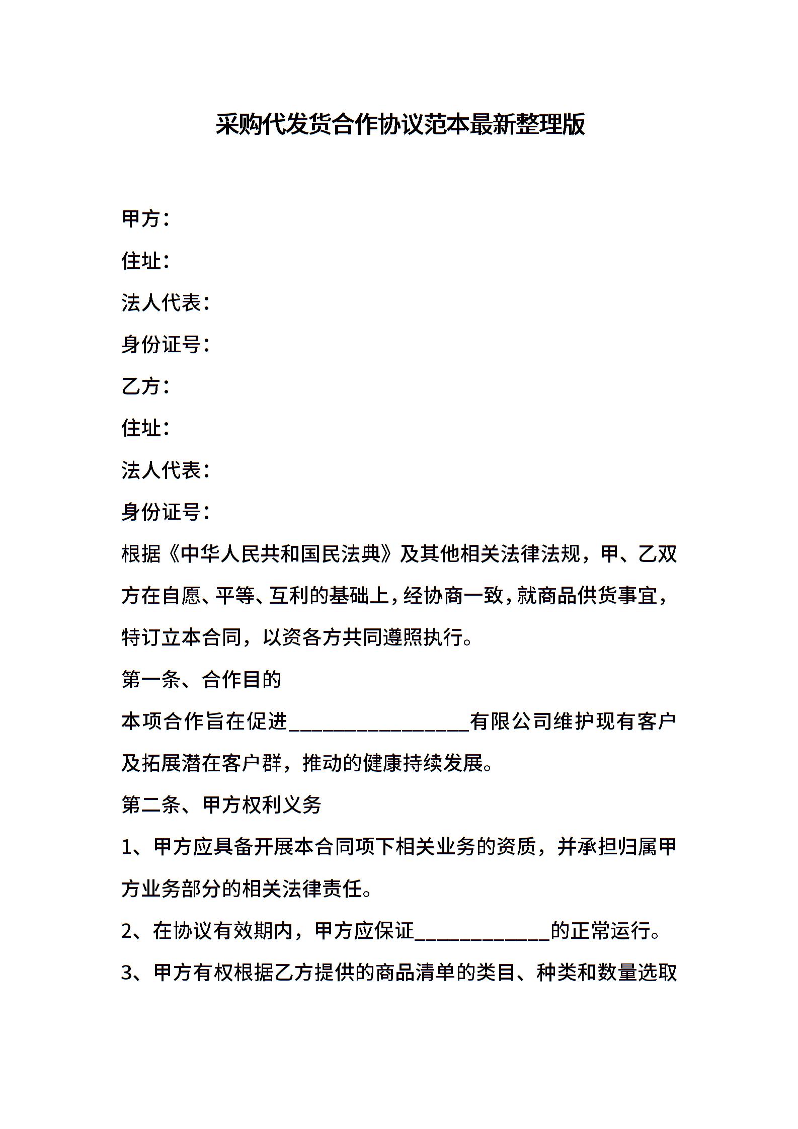 采购代发货合作协议范本最新整理版