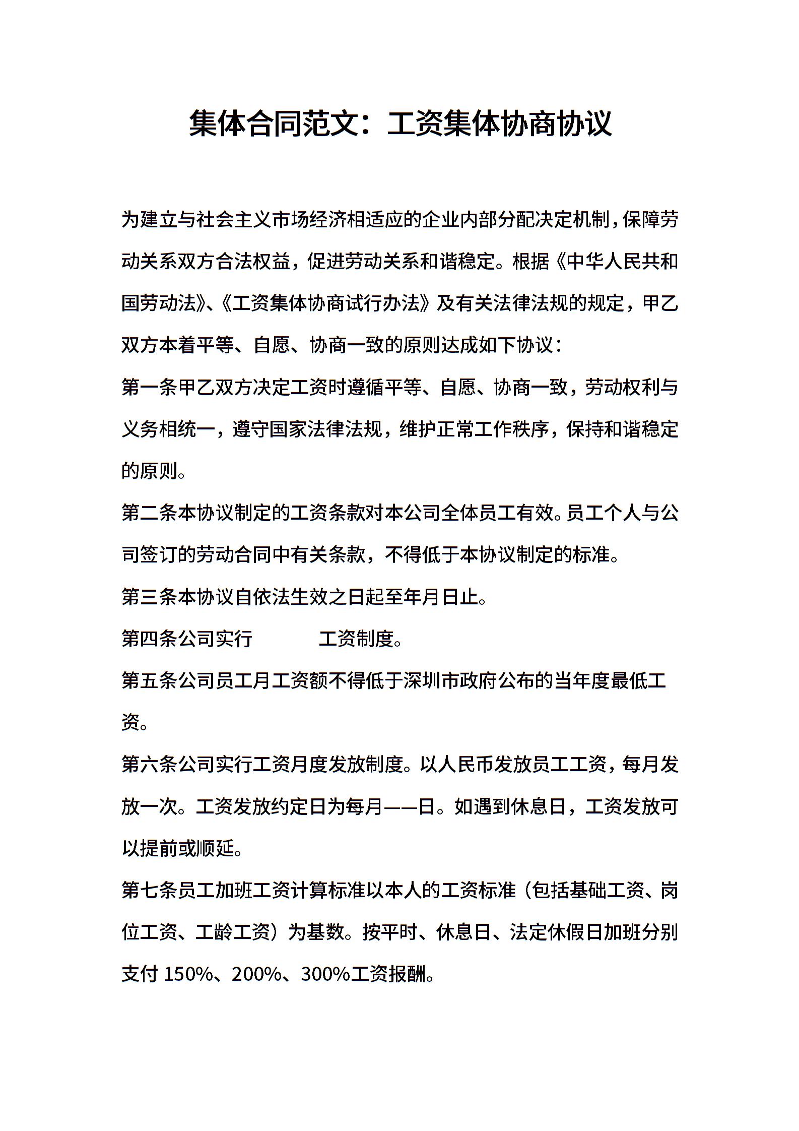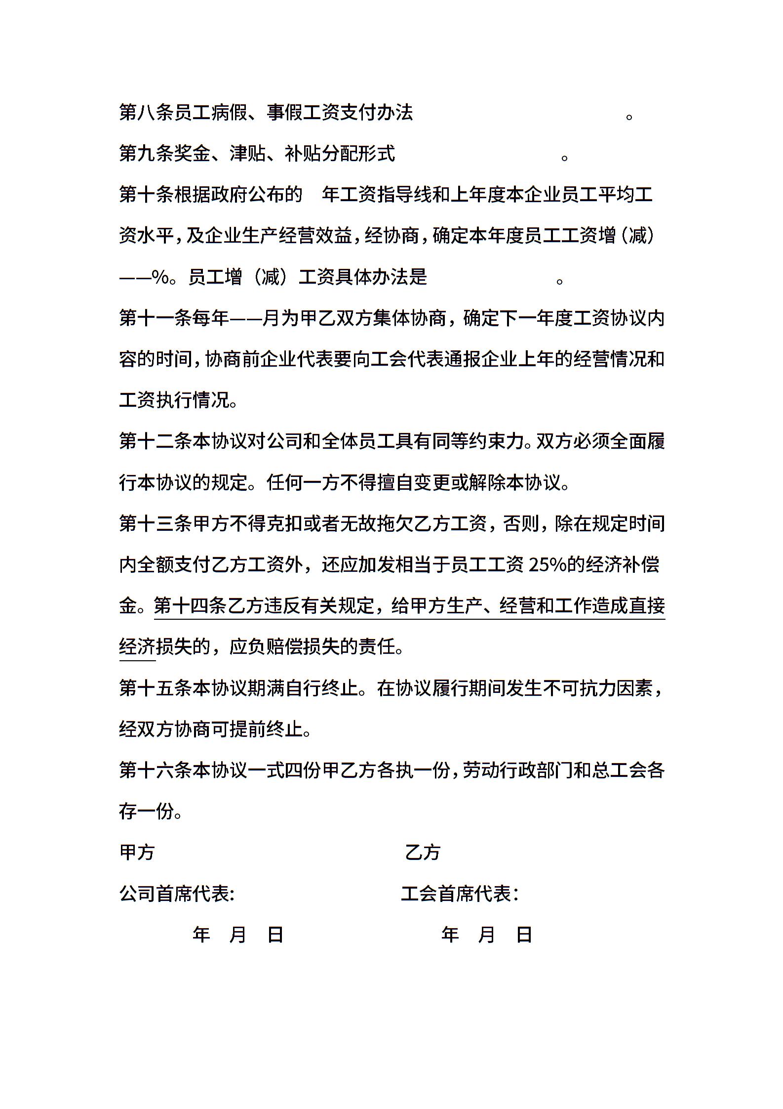 集体合同范文:工资集体协商协议
