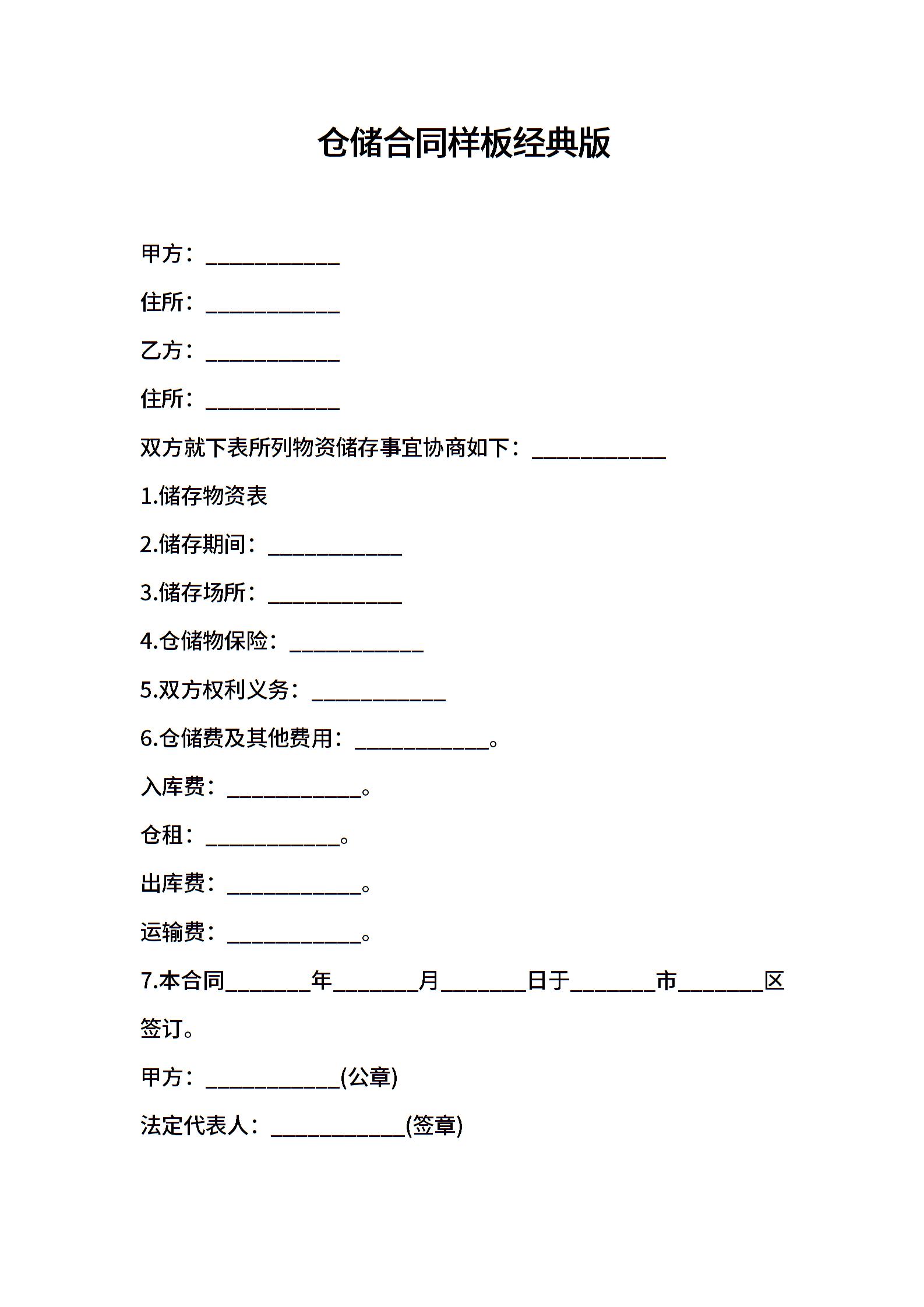 仓储合同样板经典版