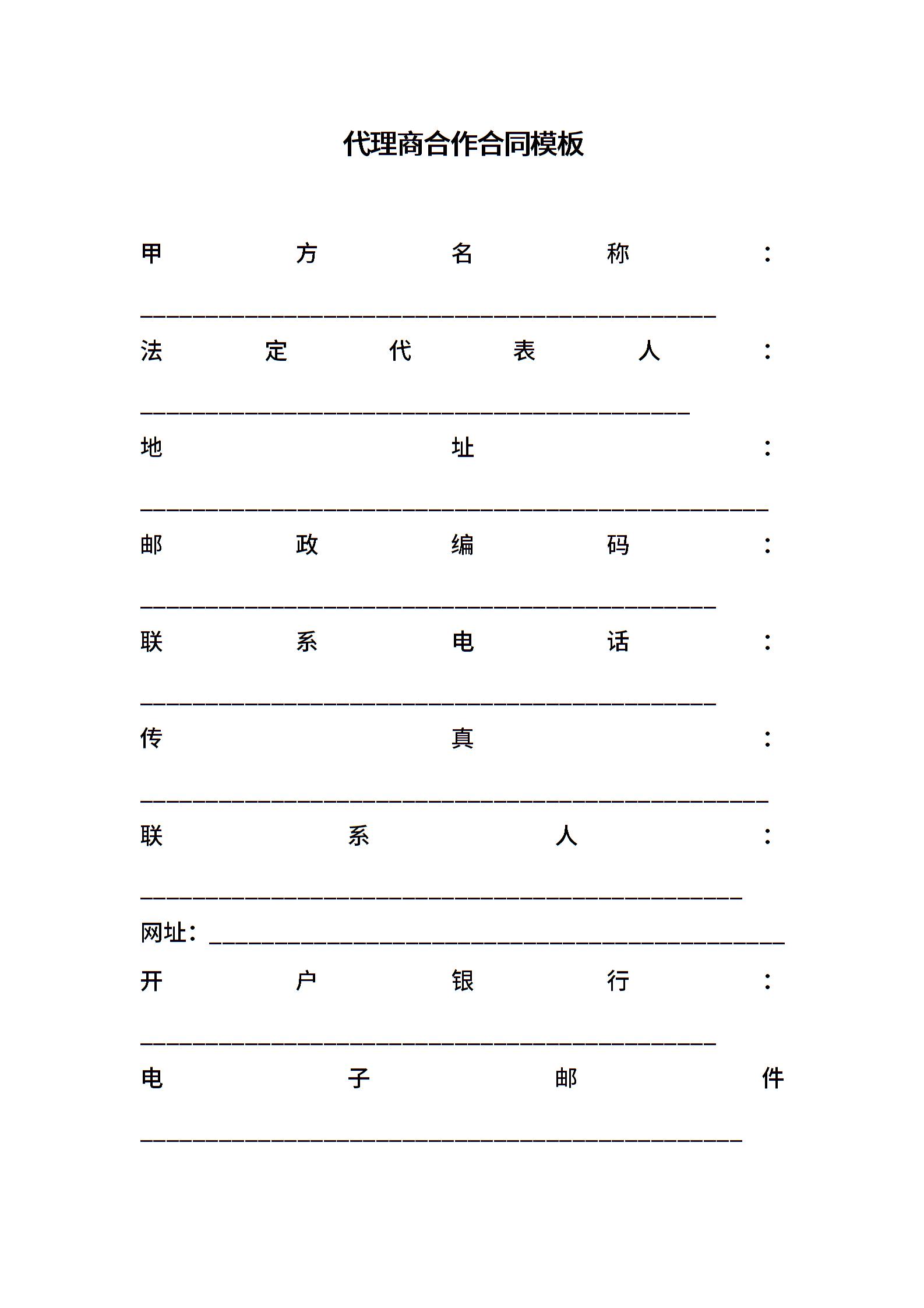 代理商合作合同模板
