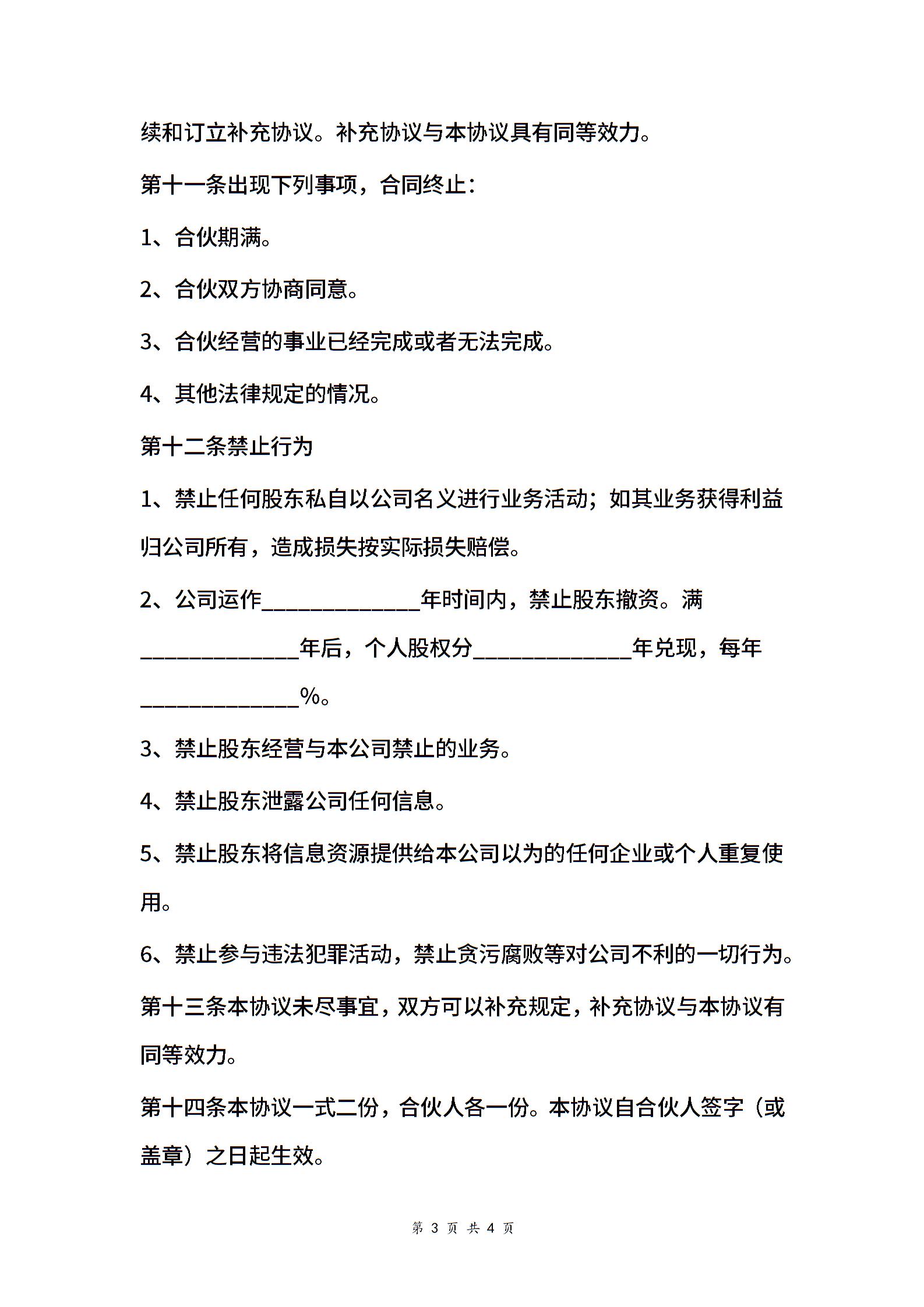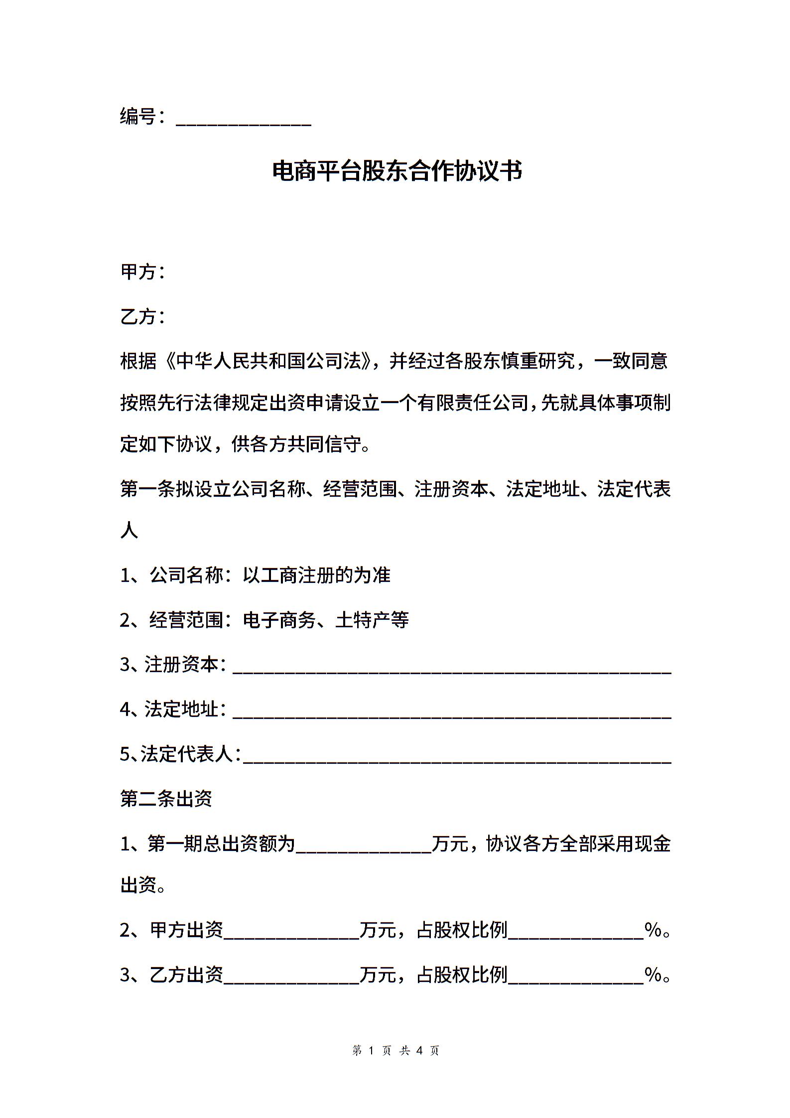 电商平台股东合作合同协议范本