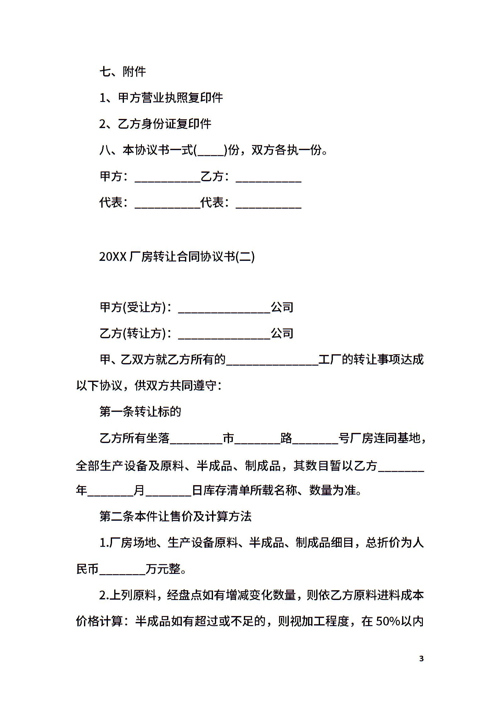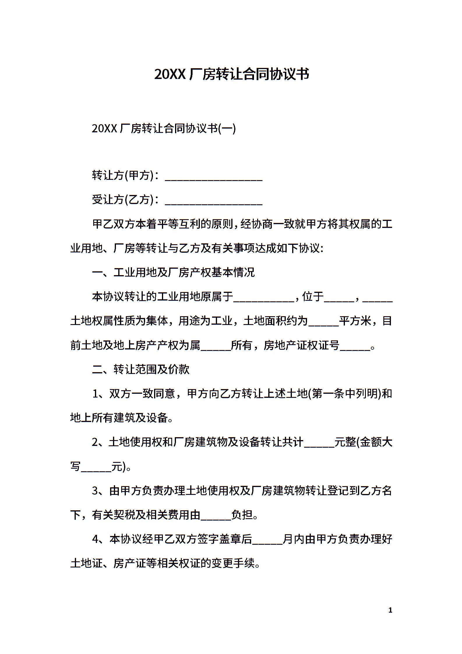 2020厂房转让合同协议书