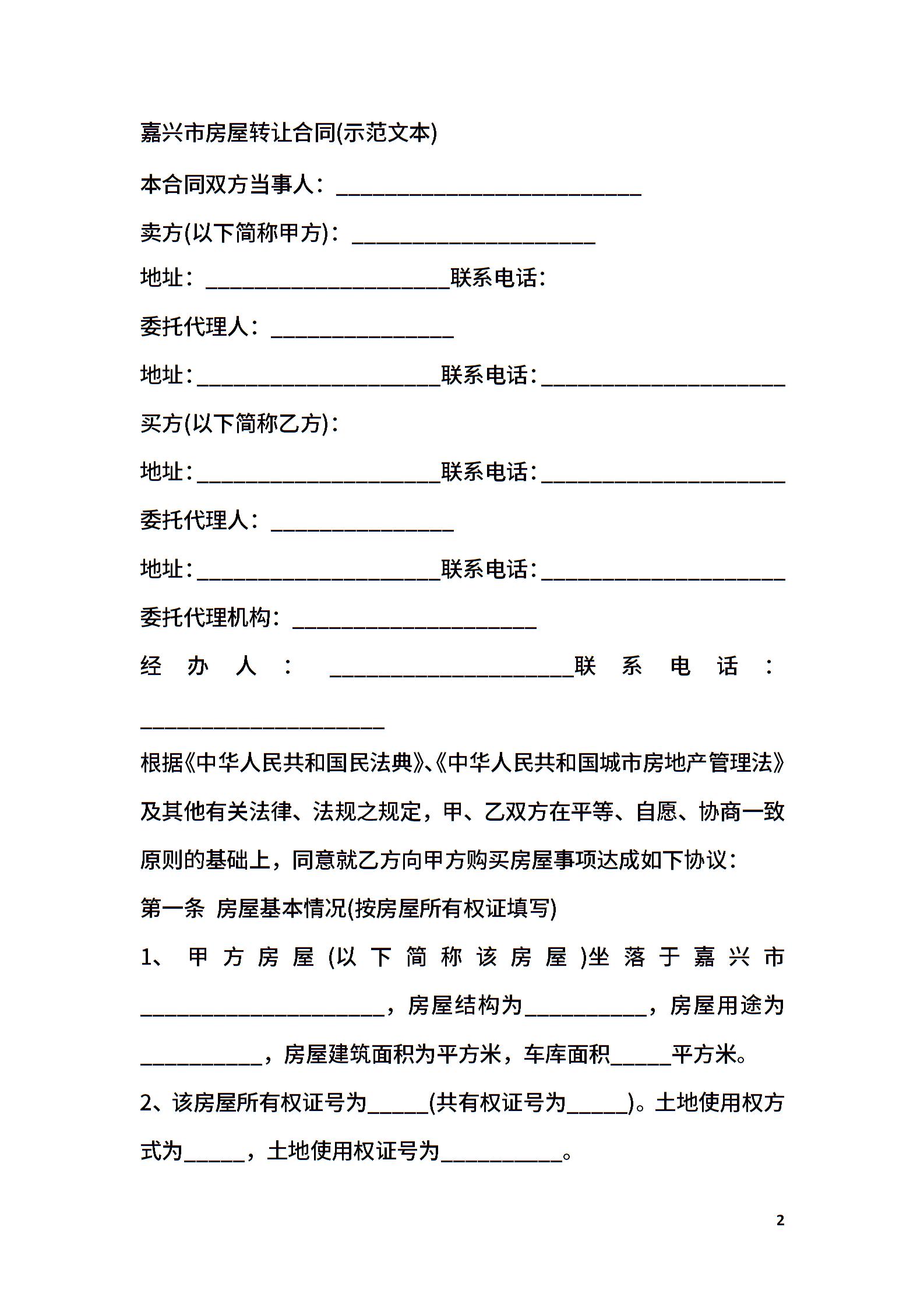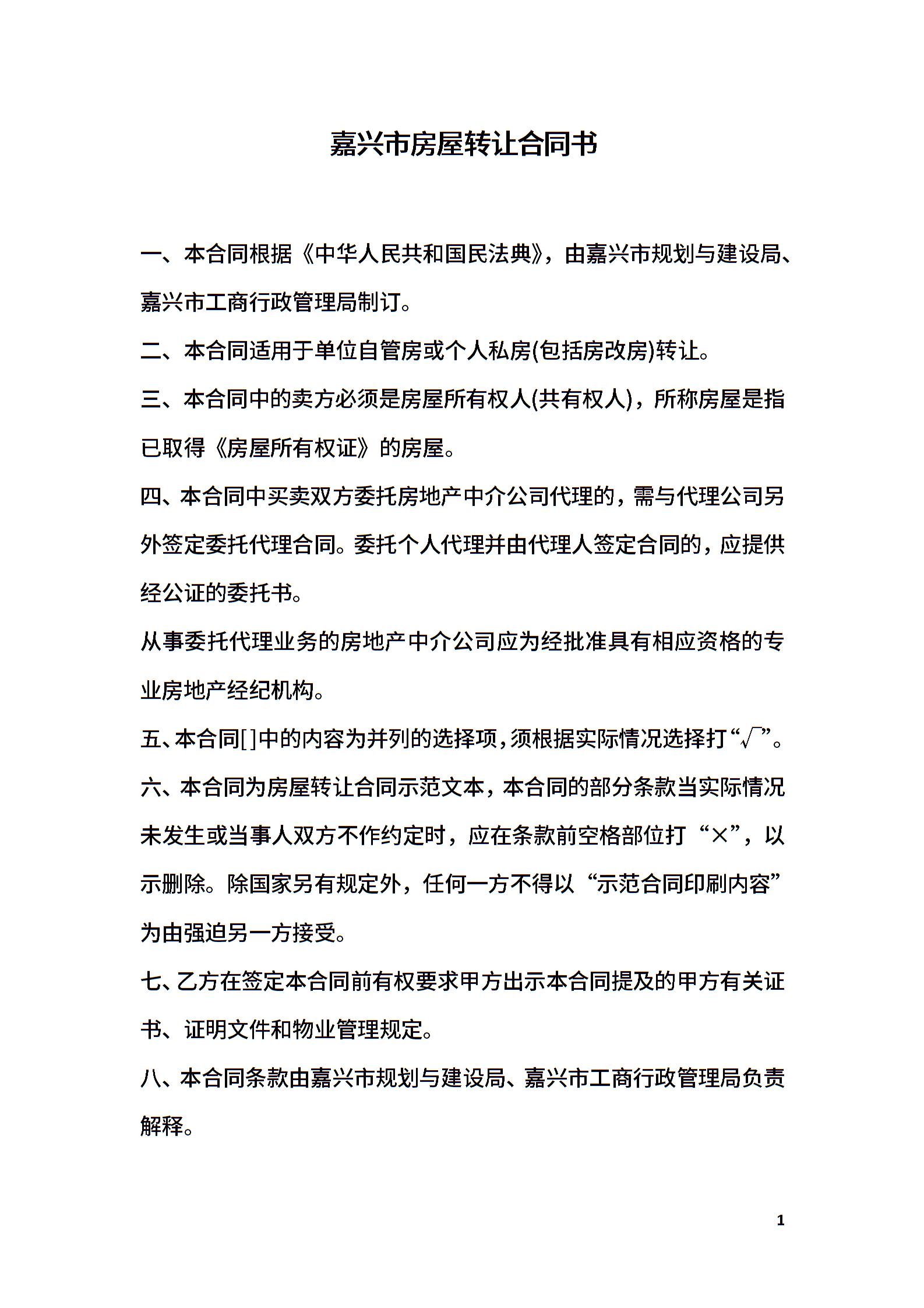 嘉兴市房屋转让合同书