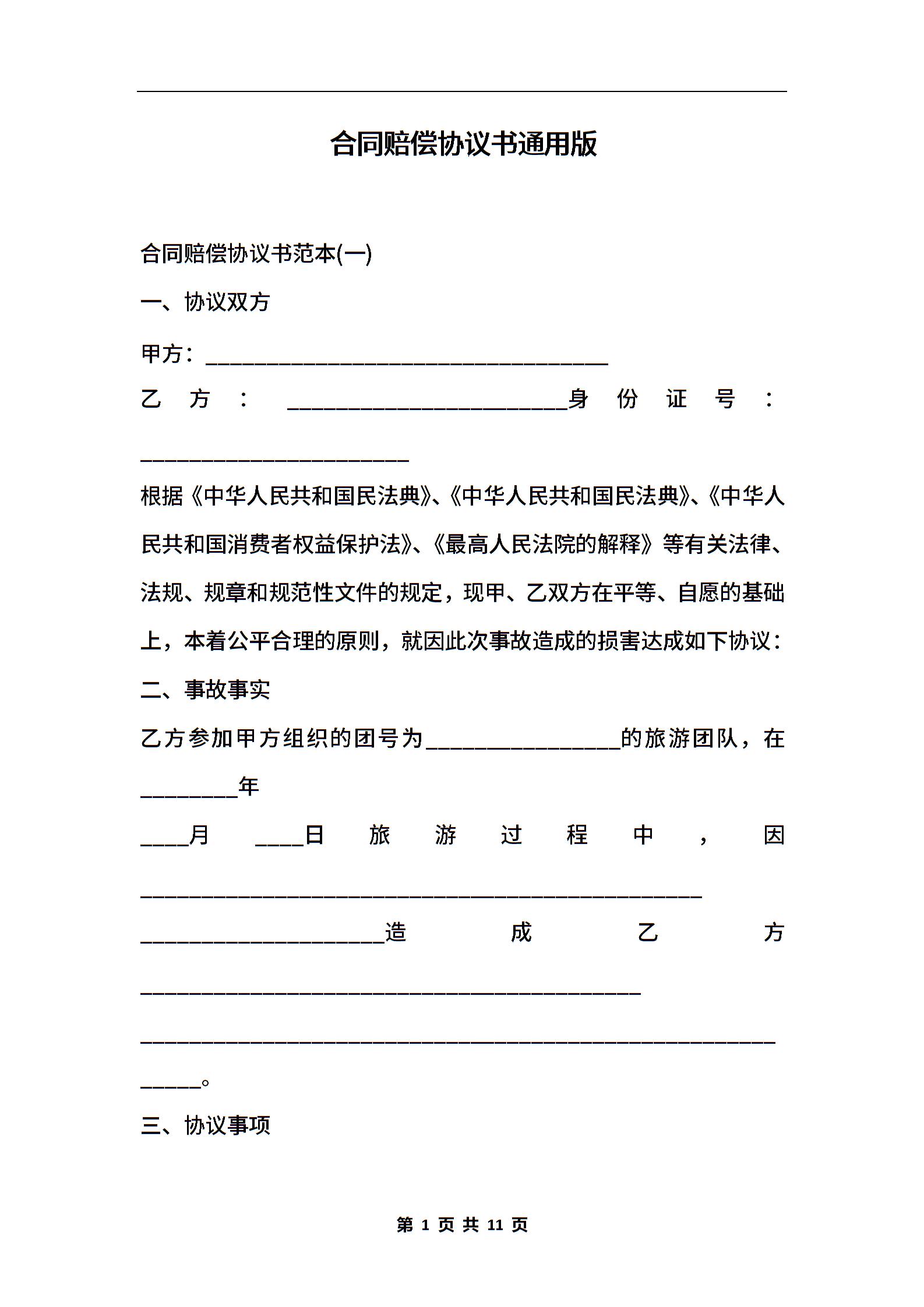合同赔偿协议书通用版