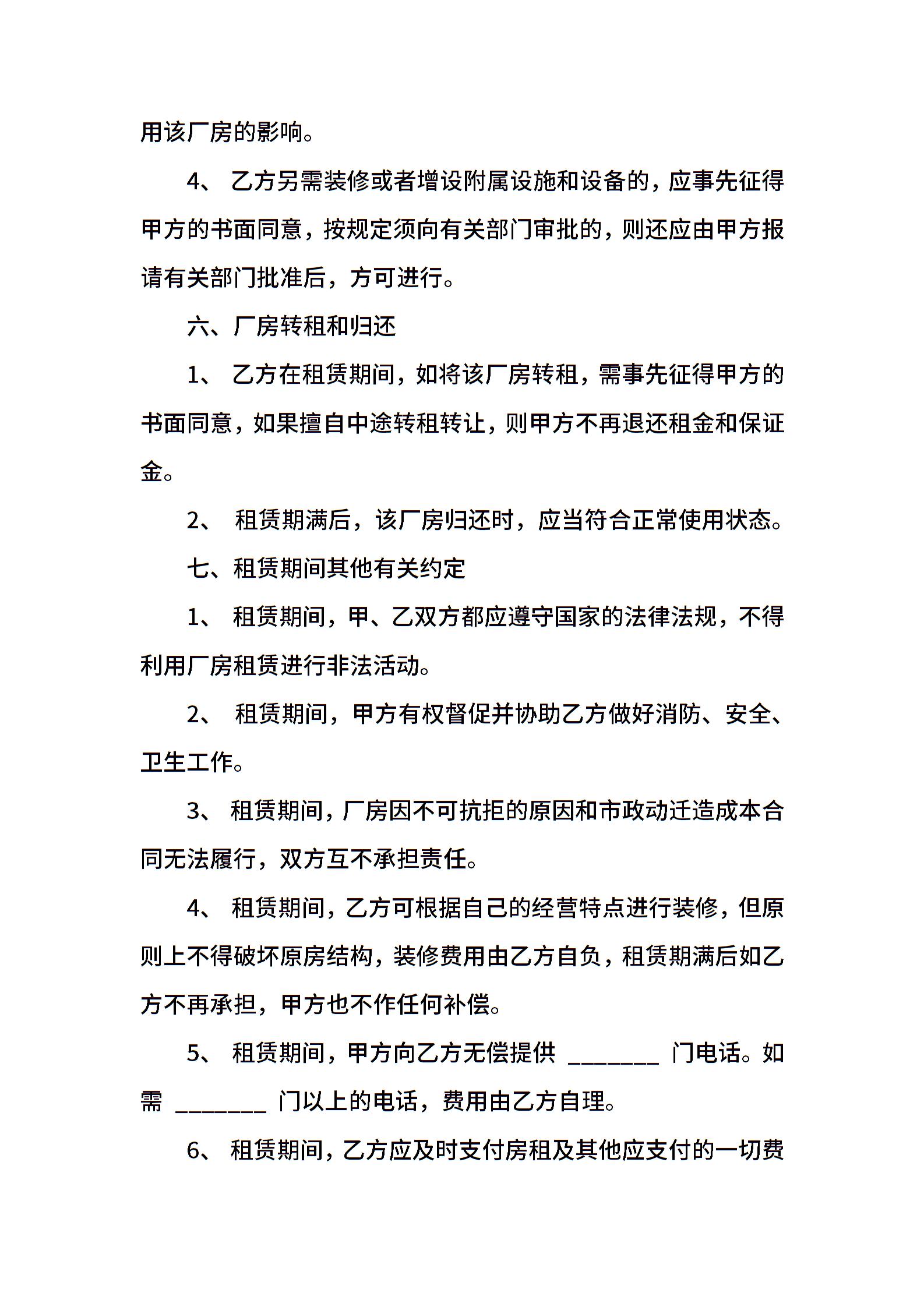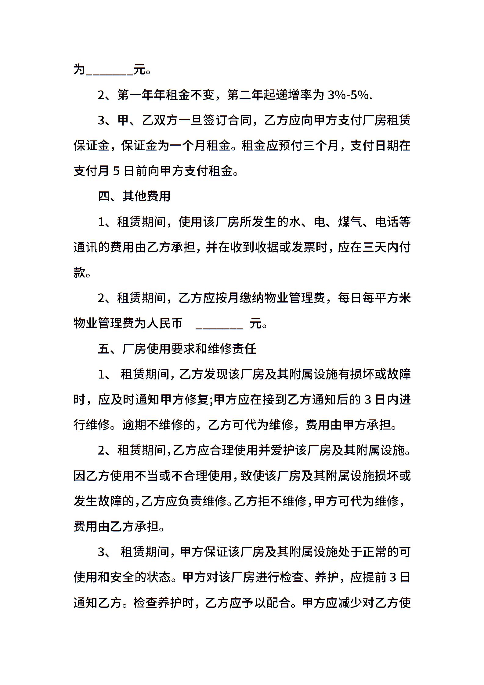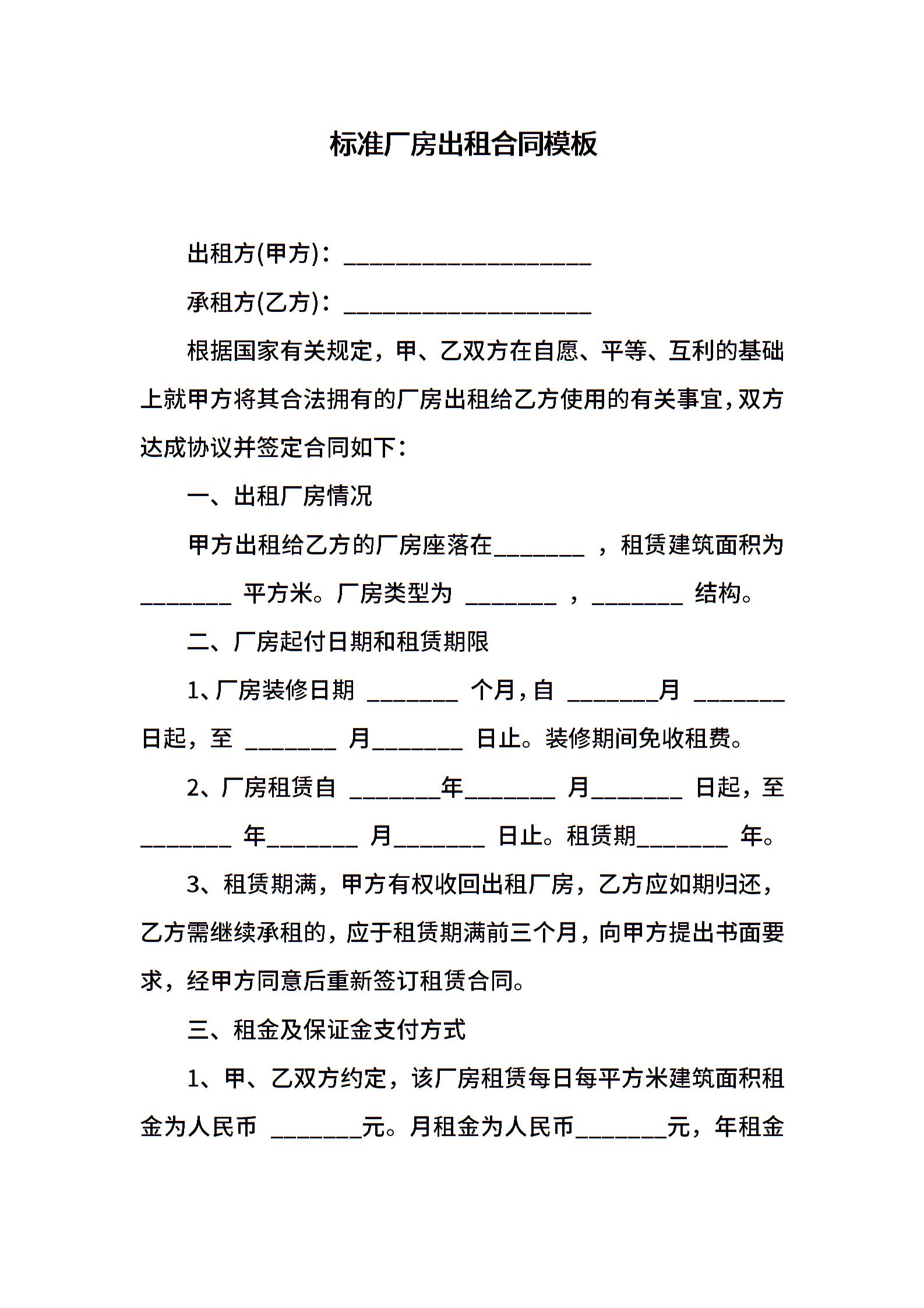 标准厂房出租合同模板