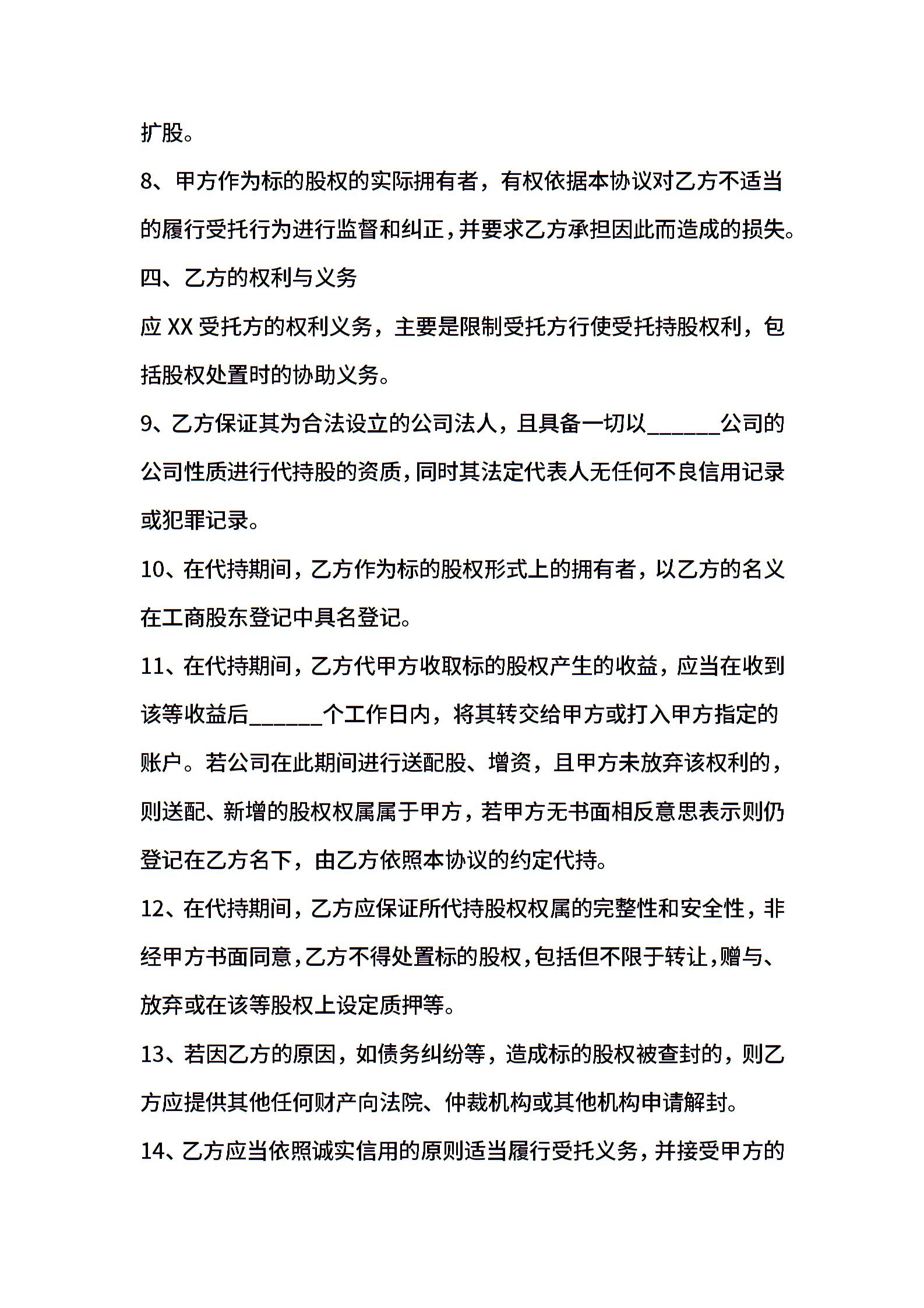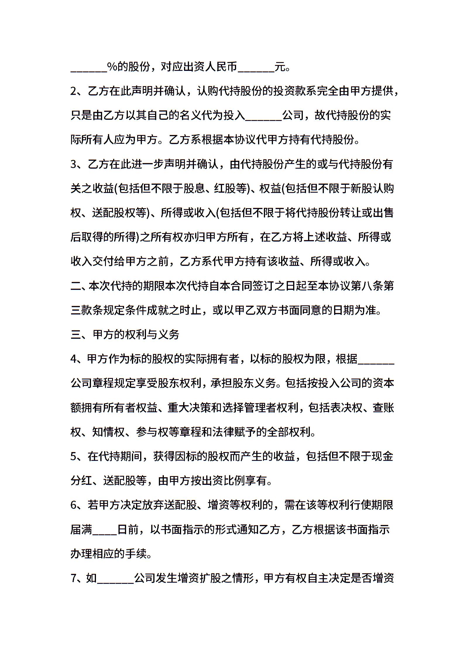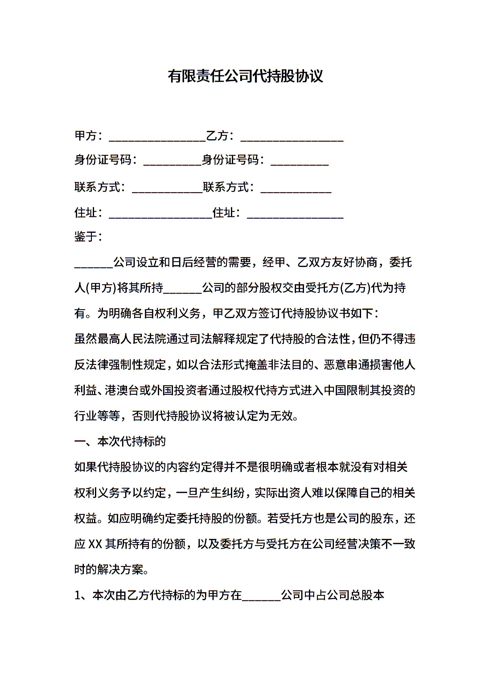 有限责任公司代持股协议