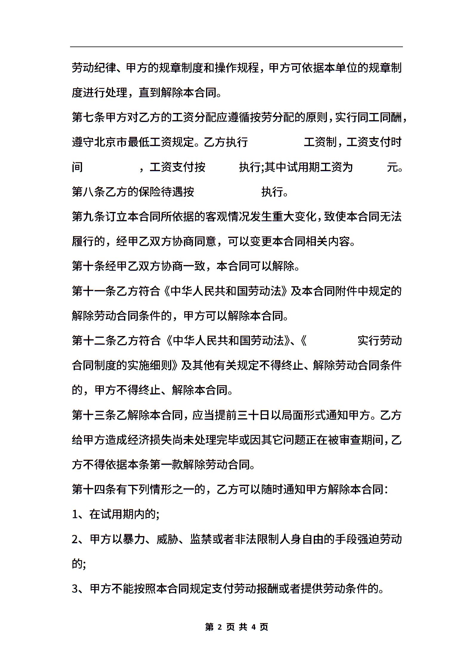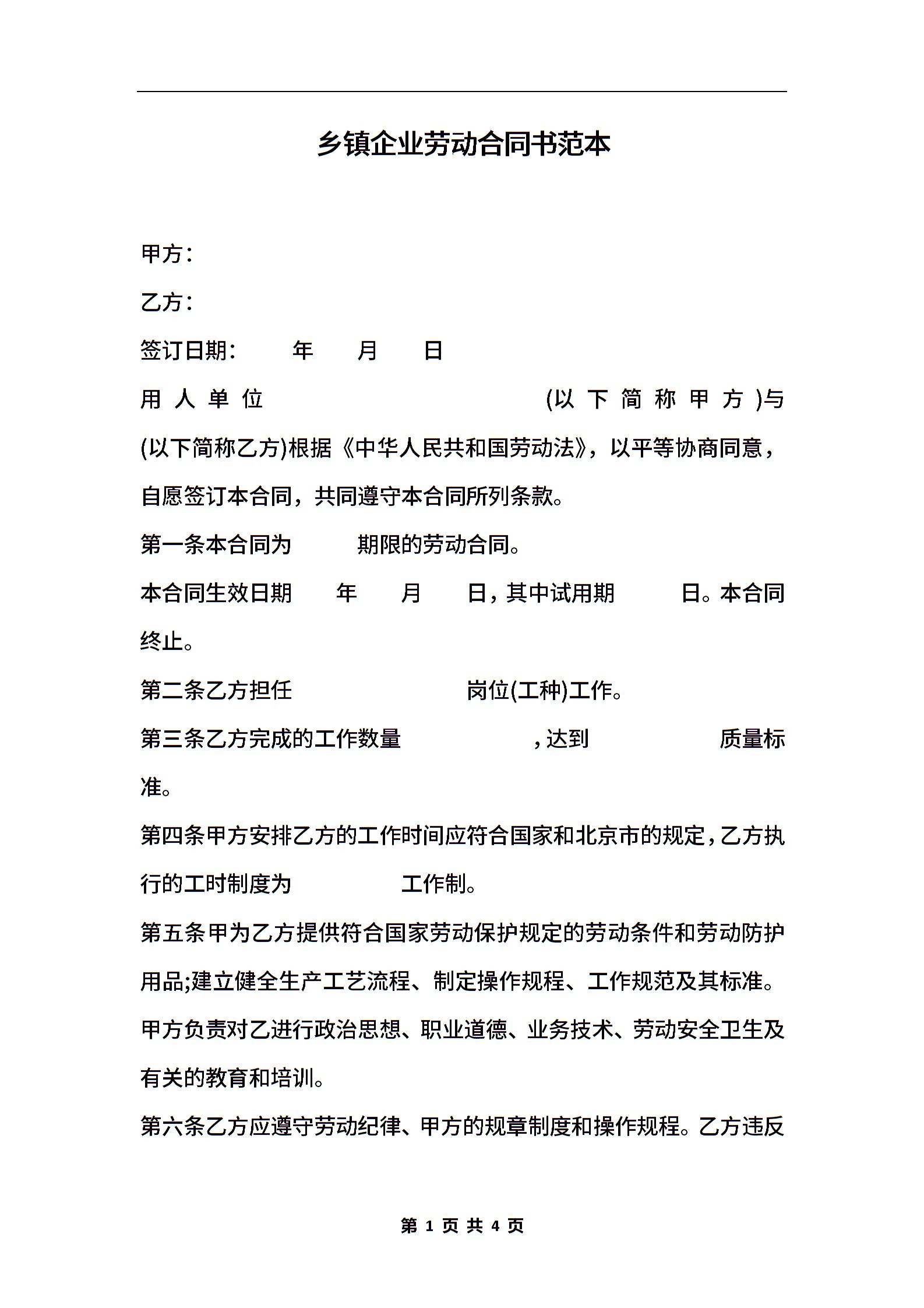 乡镇企业劳动合同书范本