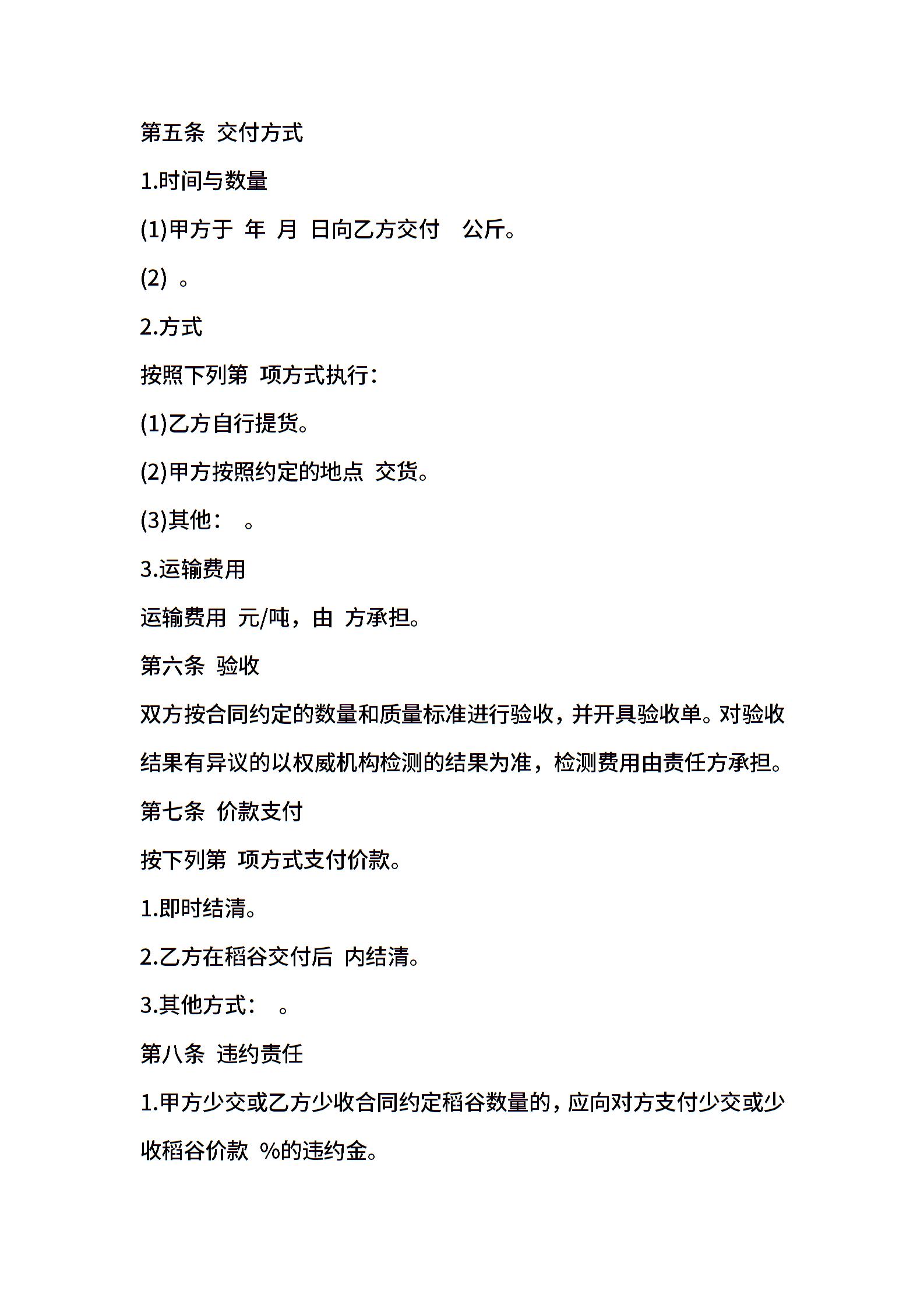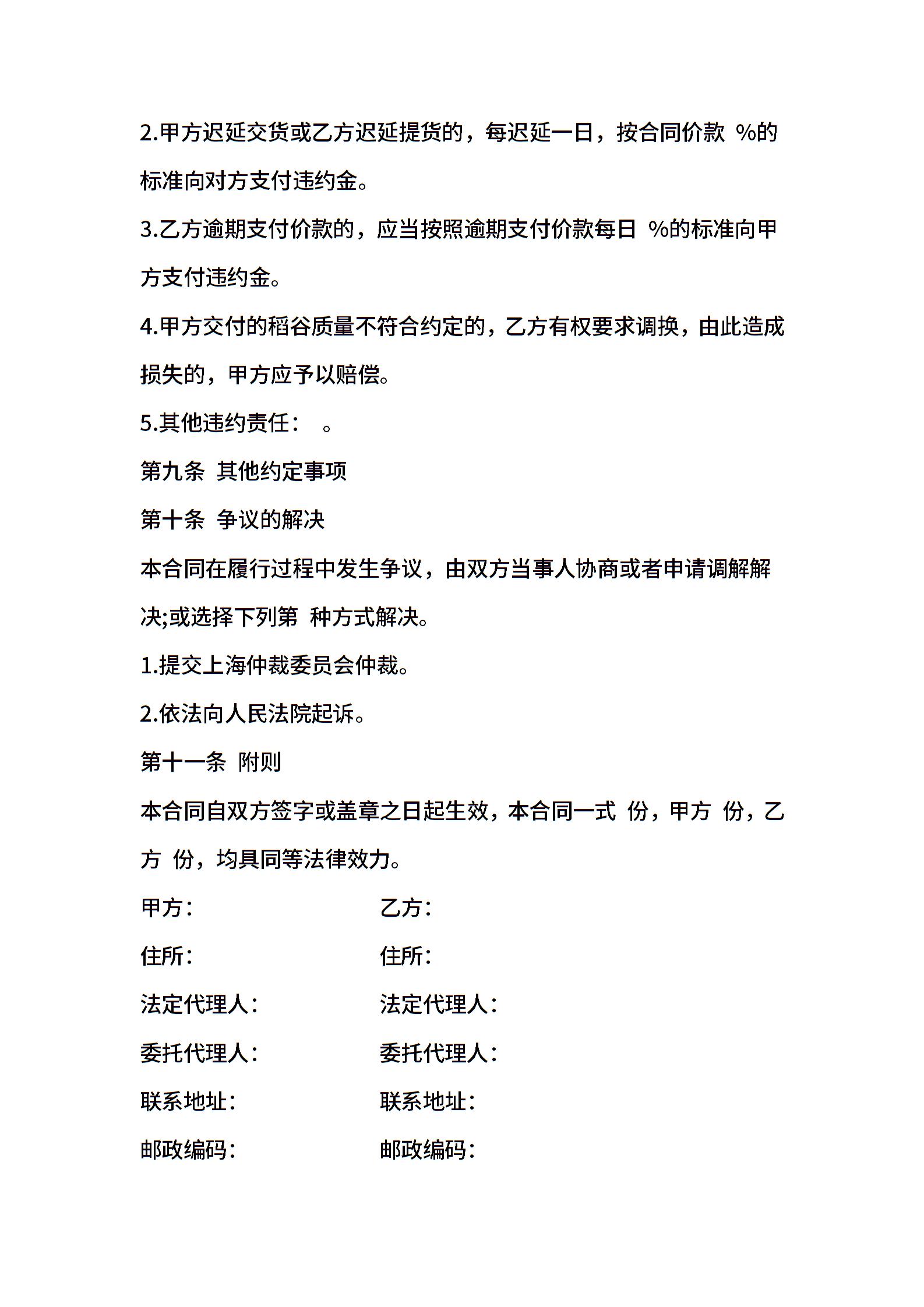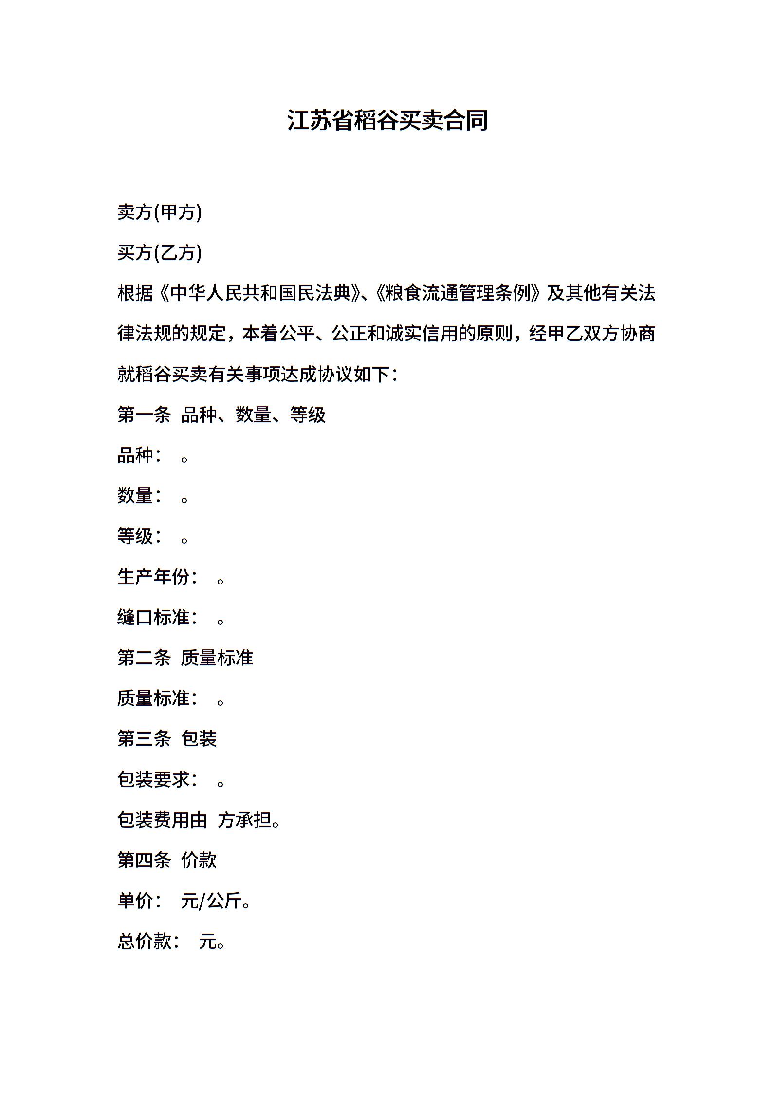 江苏省稻谷买卖合同