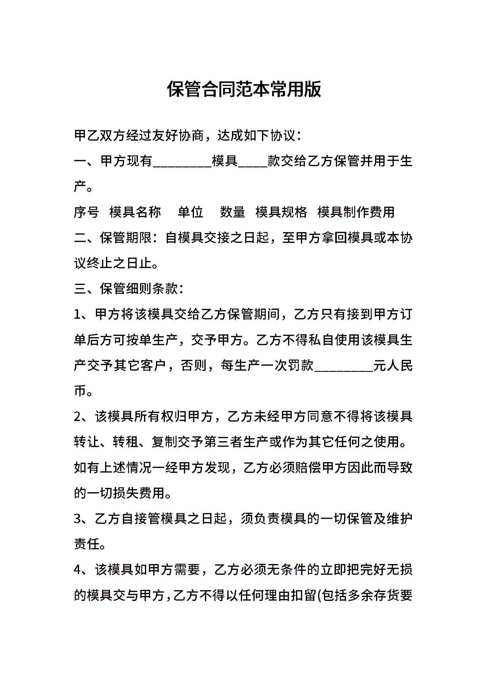 保管合同范本常用版