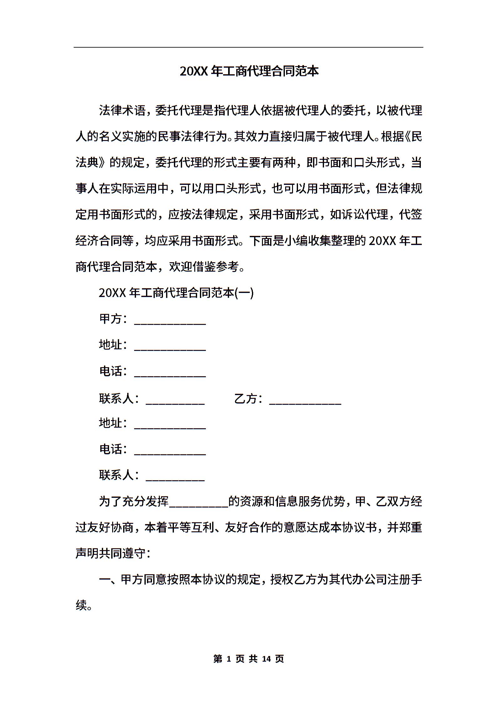 2020年工商代理合同范本.docx