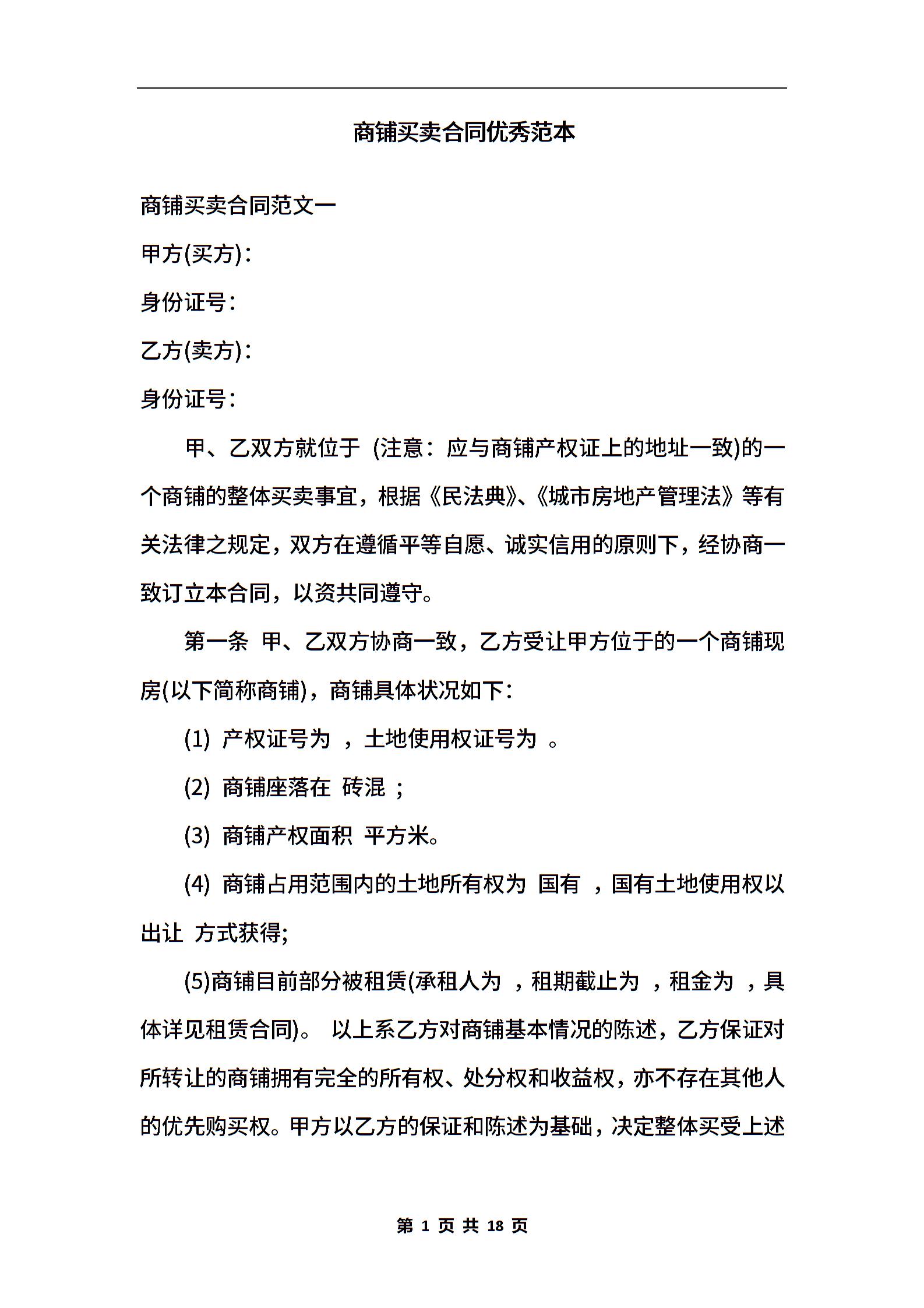 商铺买卖合同优秀范本.docx