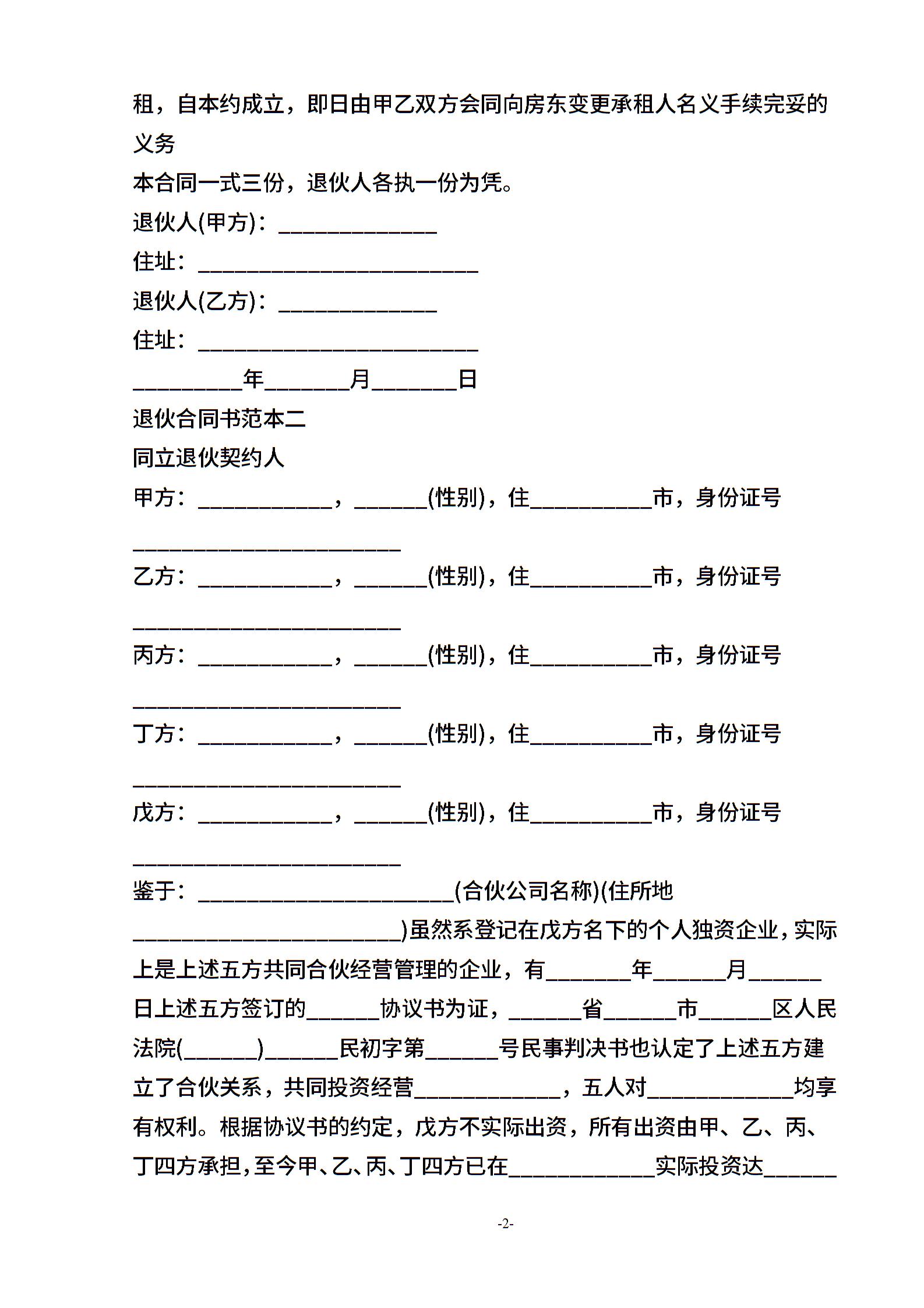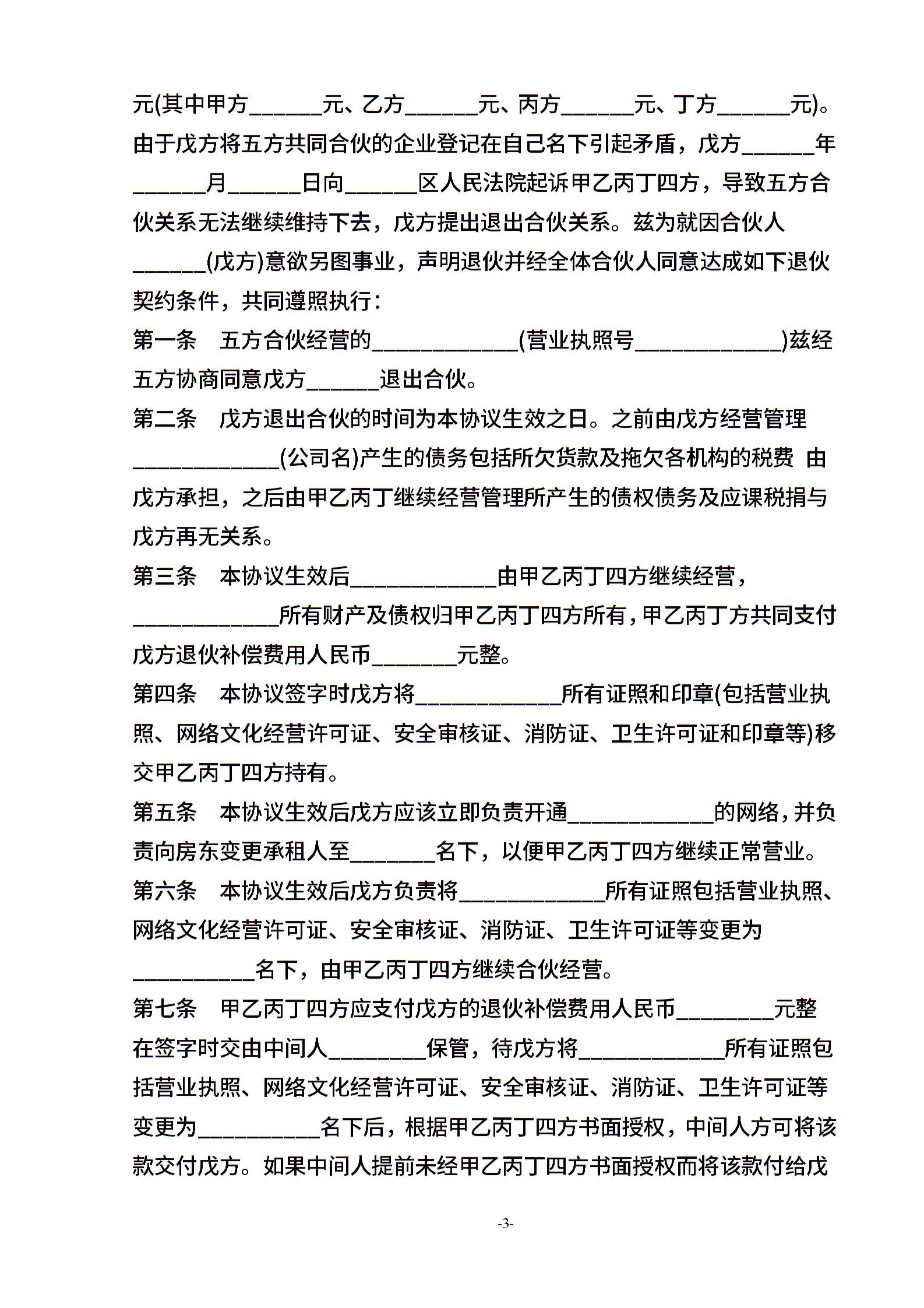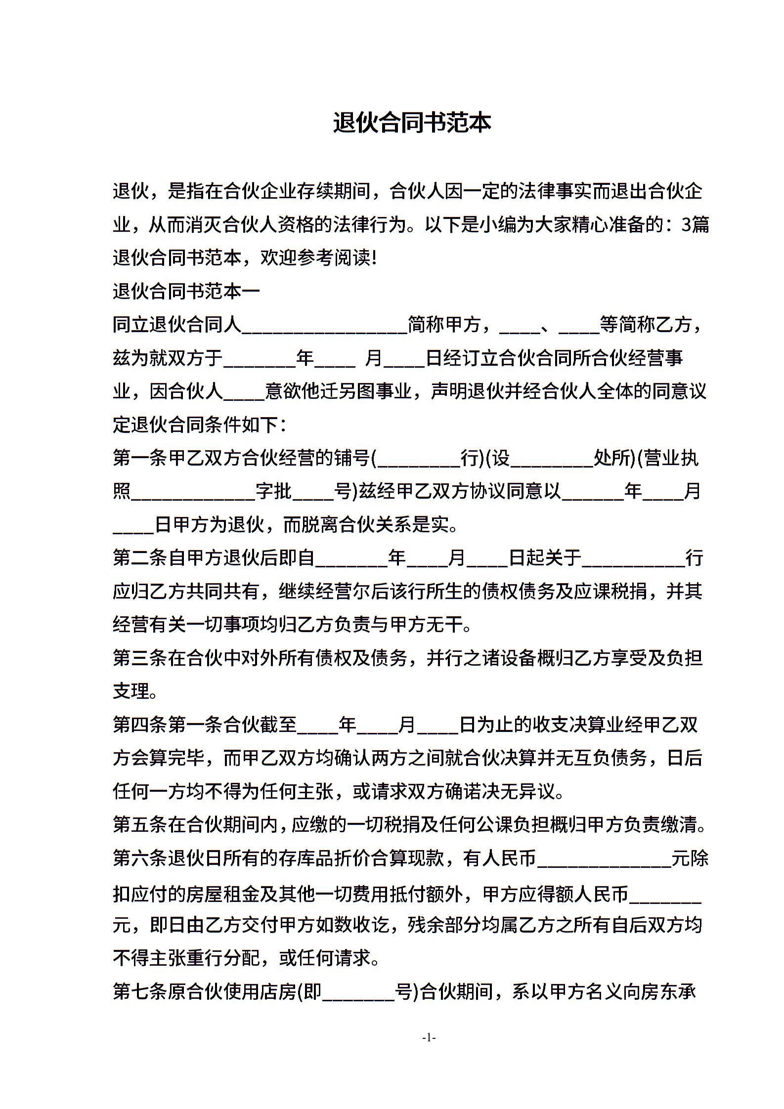 退伙合同书范本3篇
