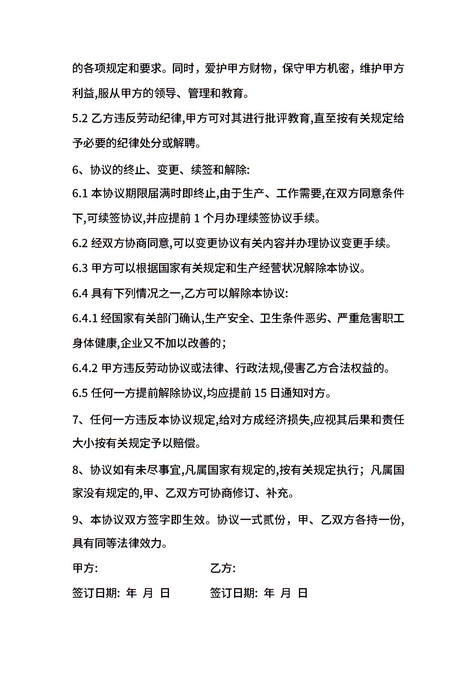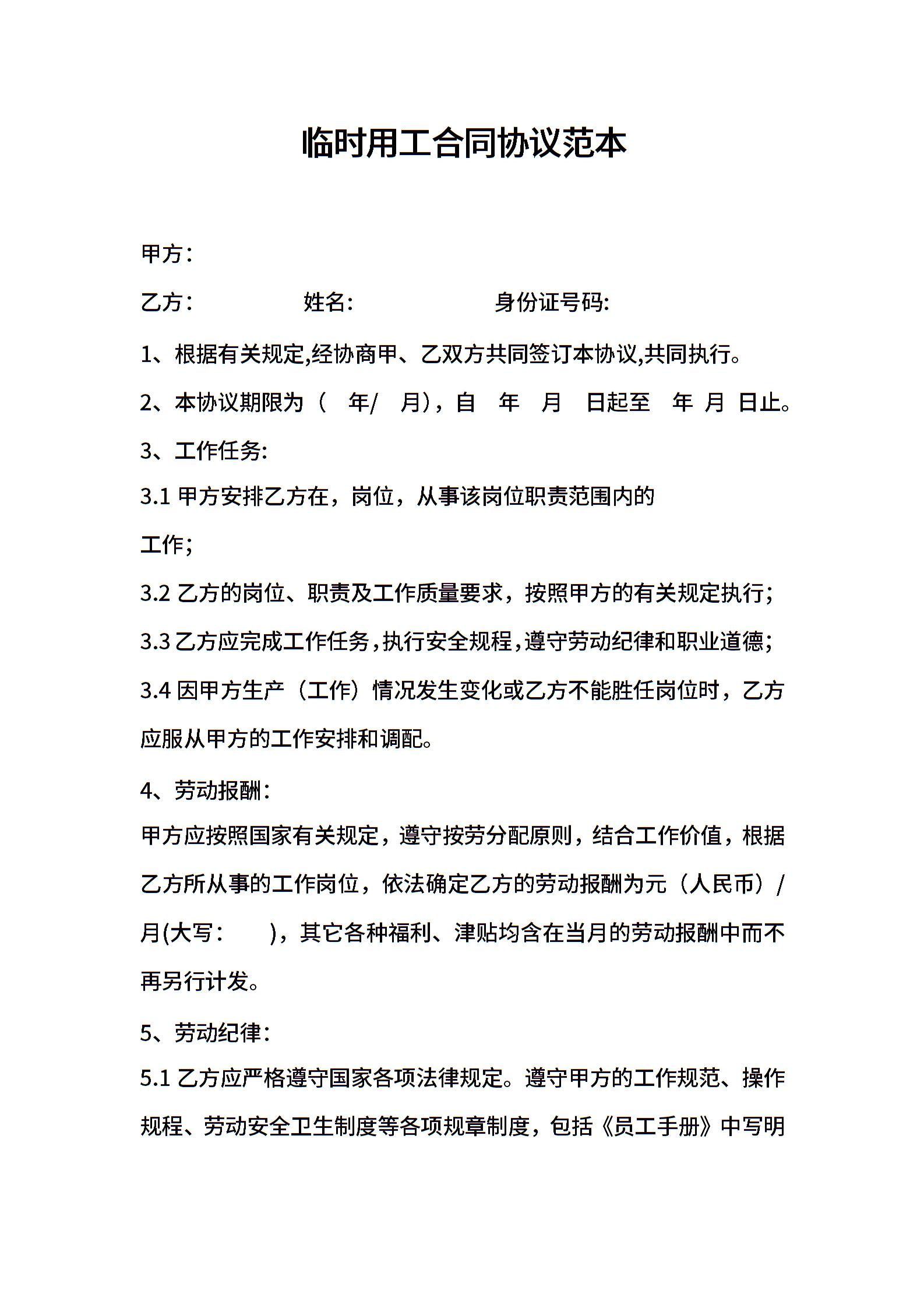 临时用工合同协议范本