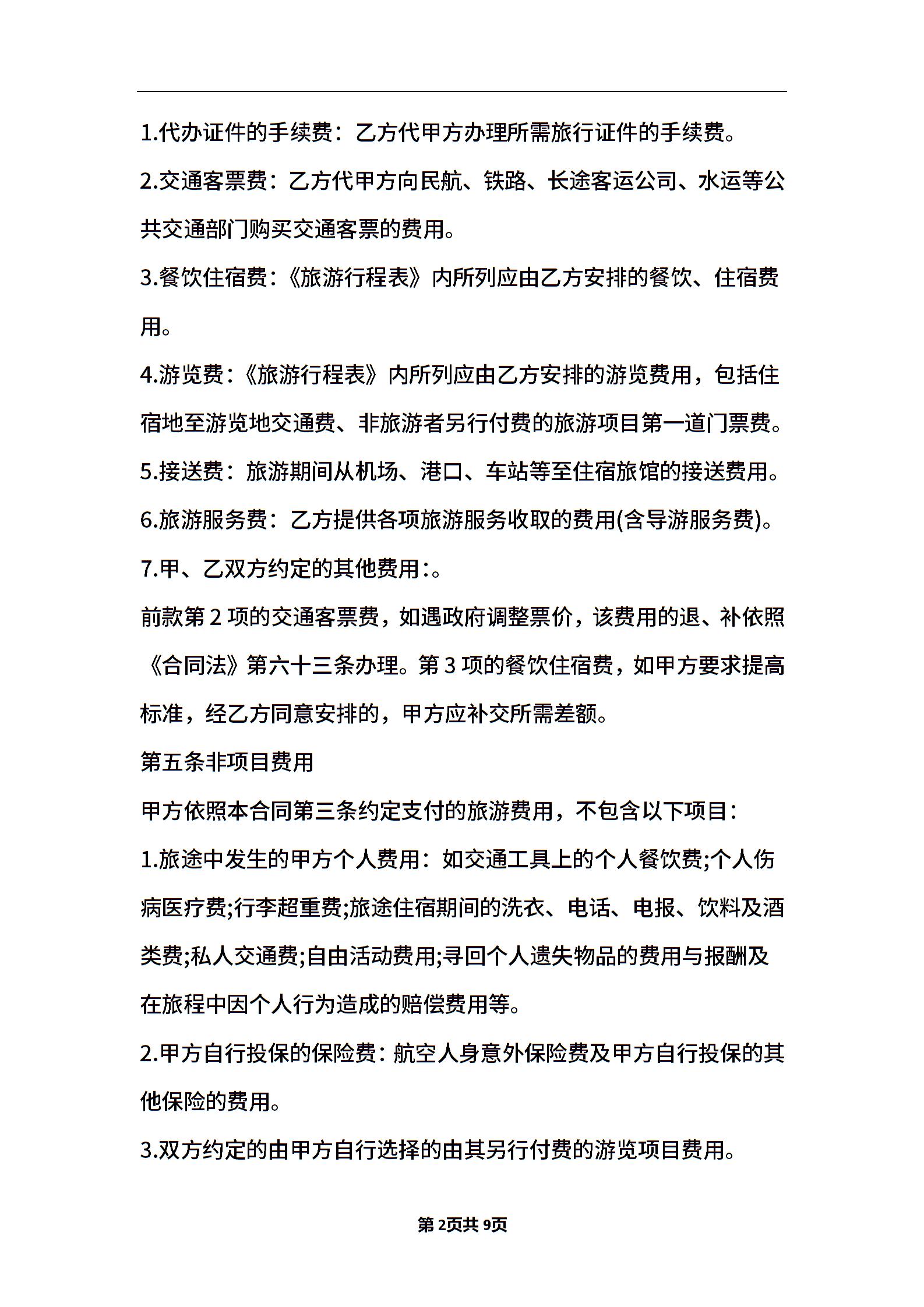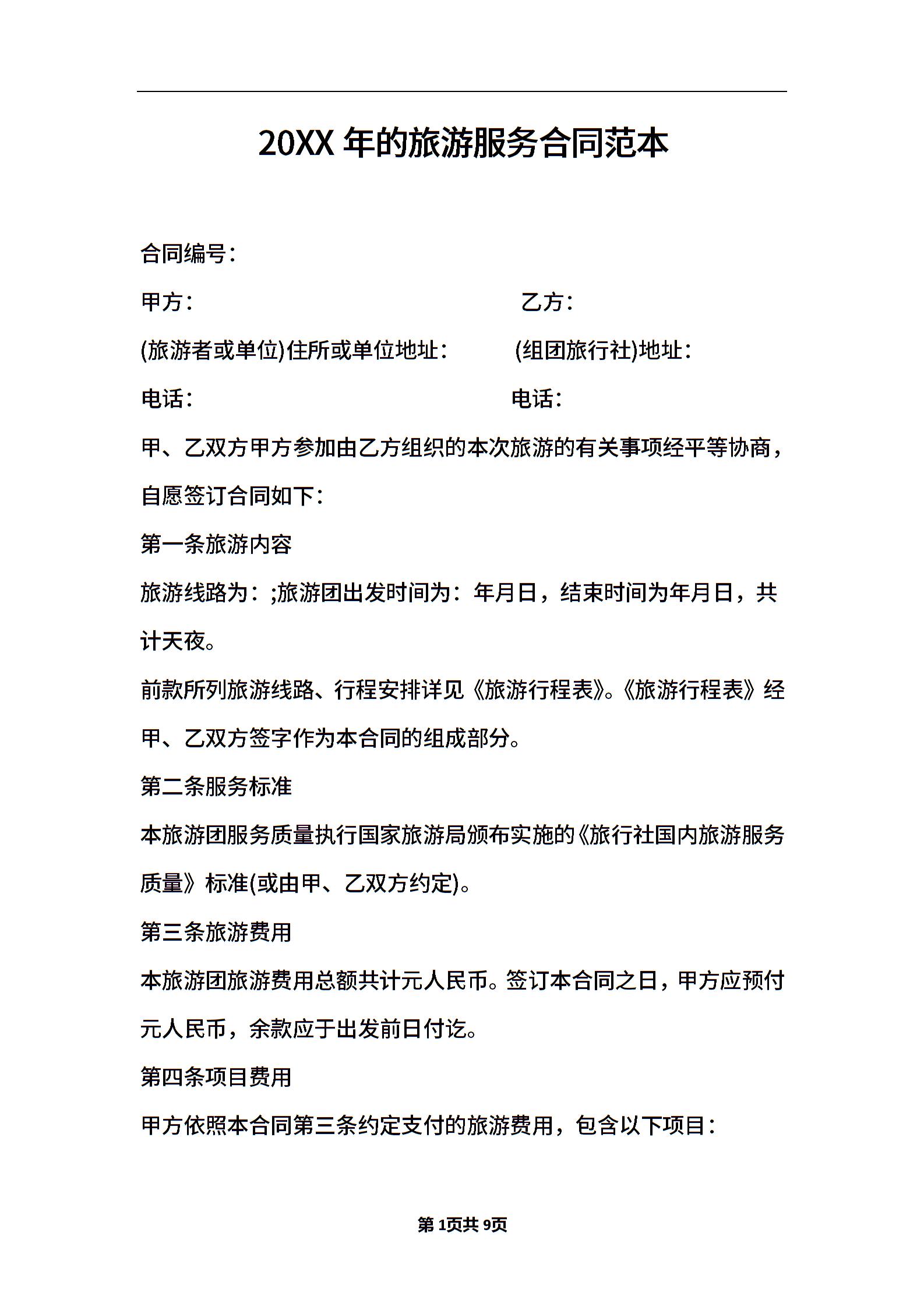2021年的旅游服务合同范本(可下载)