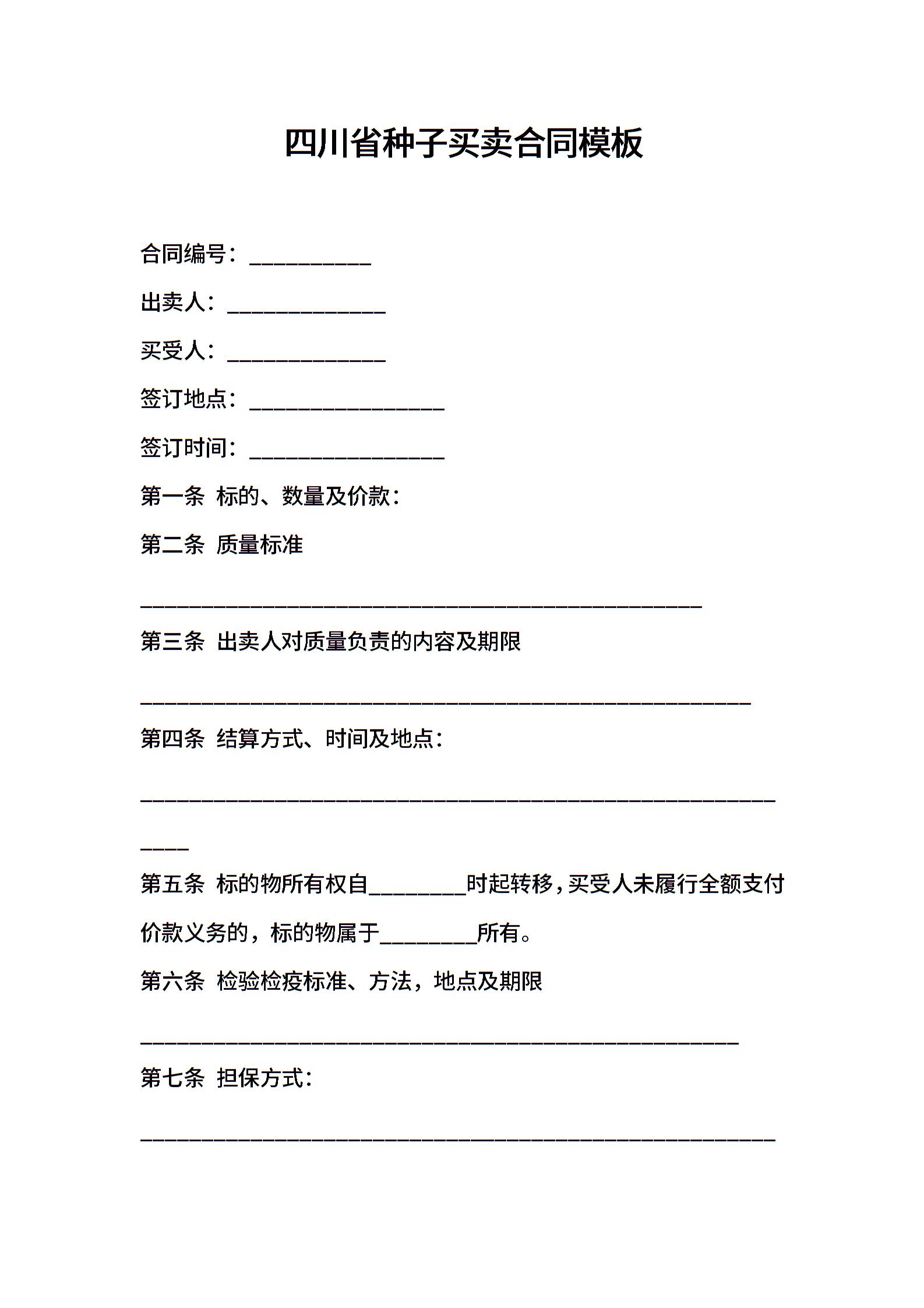 四川省种子买卖合同模板