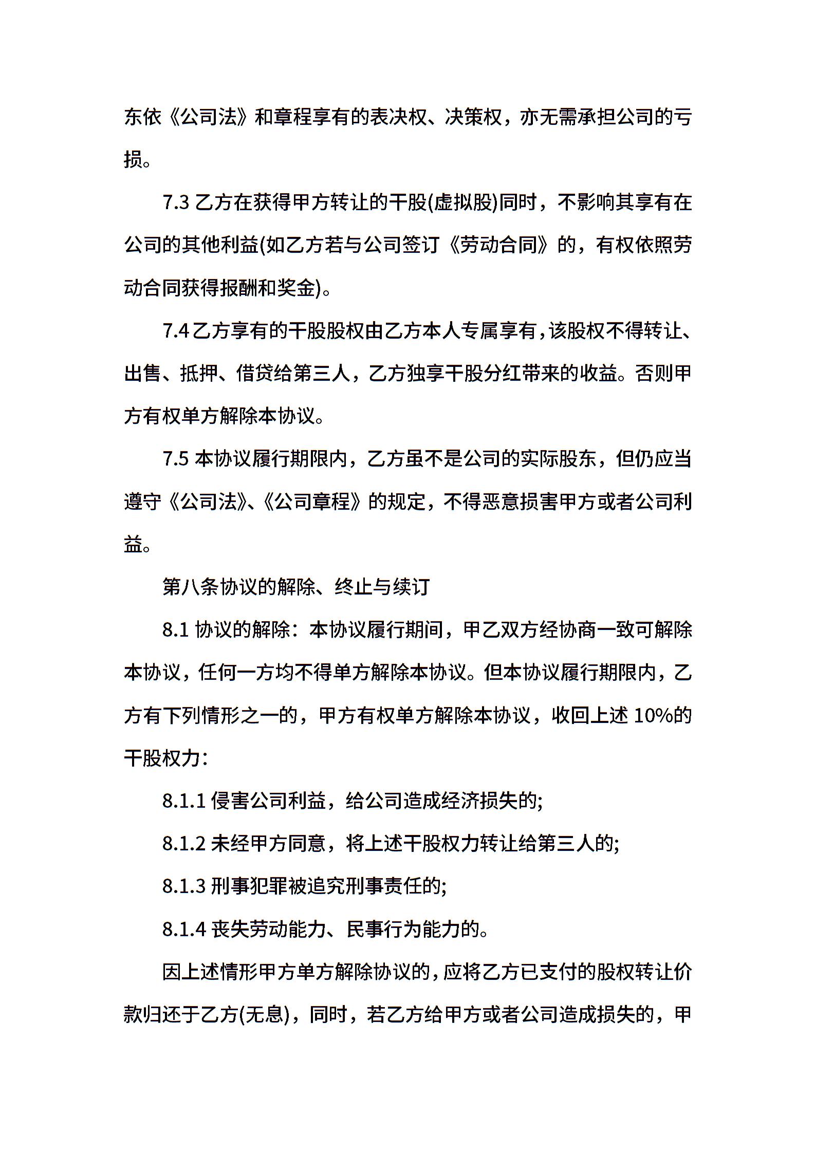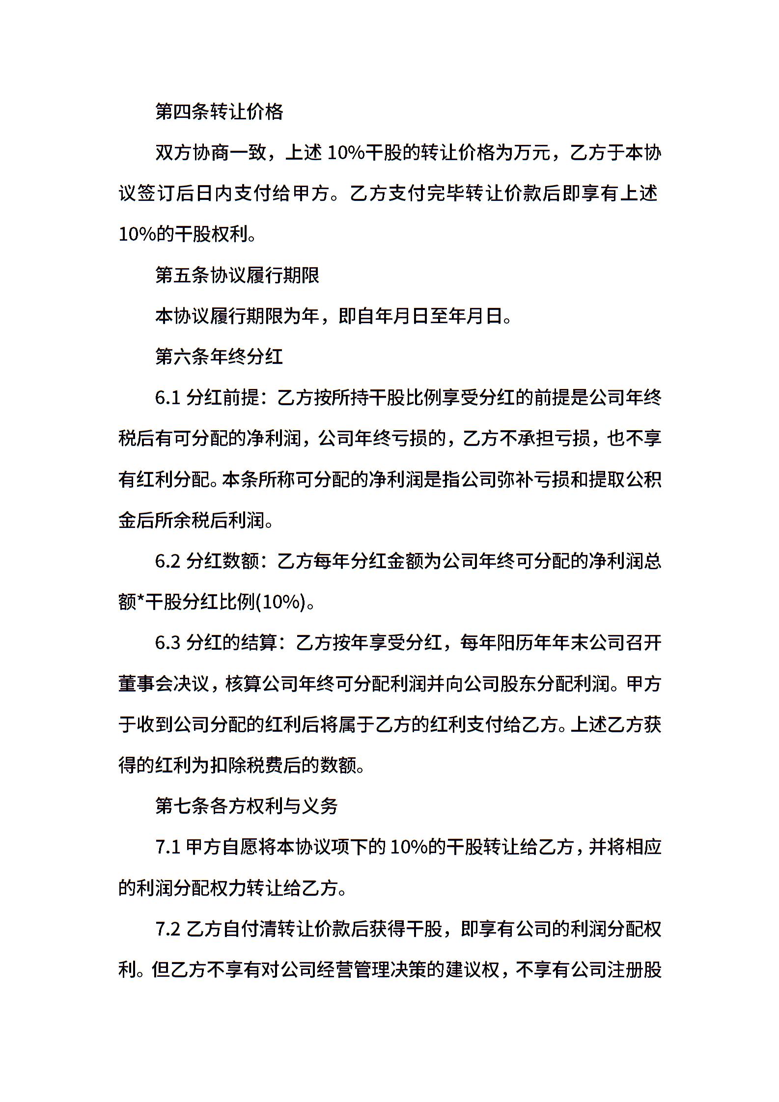 干股转让协议书范本