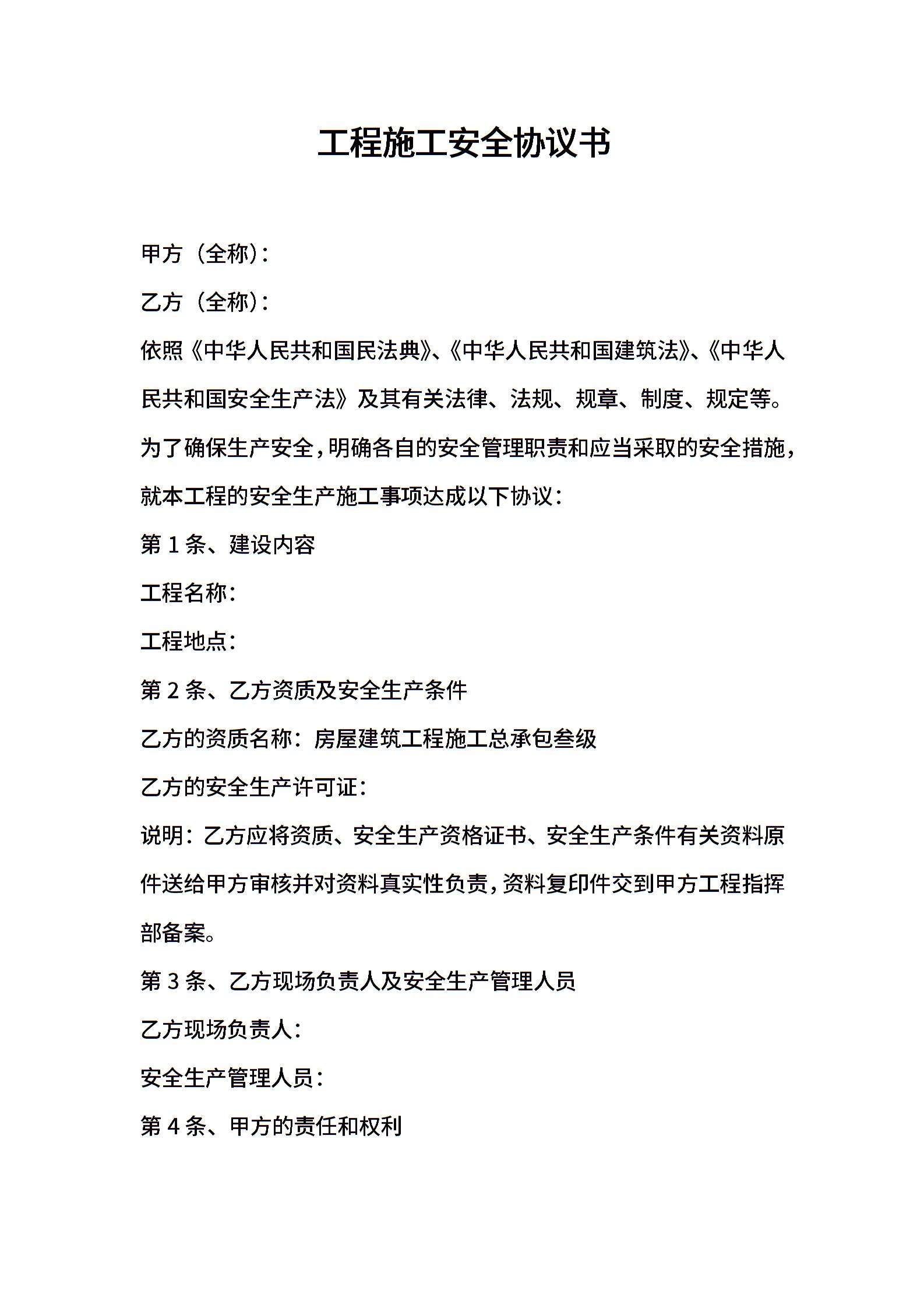 工程施工安全协议书