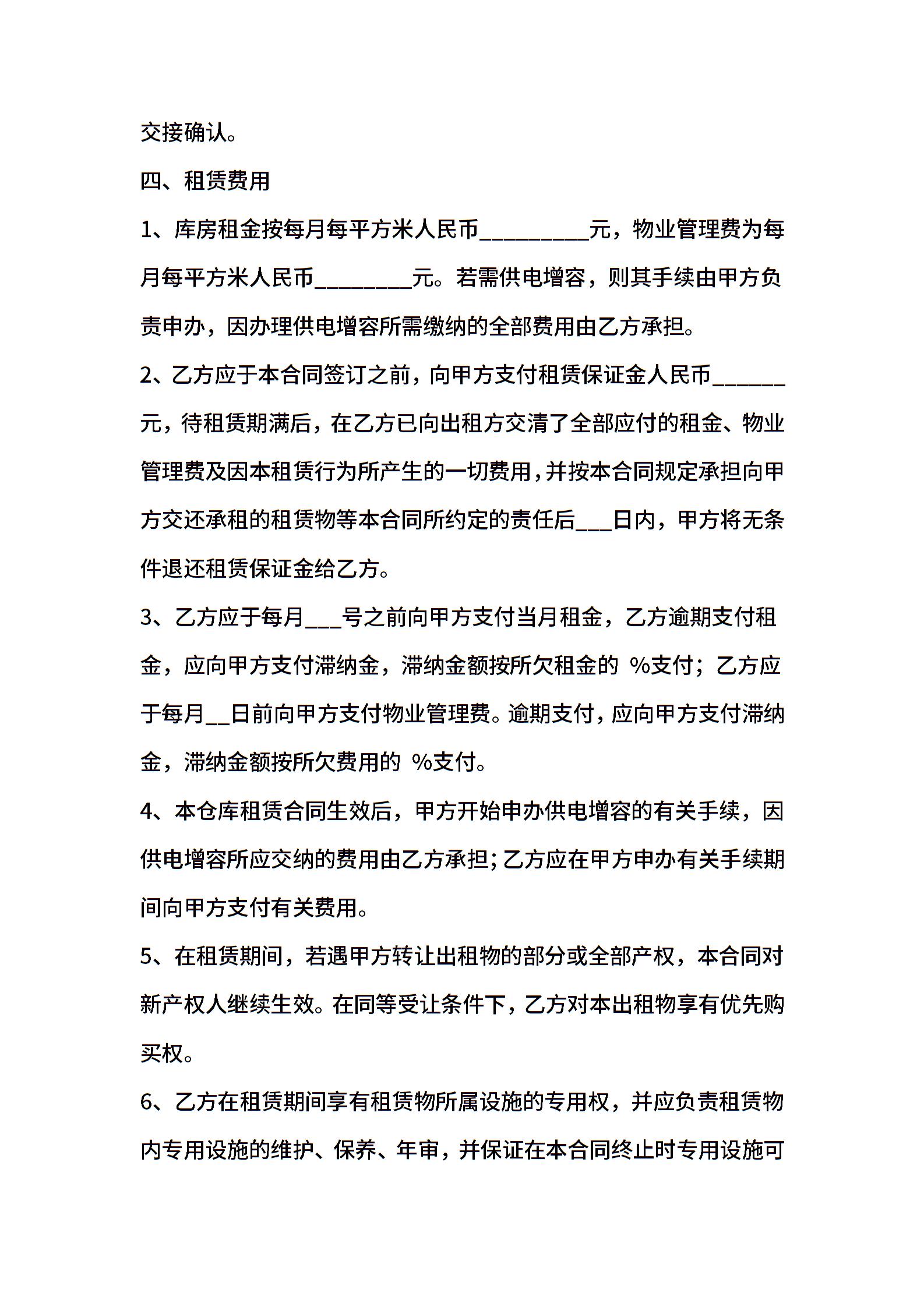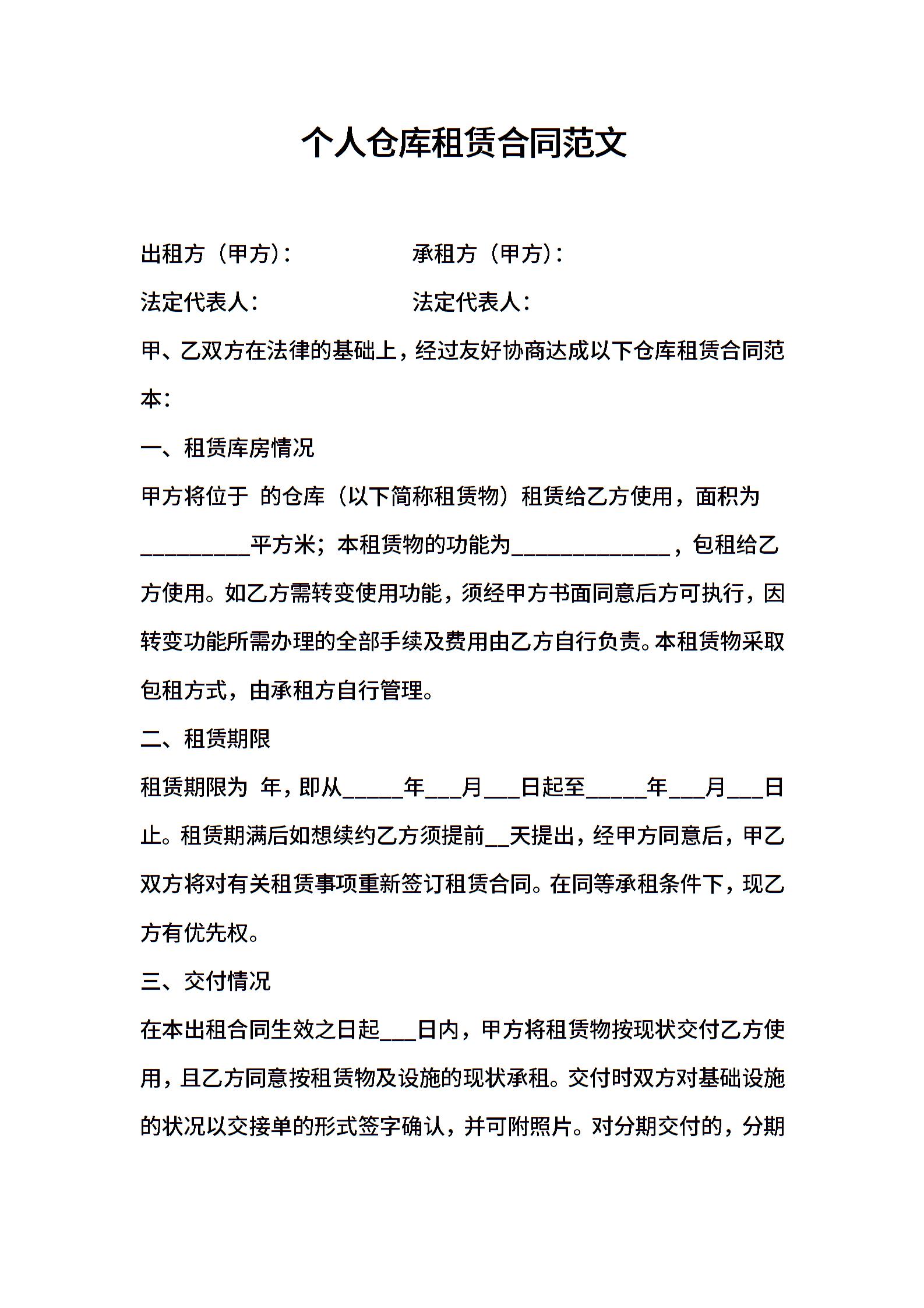 个人仓库租赁合同范文