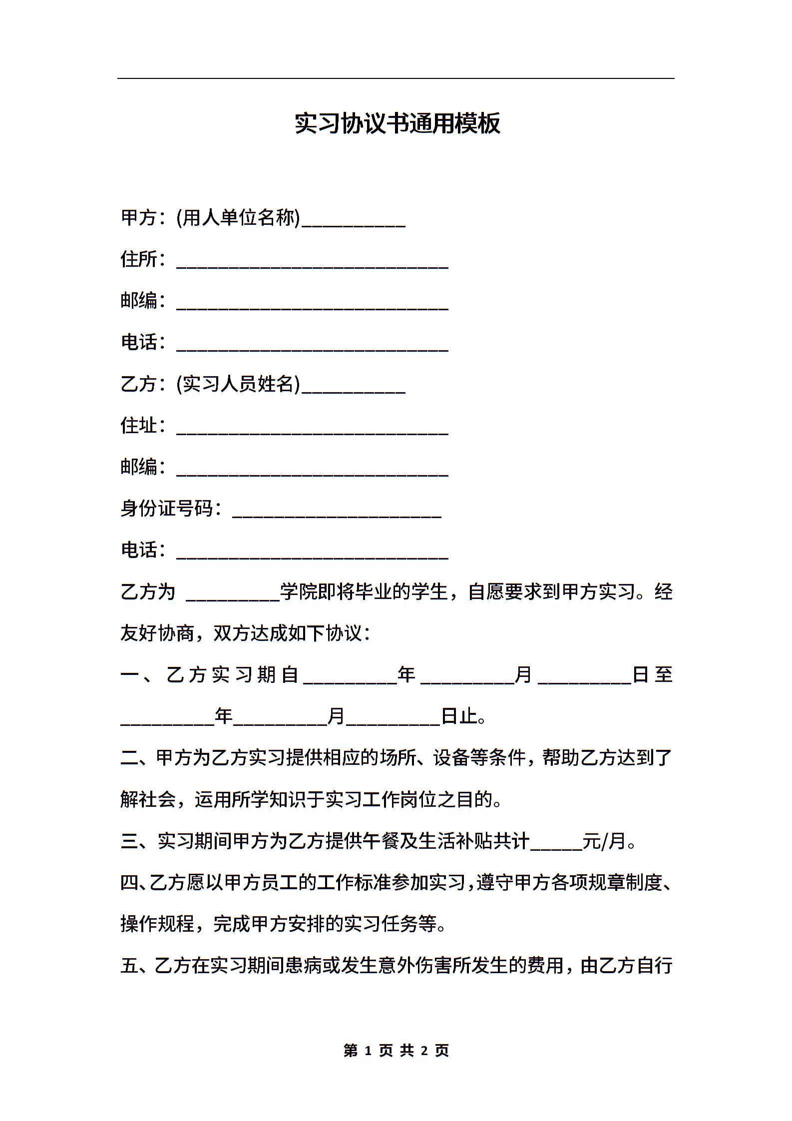 当前位置:量子办公 > 合同模板 > 实习协议 >