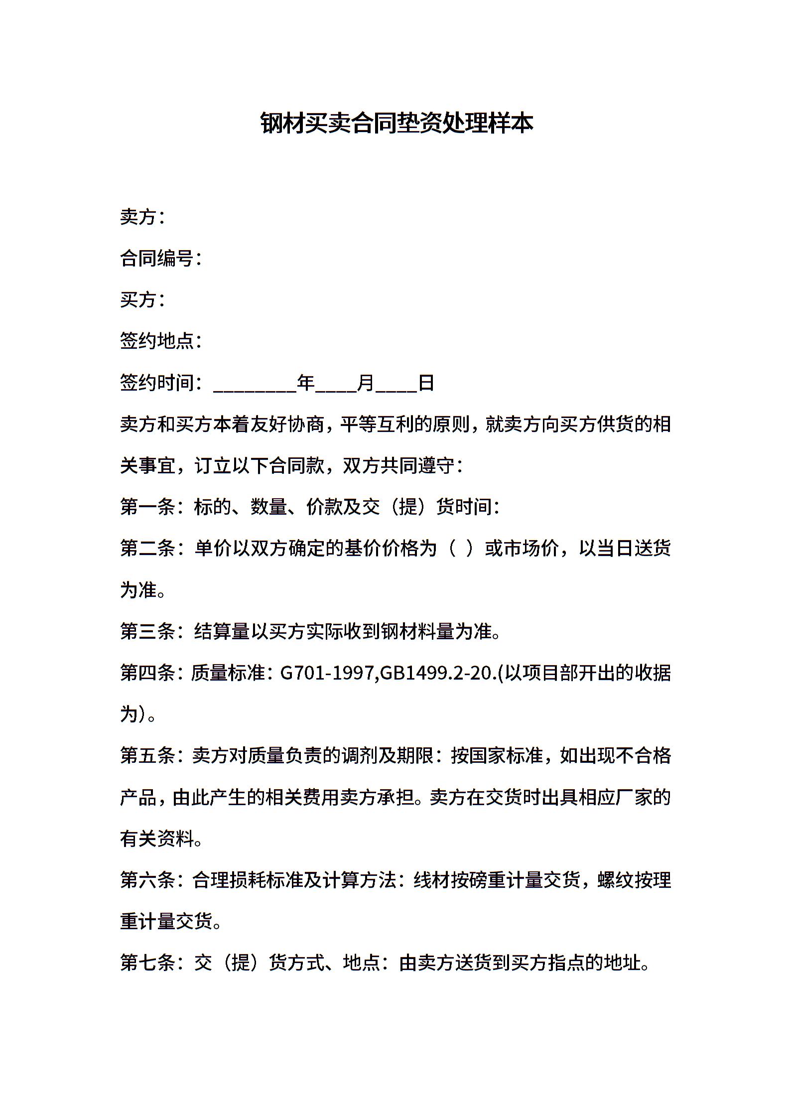 钢材买卖合同垫资处理样本