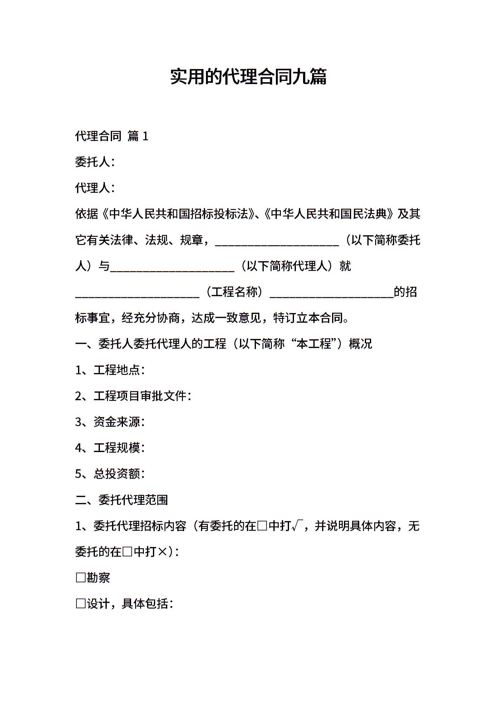 实用的代理合同九篇