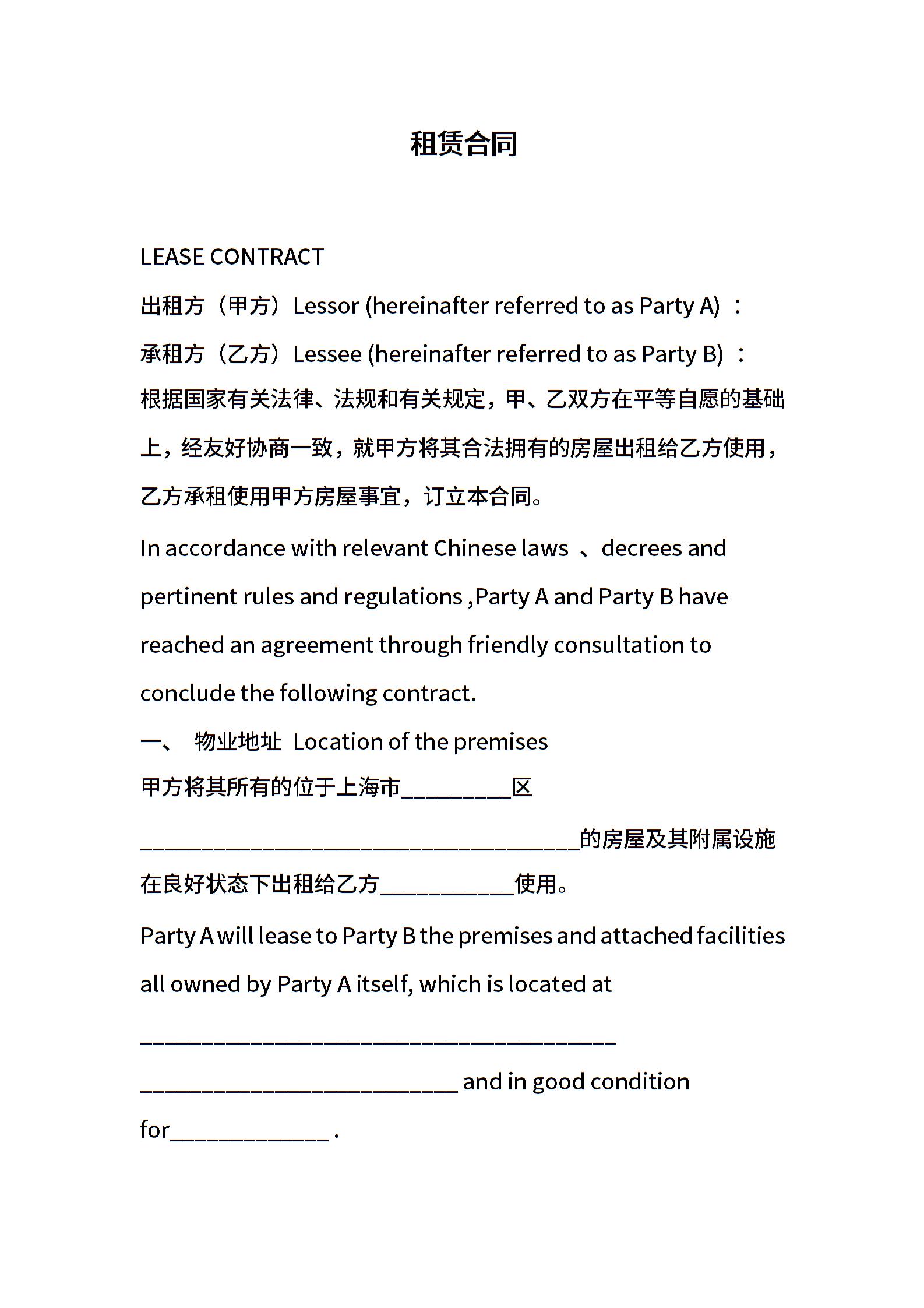 租赁合同中英文