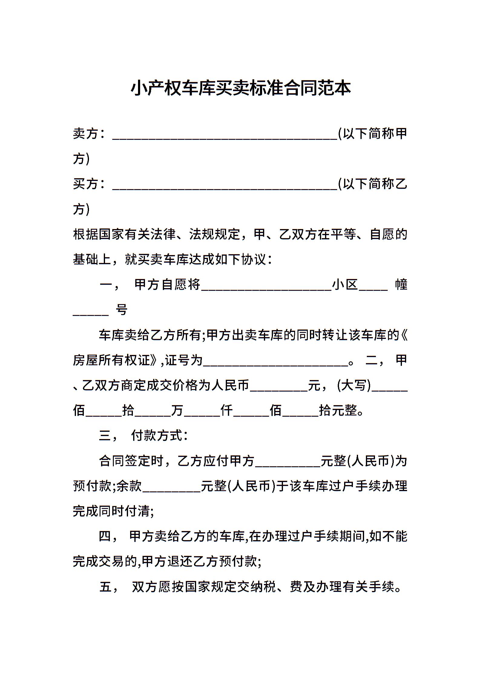 小产权车库买卖标准合同范本