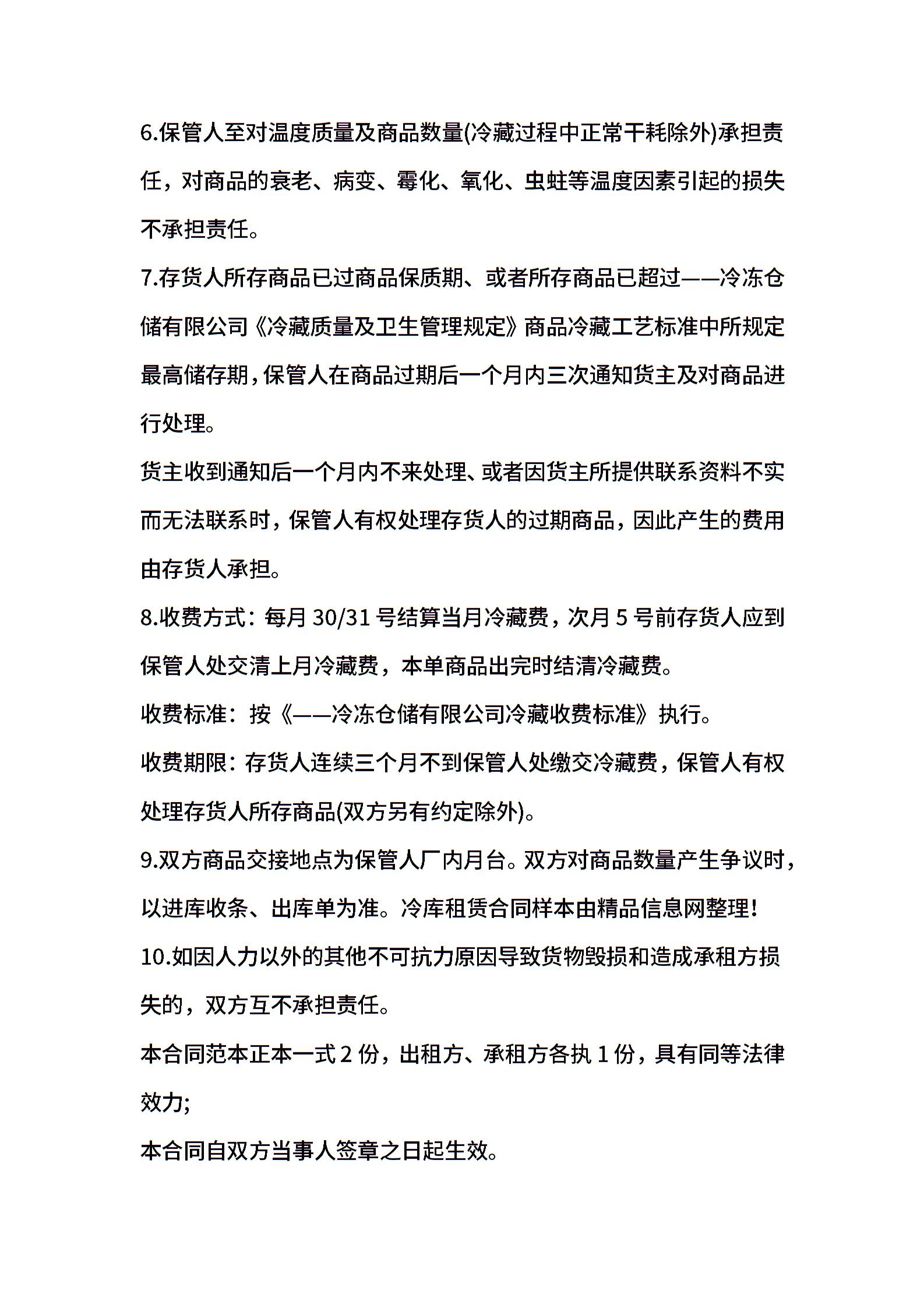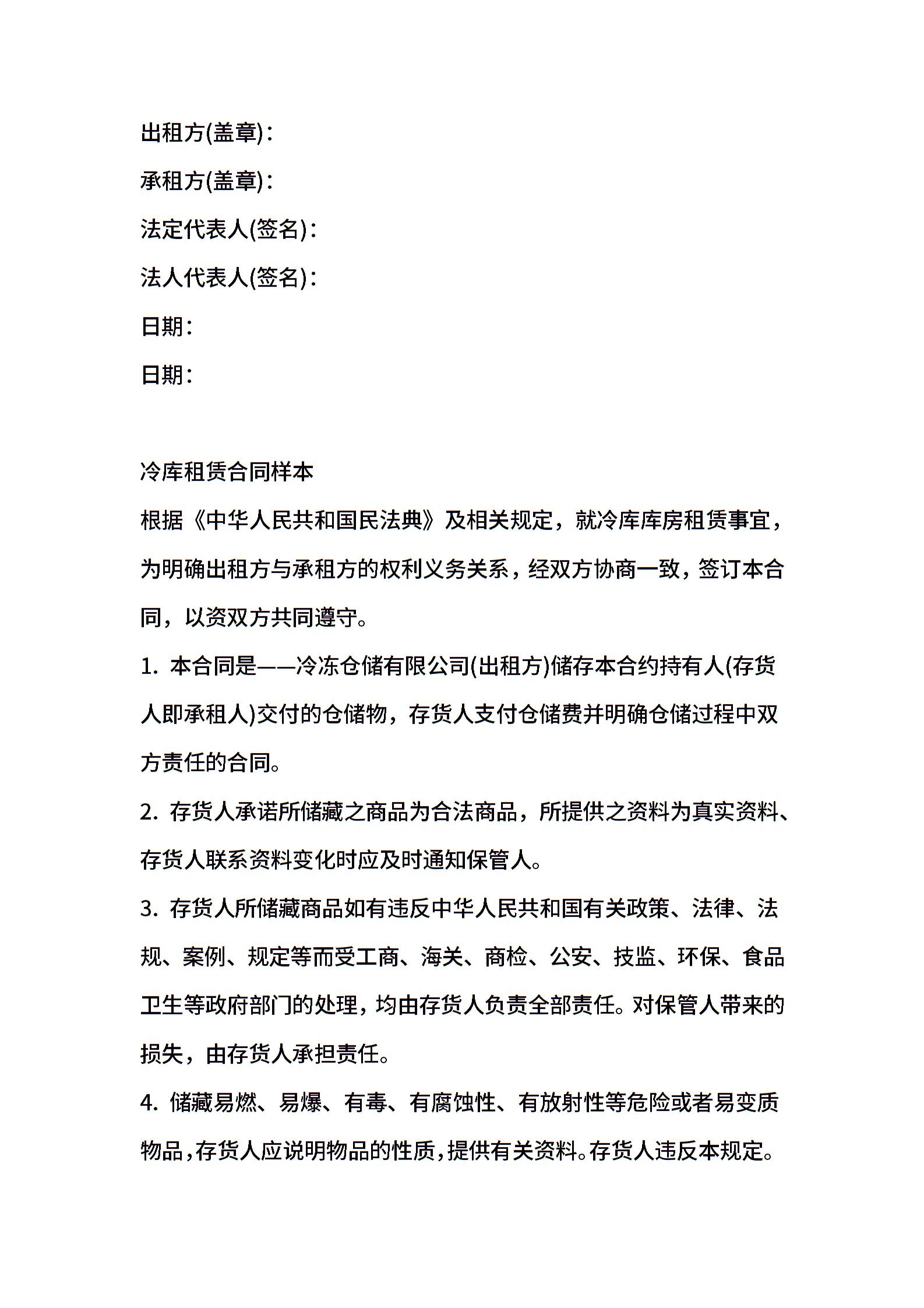 冷库租赁合同样本合同范本