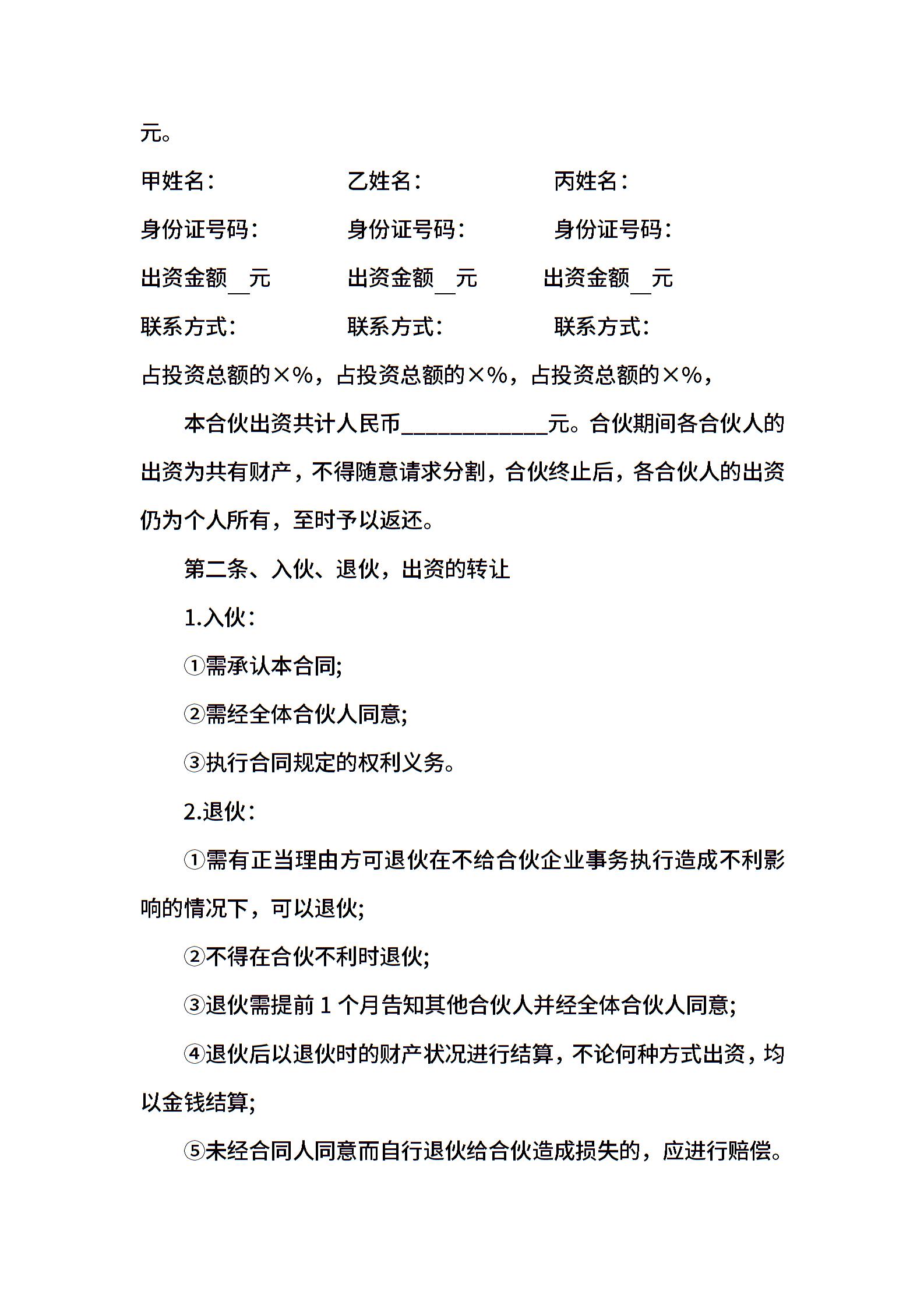 多人合作投资协议合同范本
