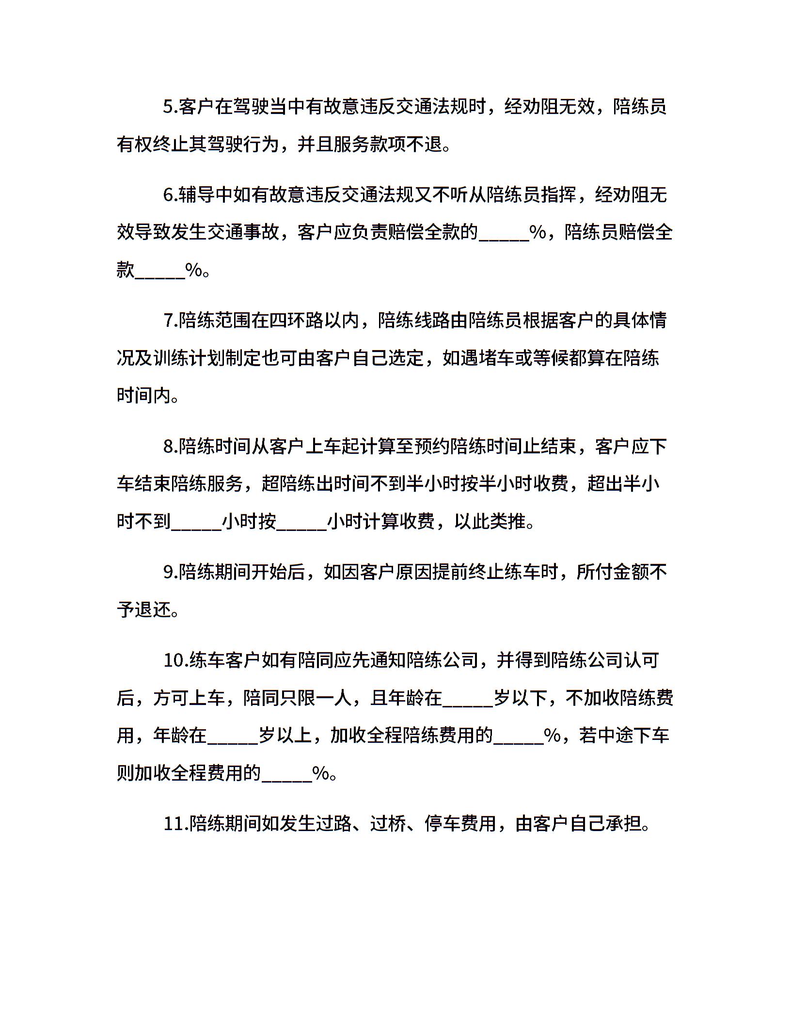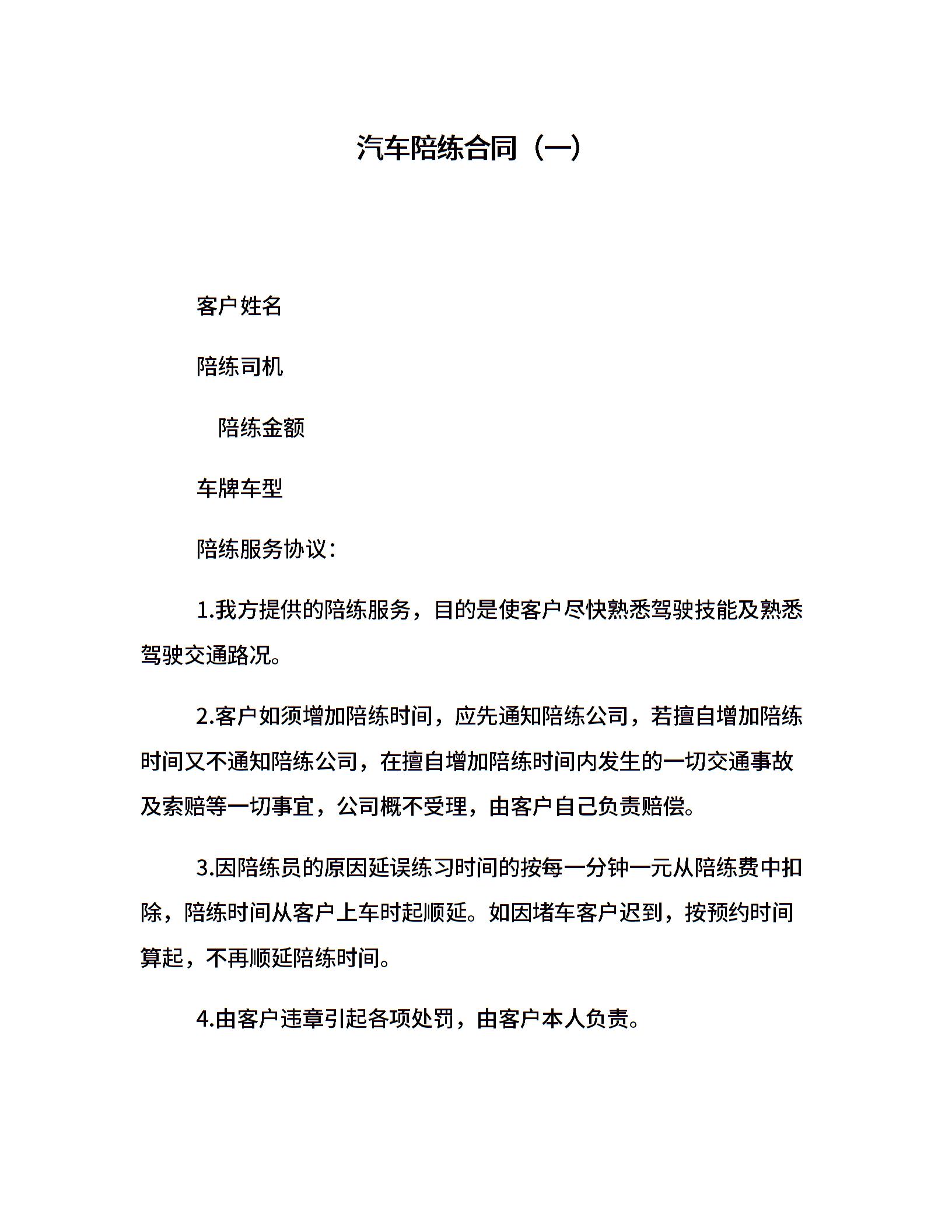汽车陪练合同(一)