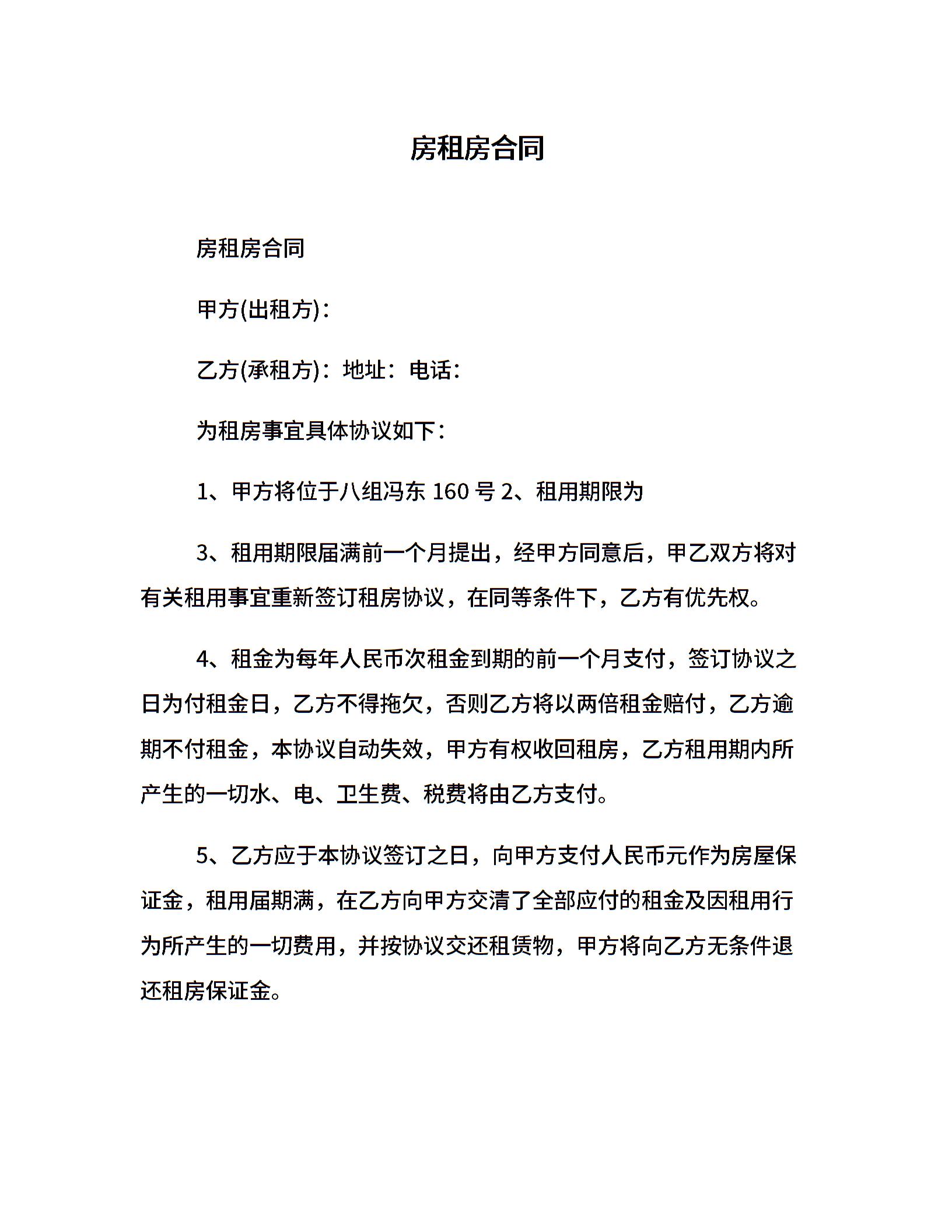 房租房合同