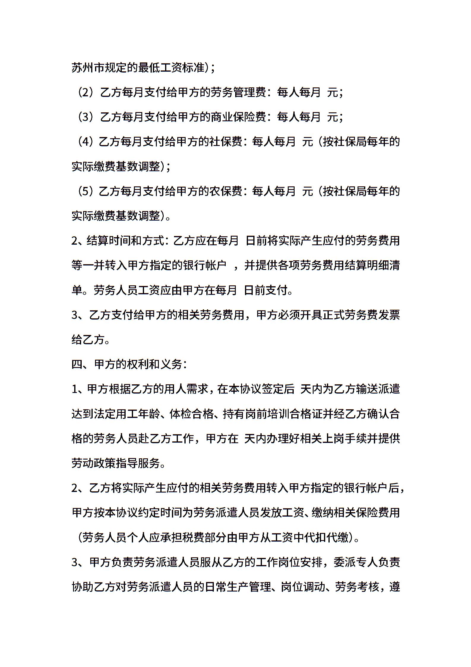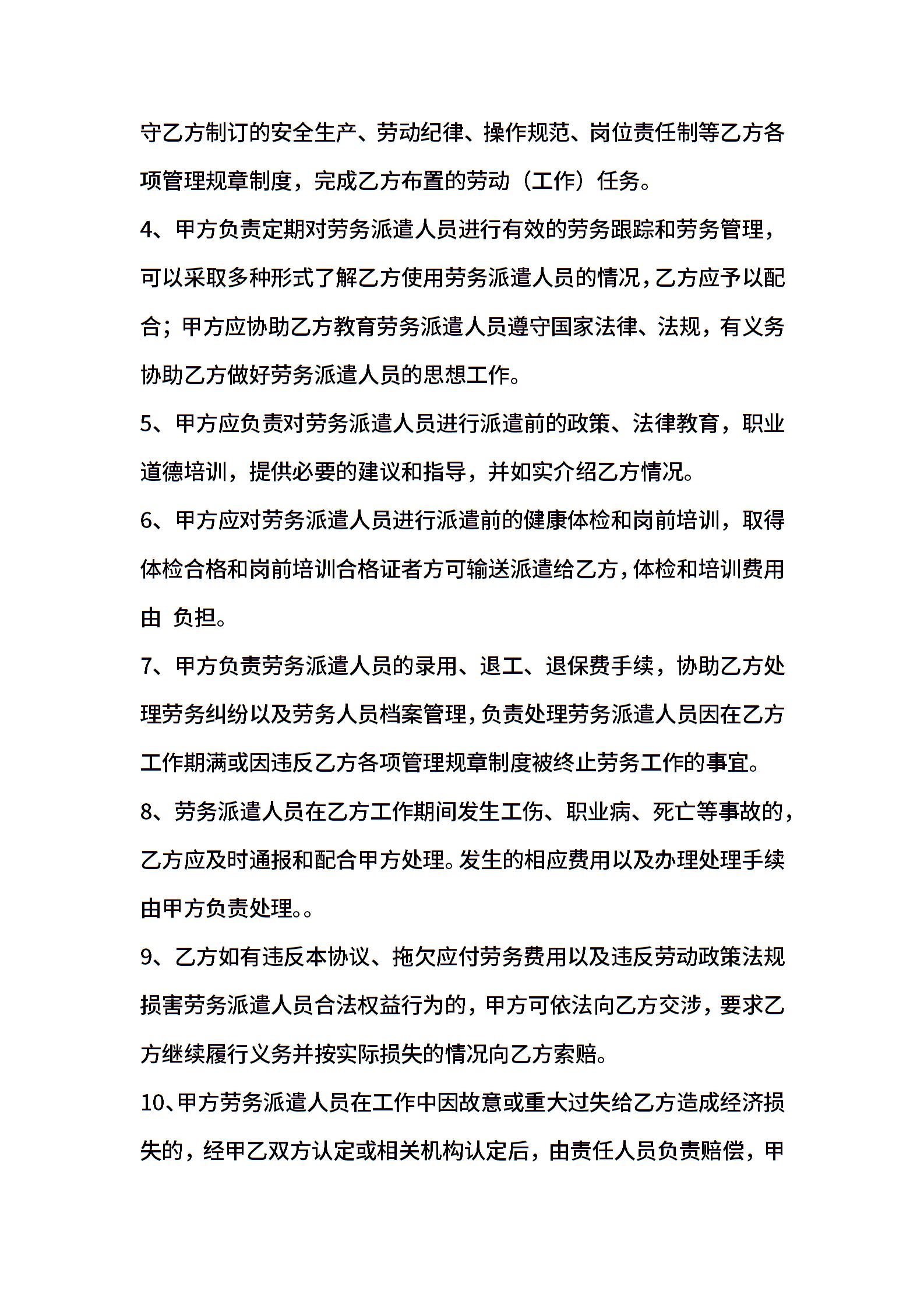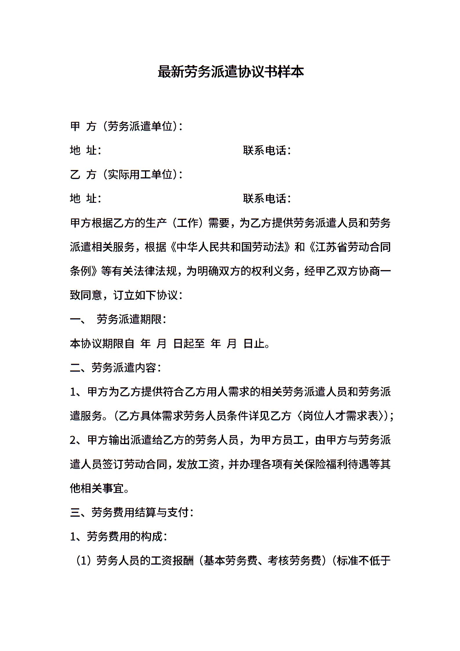 最新劳务派遣协议书样本