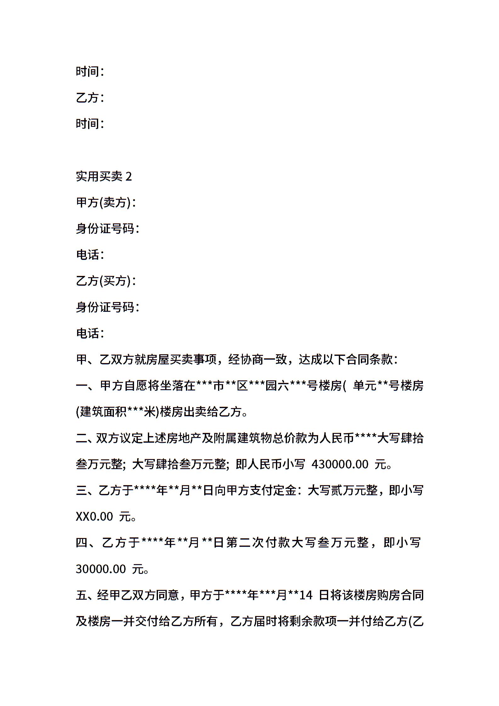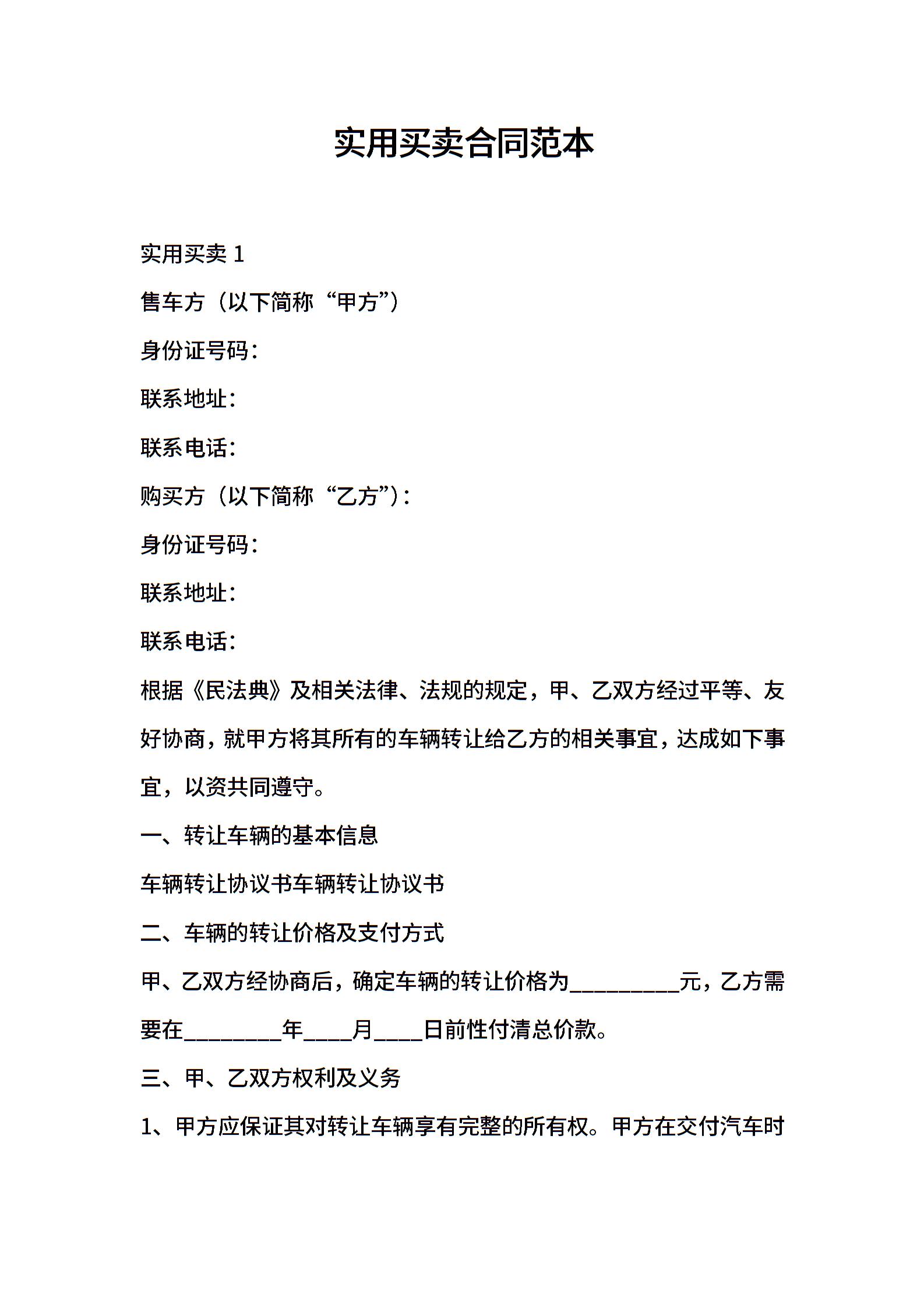 实用买卖合同范本