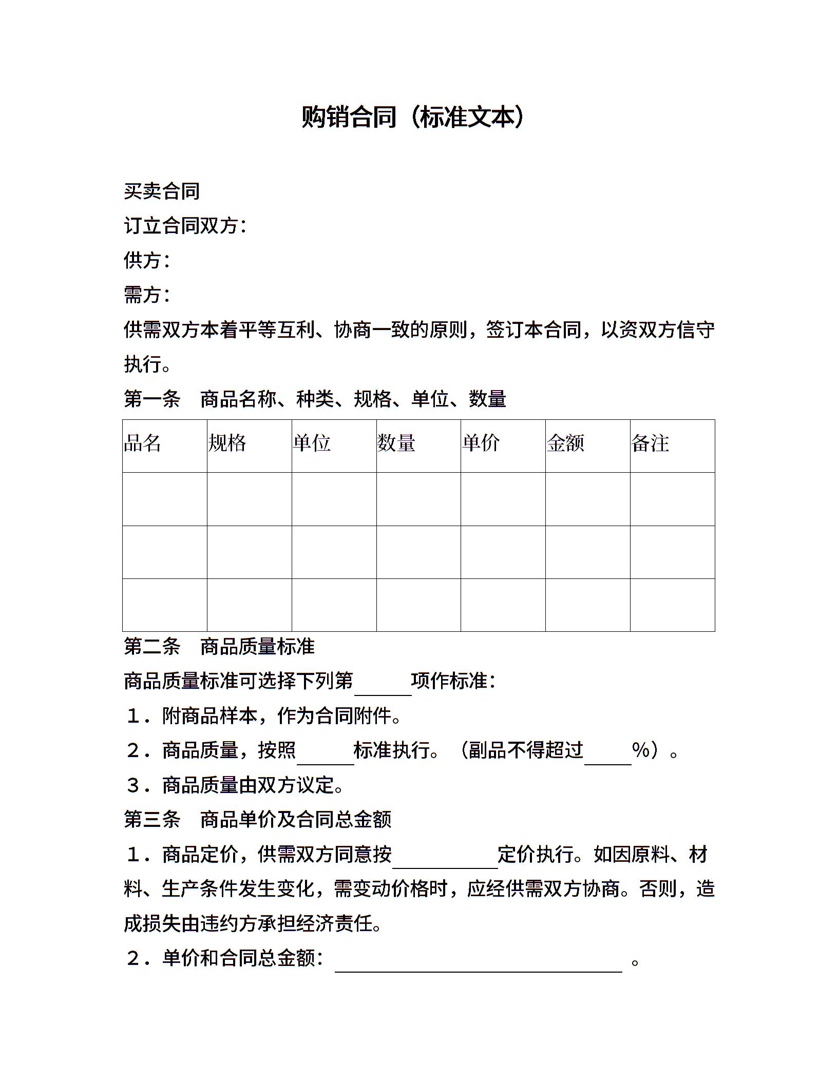 购销合同(标准文本) (2)