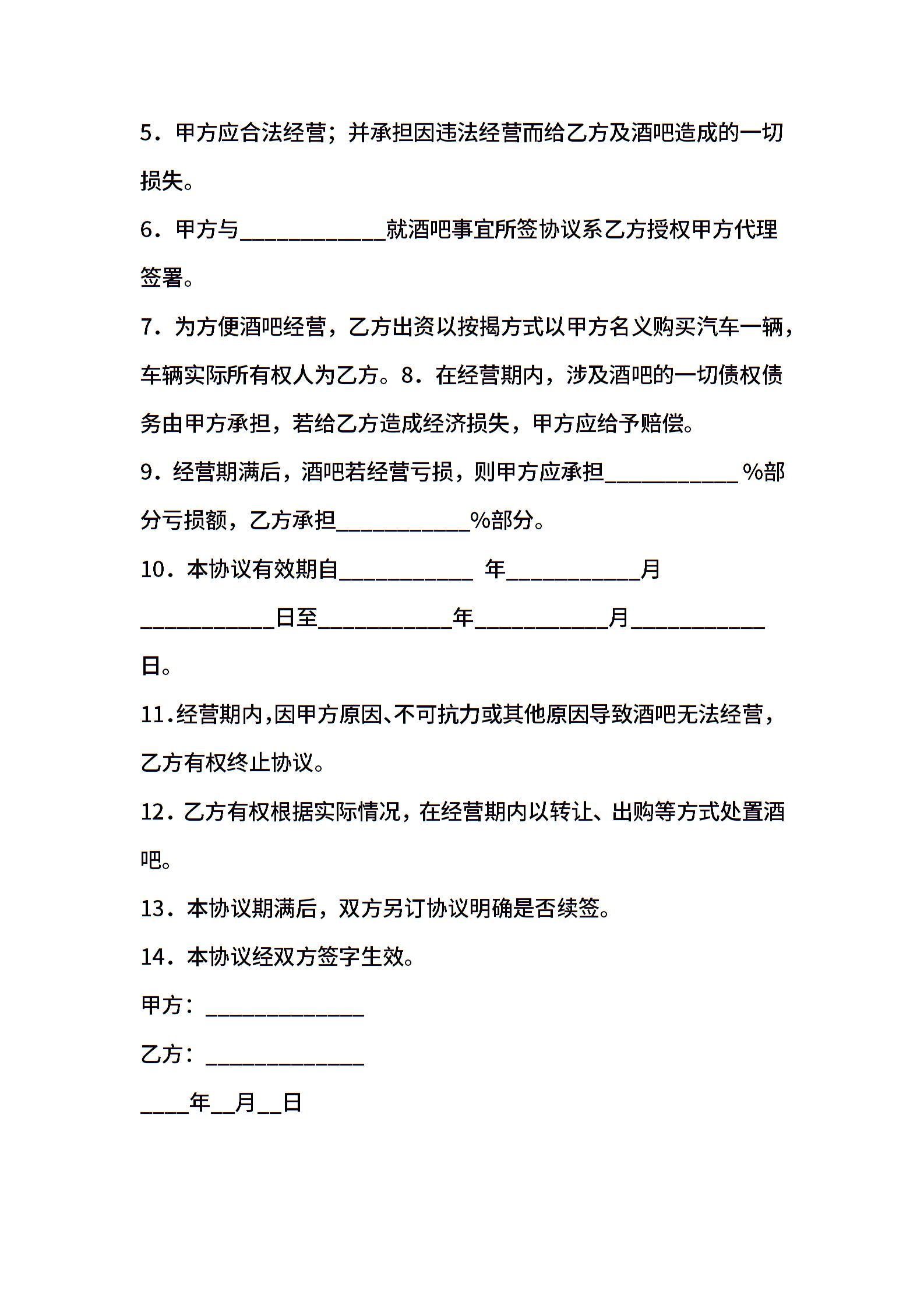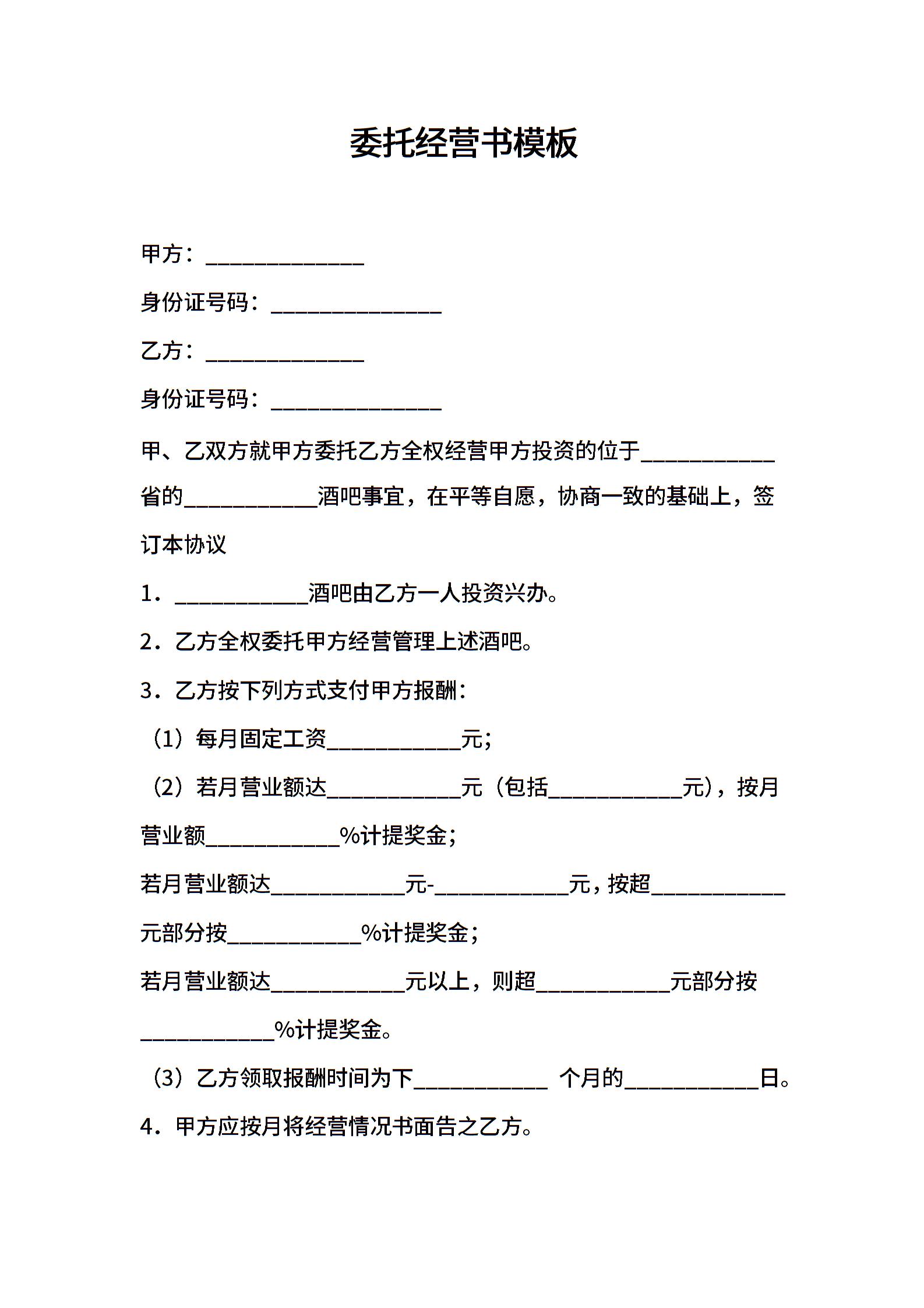 委托经营书模板